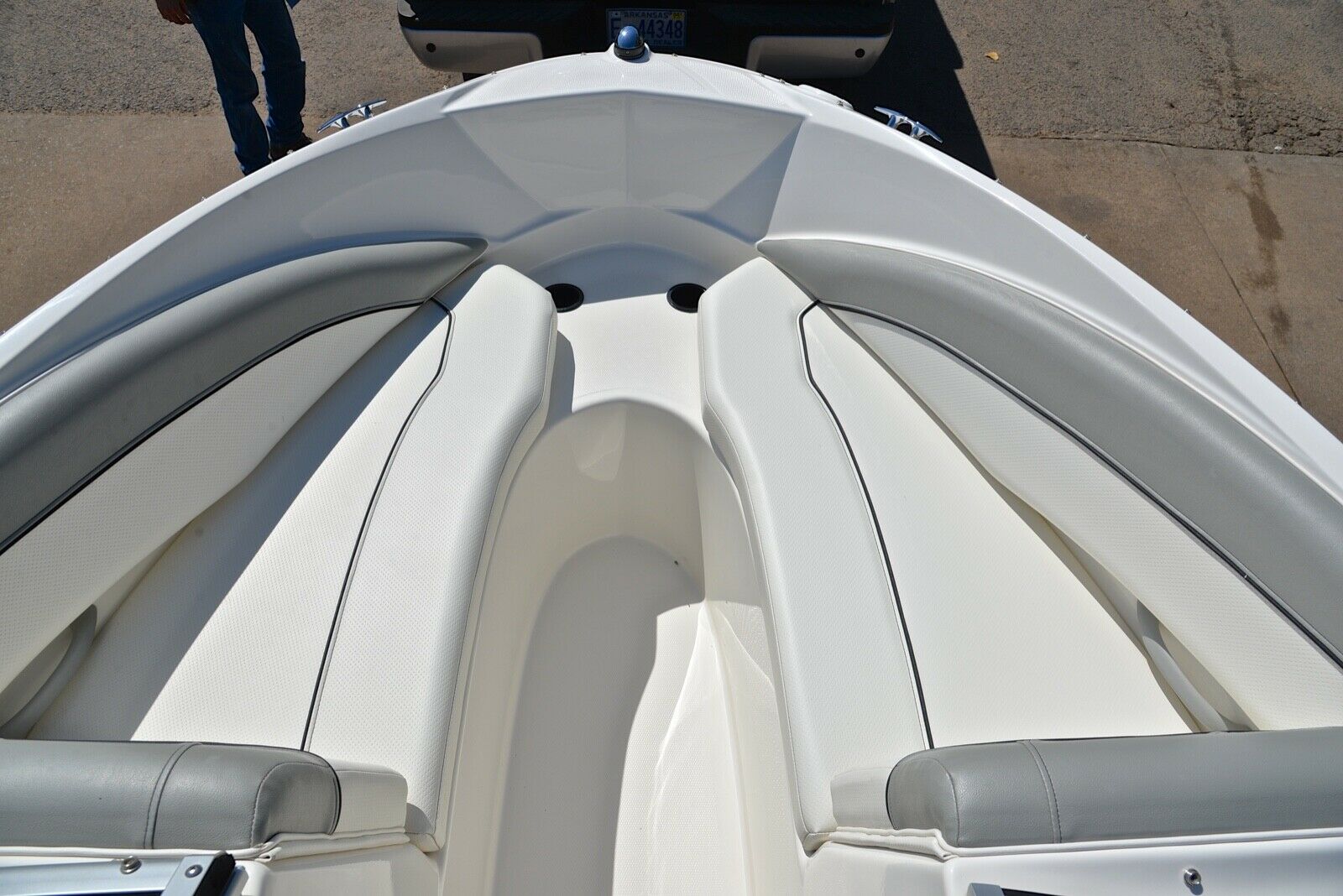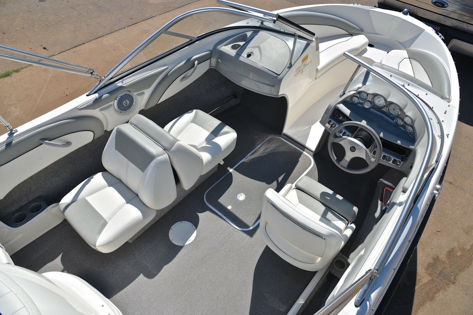 This boat is in excellent condition with minimal signs of use. The boat has been kept in dry storage. Overall appears to be in excellent condition without any signs of fading or oxidation. The gel coat maintains a very high gloss. There are a few very minor signs of docking. The rub rail is clean. This boat was upgraded to a black-colored hull with a graphics package. The keel is clean with minor signs of beaching. There is an extended swim platform with a boarding ladder. The upholstery shows to be in excellent condition without any rips, stains, or any seams coming apart. The colors are vibrant and the vinyl soft. The carpet is in very good condition without any stains or tears. The dash features upgraded stainless gauges and switches all in excellent condition and fully functional. The gray panel has some mild crackling in the center (very common in this year's model). Dash has a marine stereo with cockpit speakers. There is a premium Bimini top and custom bow and cockpit covers. Everything works accordingly. The engine, lower unit, and 3-Blade Prop are in excellent condition. The custom single axle trailer is in Excellent condition with minimal signs of use. The trailer has a folding tongue for those of you looking to store indoors. There are oversized wheels with Radial tires in good condition. The carpet and bunks are in excellent condition. Bearings were inspected. Lights work. Brakes work. Boat and trailer tow great on the road.