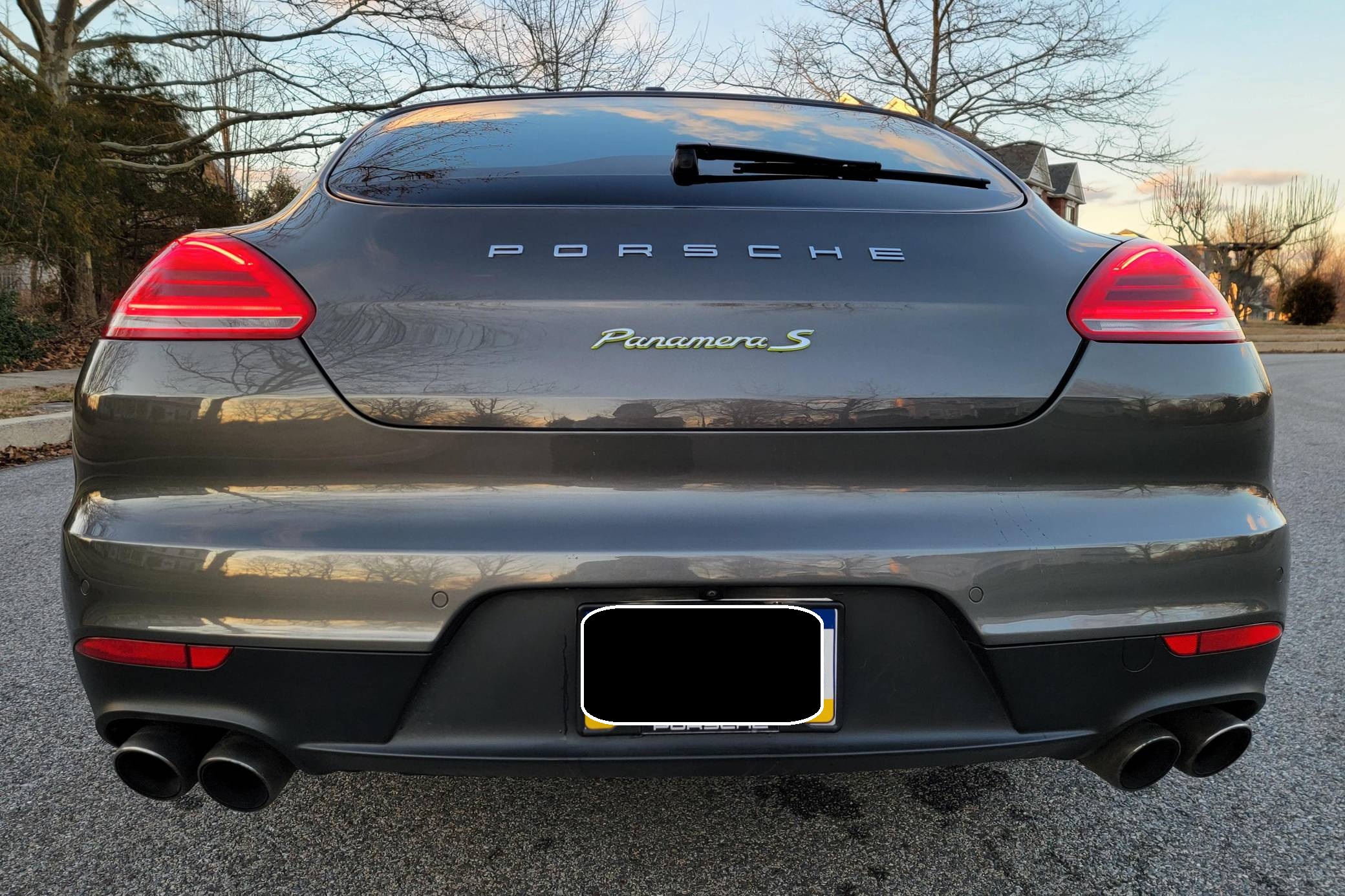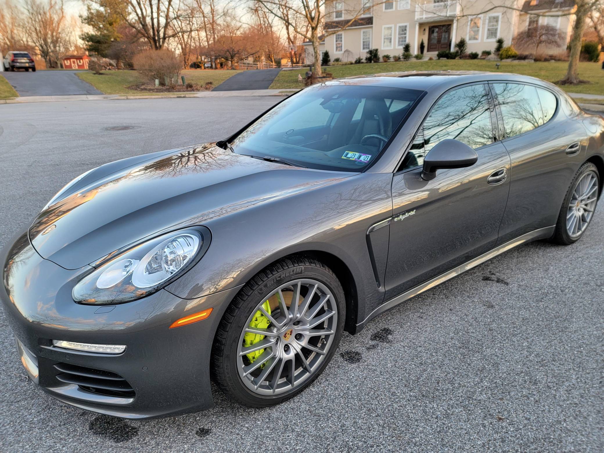 THIS. . . is a 2014 Porsche Panamera S E-Hybrid, finished in Agate Gray Metallic with a black interior. Factory equipment includes the Premium Package, 20-inch "Panamera Sport" wheels, high-gloss black exterior trim, soft-close doors, a sunroof, anthracite birch interior trim, ventilated and power-adjustable front seats, individual rear seats, a heated steering wheel, and a Bose sound system, according to a build sheet shown in the gallery. The only modification reported by the seller is wiring for a dashcam. After several false starts, Porsche entered the sedan segment for the first time when it launched the original Panamera for 2010. While its design and its very existence were controversial, the Panamera ultimately drew praise as the sportiest model in its segment and it achieved this distinction without sacrificing comfort or luxury. Production ended in 2016. Power comes from a gasoline-electric plug-in hybrid powertrain, which consists of a supercharged 3. 0-liter V6, an electric motor, and a 9. 4-kilowatt-hour lithium-ion battery pack. The system's total output checks in at 416 horsepower and 435 lb-ft of torque, and it spins the rear wheels via an 8-speed automatic transmission.