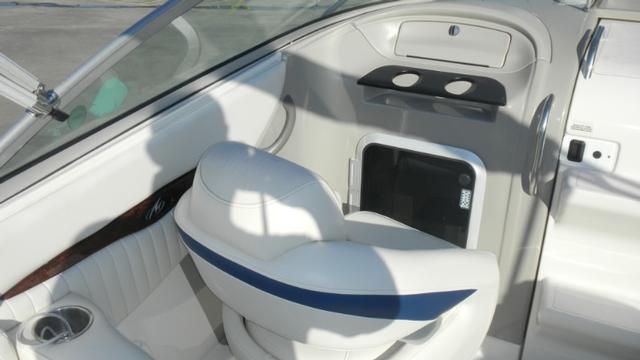 Head, Forward Cabin, Bimini Top, Stainless Steel Swim Ladder, Lots of Storage, In-Deck Storage Compartments, Swim Platforms, Courtesy Lights, Cockpit Lights, Windshield, Heavy Duty Rubrail, Inboard/Outboard Engine, Fuel Filters on Engines, Bilge Pump(s), Anchor Locker, Trailer, 12V Power Outlet, Battery Switch(es), Full Instrumentation, AM/FM/CD, Plotter/GPS, Depth Sounder.