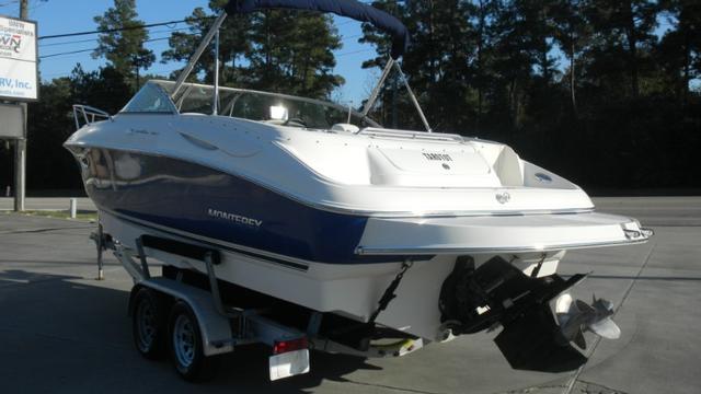 2007 MONTEREY 248 LS CUDDY CABIN - BIMINI TOP WITH FULL ENCLOSURE - KENWOOD STEREO - RAW WATER WASHDOWN PUMP AT TRANSOM - WRAP AROUND SEATING - V BERTH CABIN - PORTA POTTI - LOWRANCE ELITE 7 GPS/FISHFINDER WITH STRUCTURE SCAN JUST BEEN INSTALLED THIS YEAR - TANDEM AXLE ALUMINUM TRAILER WITH NEW TIRES. BEEN RECENTLY SERVICED!