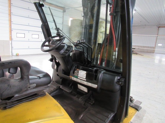 Take a look and see this nice 2010 Yale GP080VX, with V6 gas engine, automatic 2-speed, 8,000 LBS capacity, triple stage mast, 200" lift height, pneumatic tires with approximately 80% tread remaining, cab, side shift, excellent condition, current service, ready to work right now! Yale Veracitor GP-VX Series.
