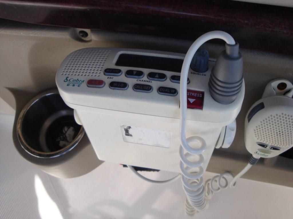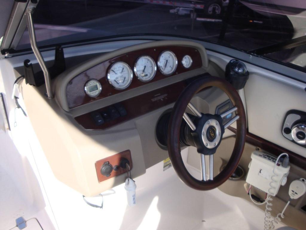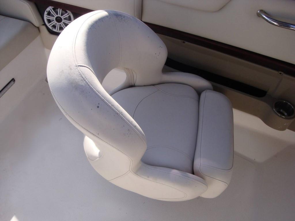 This used 2009 Regal 2100 features a Cobra Marine VHF, a Ritchie compass, a 12V plug, a Kenwood Commander audio unit, a tinted windscreen, and a helm chair. Other features include a Bimini top, bow anchor storage, bow seating, in-deck storage, marine cockpit speakers, a port-side companion seat with a glove box, stainless drink holders, LED courtesy lights, navigation lights, stainless cleats, bow scuff plate, and lifting eye, electric horn, a transom bench seat, and a swim platform with a ladder.