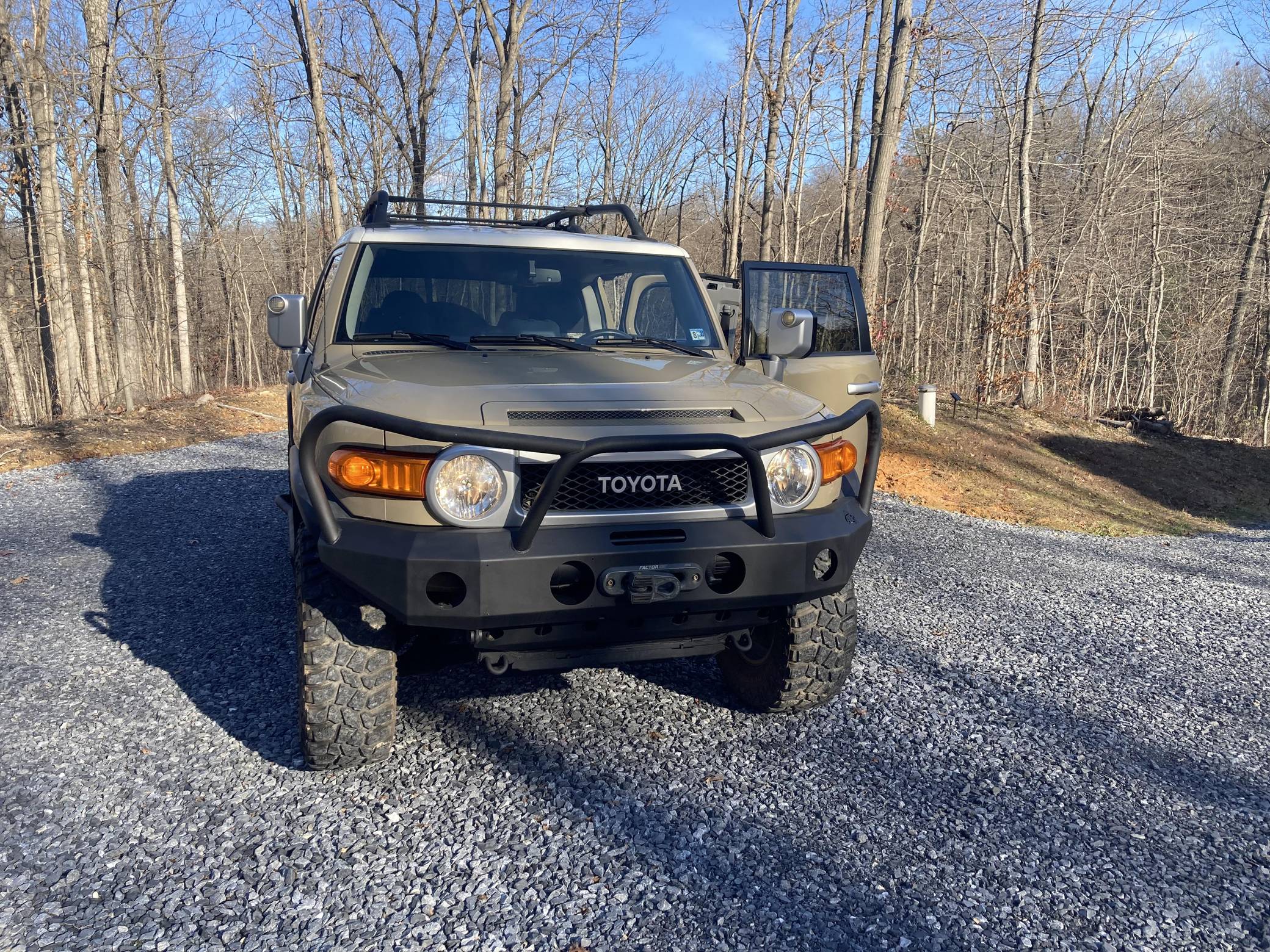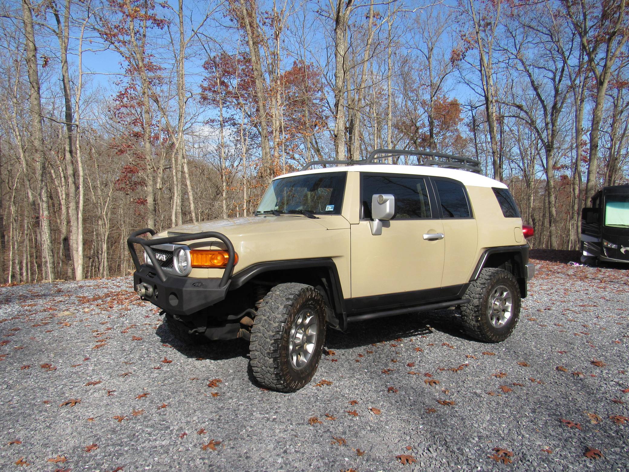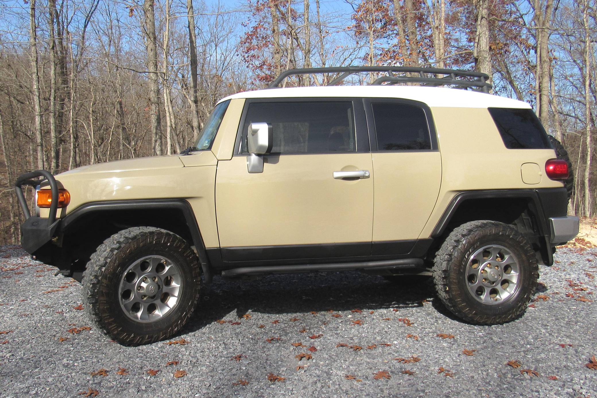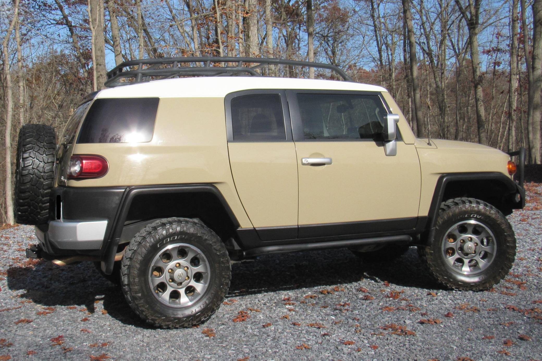THIS… is a 2013 Toyota FJ Cruiser, finished in Quicksand with a Dark Gray interior. The odometer on this SUV currently indicates approximately 60,600 miles. According to the Monroney Label pictured in the photo gallery, this FJ Cruiser had an original MSRP of $32,625 and came equipped with the Off-Road and Convenience packages, 17-inch wheels, engine, transfer case, and fuel tank skid plates, water-repellent cloth upholstery, air conditioning, and more as detailed below. Modifications reported by the seller include an APEX front bumper and brush guard, a front-mounted winch with Factor 55 hook guard, and All-Pro Off-Road rock sliders and front suspension components. Toyota gave the Jeep Wrangler its first direct rival in many years when it launched the FJ Cruiser for the 2007 model year. The heritage-laced exterior design hid proven suspension and mechanical components shared with the 4Runner, among other Toyota off-roaders, and the FJ stood out with quirks like rear half doors and three windshield wipers. It left the American market after the 2014 model year, though production carried on overseas, and it wasn't directly replaced. Power comes from a "1GR-FE" 4. 0-liter V6, rated at 260 horsepower and 271 lb-ft of torque. Output is sent to the rear or all four wheels via a 5-speed automatic transmission.