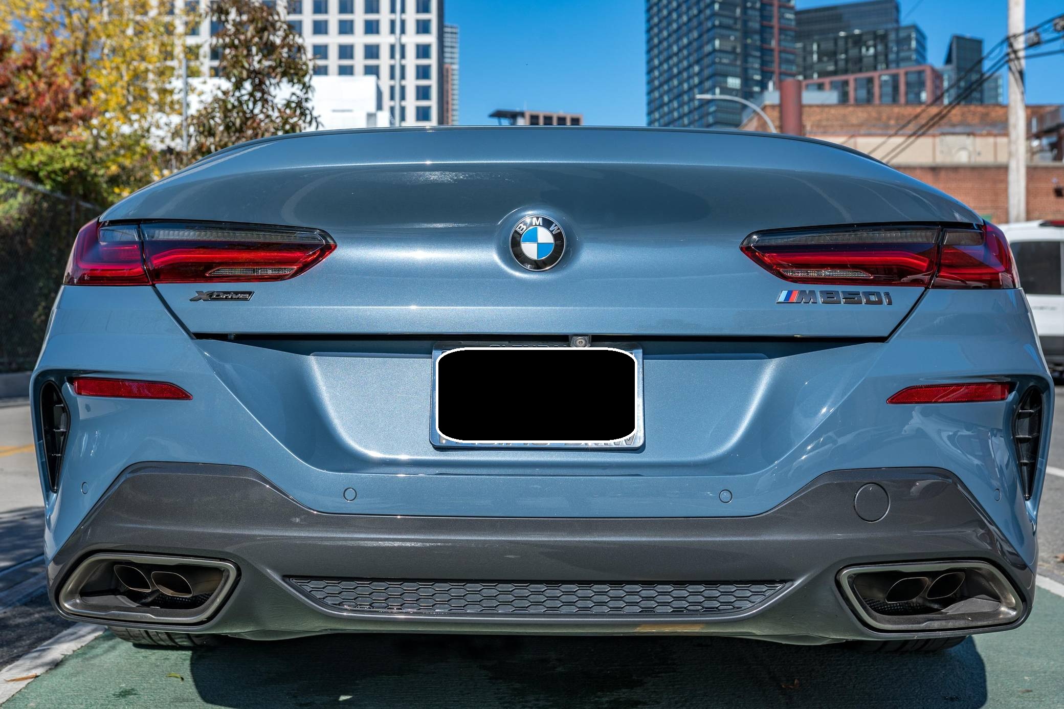 THIS. . . is a 2019 BMW M850i xDrive Coupe, finished in Barcelona Blue Metallic with a Tartufo and black interior. The odometer currently displays approximately 9,100 miles. Factory equipment includes the Drivers Assistance Pro and Comfort Seating packages, 20-inch Style 728M wheels, Icon adaptive LED headlights, an M carbon roof, Merino leather upholstery, heated and power-adjustable front seats, automatic climate control, glass controls, soft-close doors, a Bowers & Wilkins sound system, and a navigation system, among others listed below. The seller reports no modifications. BMW resurrected the 8 Series nameplate for 2019, nearly 20 years after the "E31" was discontinued. The new "G15" generation continues the 8 Series tradition with its long, sweeping body lines on the outside and the latest and greatest luxury features BMW has to offer on the inside. Propelling the 8 Series to the modern age is a combination of powerful turbocharged engines and an available xDrive all-wheel drive system. Power comes from an "N63" 4. 4-liter twin-turbocharged V8 engine, rated at 523 horsepower and 553 lb-ft of torque. Output is sent to all four wheels via an 8-speed automatic transmission and BMW's xDrive all-wheel drive system.