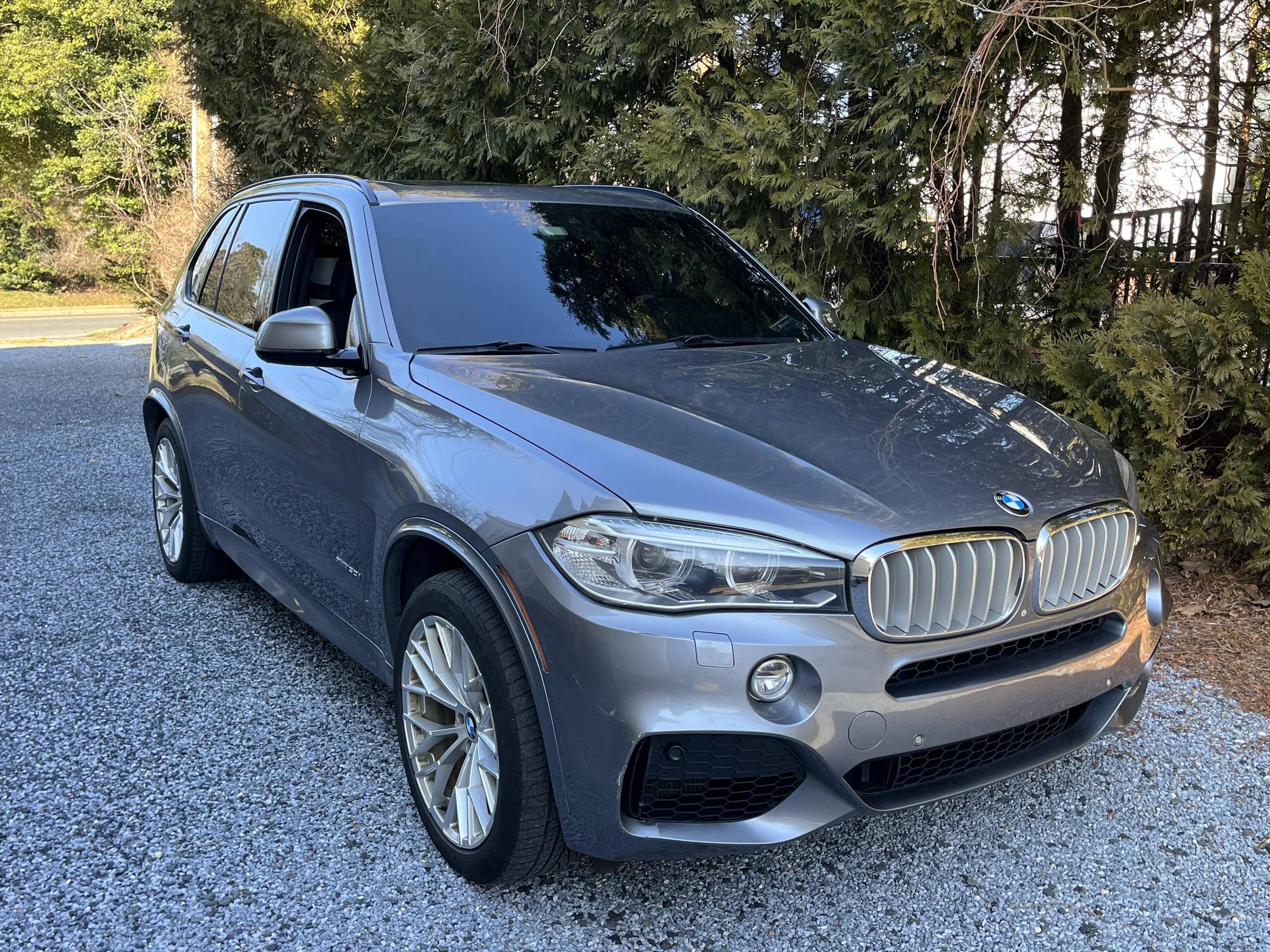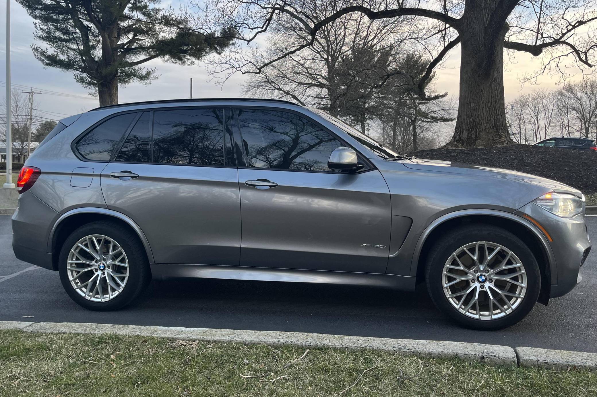 2014 BMW X5 xDrive50i, finished in Space Grey Metallic with a black interior. According to the build sheet provided in the gallery, factory equipment includes the M Sport, Executive, Cold Weather, and Driver Assistance Plus packages, adaptive xenon headlights, a panoramic sunroof, heated comfort front seats, rear-door window sunshades, a Harman/Kardon sound system, and more as listed below. Modifications reported by the seller are limited to 20-inch wheels and tinted windows. Called F15 internally, BMW's third-generation X5 rode on an updated version of its predecessor's underpinnings, but it was slightly larger inside and out. Of course, it retained the unique split tailgate that provides a small bench seat. Inside, the technological leap included a widescreen display with the automaker's latest infotainment software. The F15 X5 model was produced until 2018 when the fourth-generation G05 X5 replaced it. Power comes from an "N63" twin-turbocharged 4. 4-liter V8, rated at 445 horsepower and 480 lb-ft of torque. Output is sent to all 4 wheels via an 8-speed automatic transmission and BMW’s permanent xDrive all-wheel drive system.