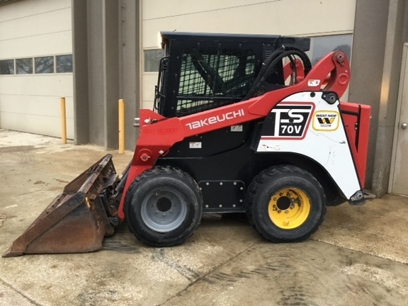 2013 Takeuchi, TS70V, skid_steer_loaders, Operators Station: Cab Enclosure, A/C, EH Controls, Powertrain: 2 Speed, Attachments: Aux Hydraulics, Buckets: General Purpose Bkt, 76" Bucket, Mechanical Suspension Seat, Radio, SPM.