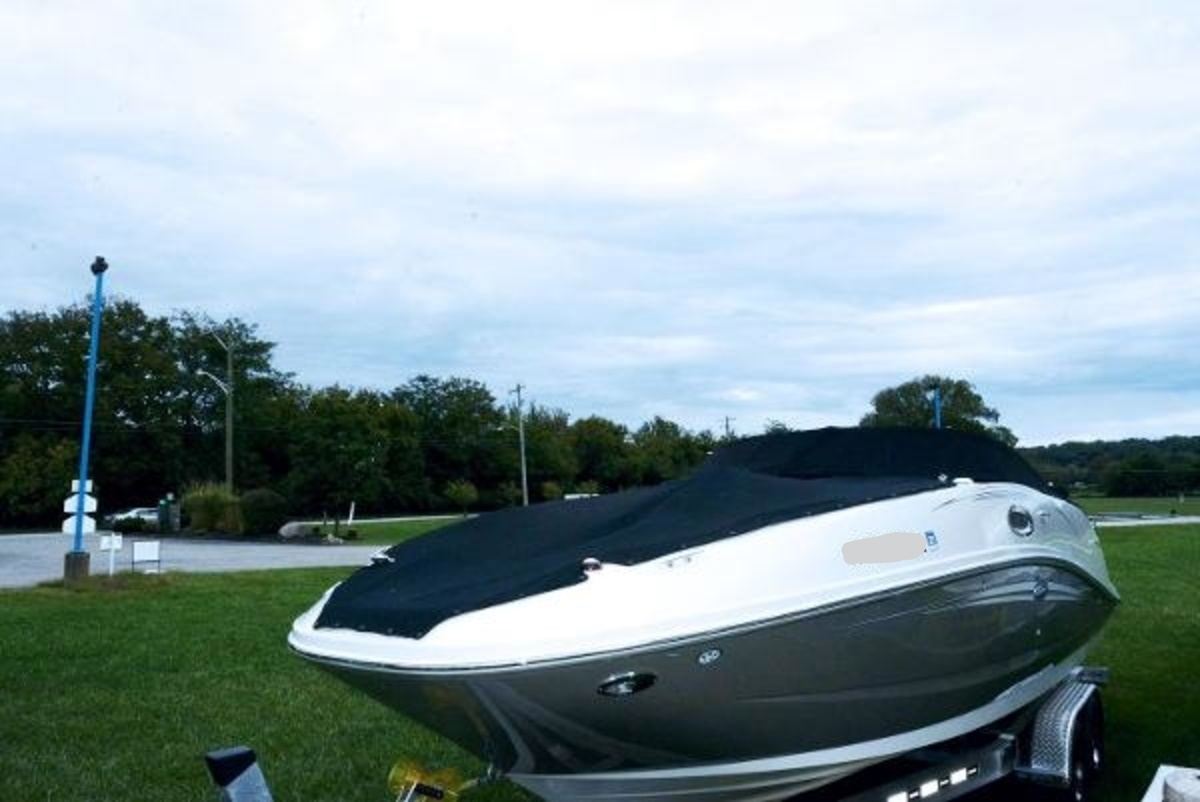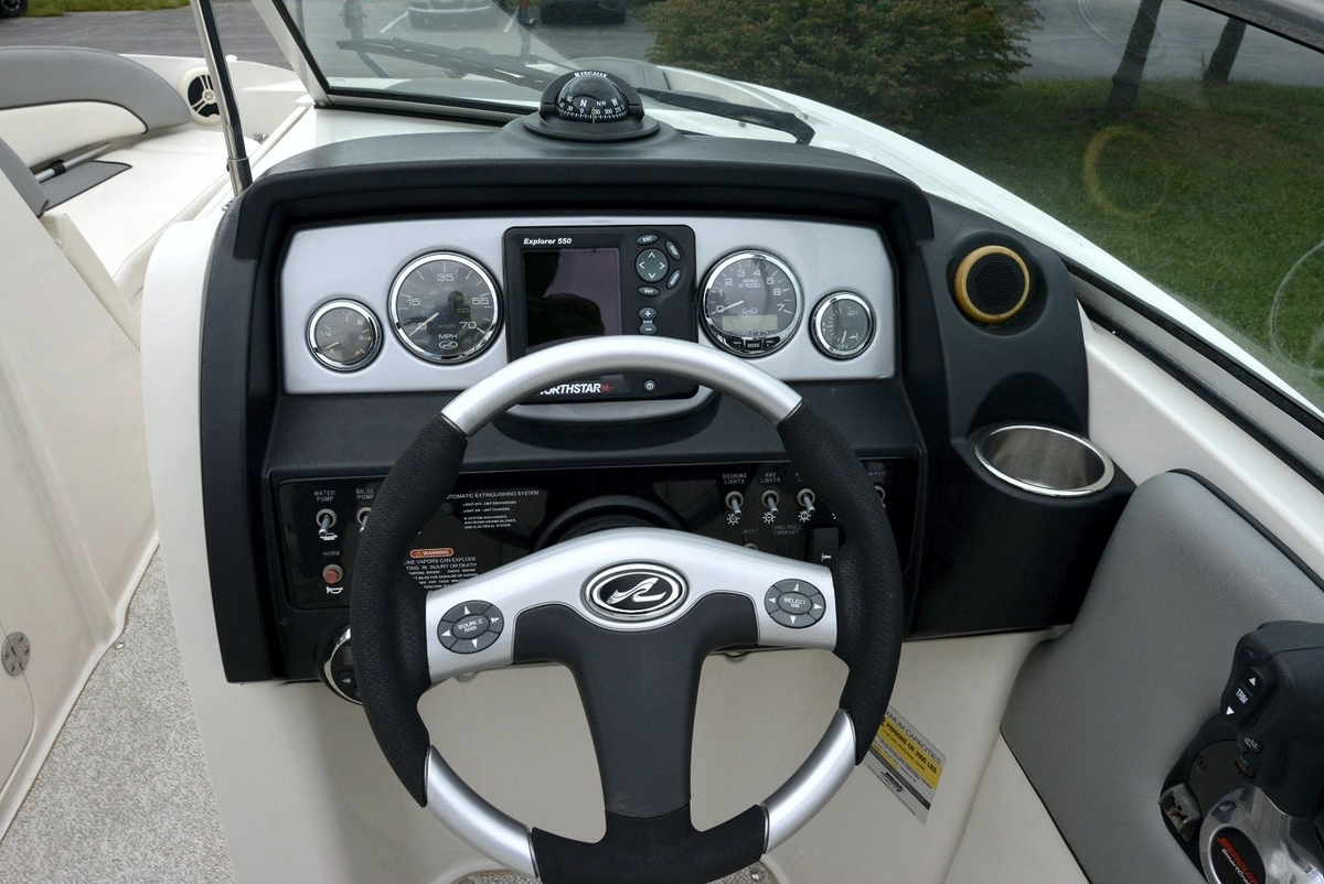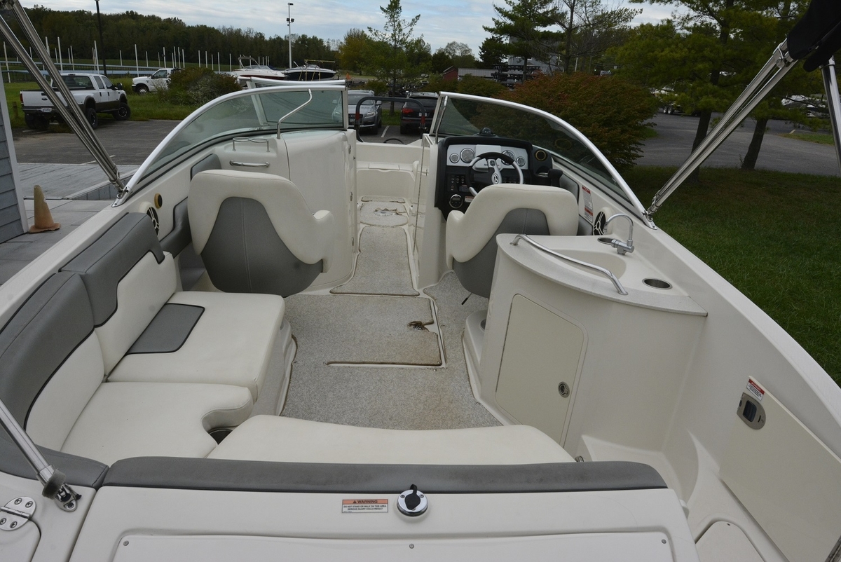 This 260 Sundeck is in EXCELLENT condition. The gel coat has a very nice shine to it and really looks great. The upholstery throughout the boat is in excellent shape as well, this boat was covered when not in use. Bimini Top, Boarding Ladder, Tilt-Wheel w/ Multifunction Controls, Porta Potti w/Dockside Pump Out, Fresh Water System, Snap-in Carpet, Bow Filler Cushion, 150 ft. The anchor line, DTS Shift Control, Stereo System w/Subwoofer, Bow & Aft Cockpit Tables, Cooler, Transom Shower, Garmin 545s GPS, Owners Manual, Trim Tabs, Wakeboard Tower, Compass, Bow Ladder, Bow & Cockpit Covers, 2 Brackets for Wakeboard Mount, Anchor.