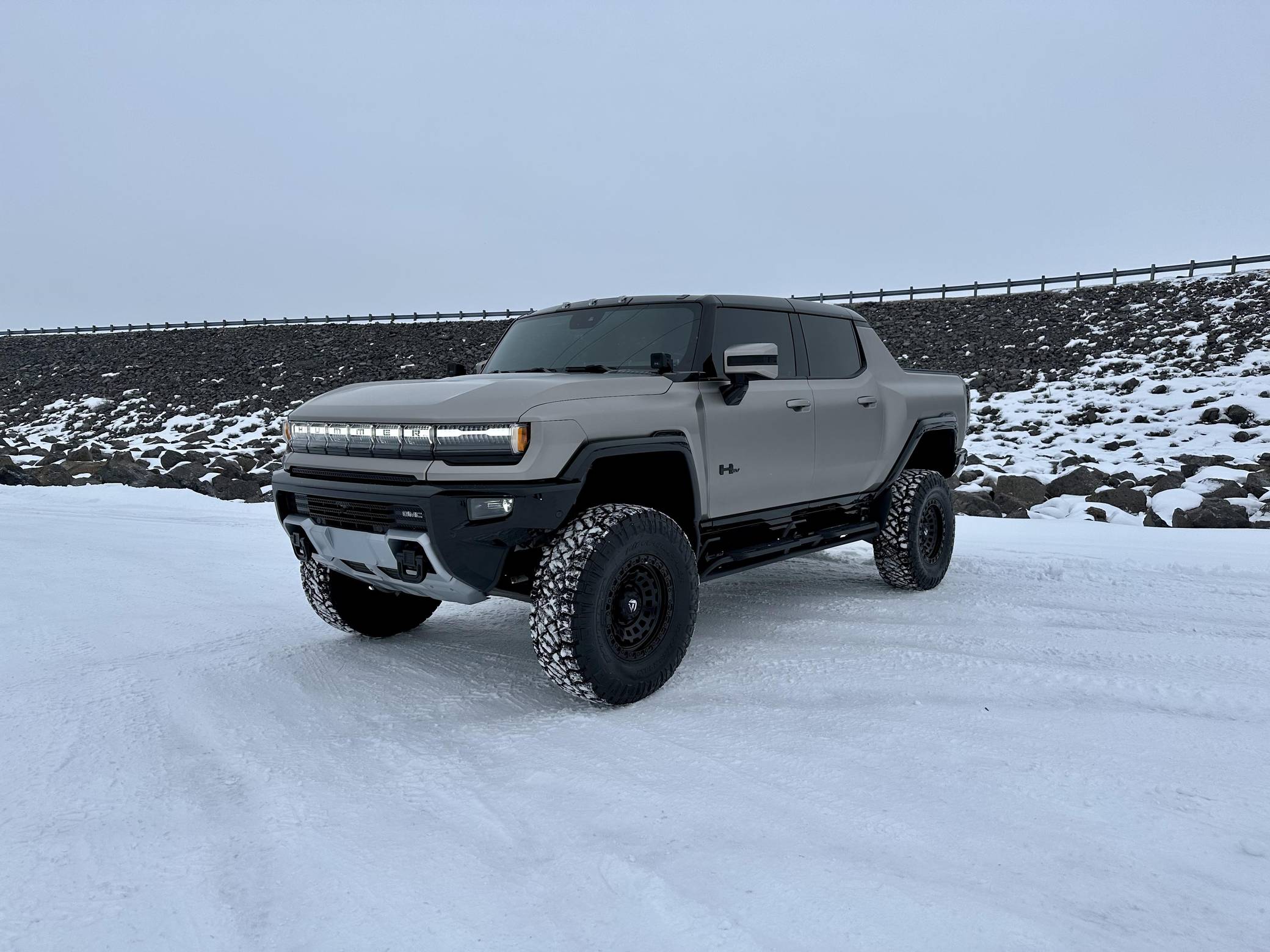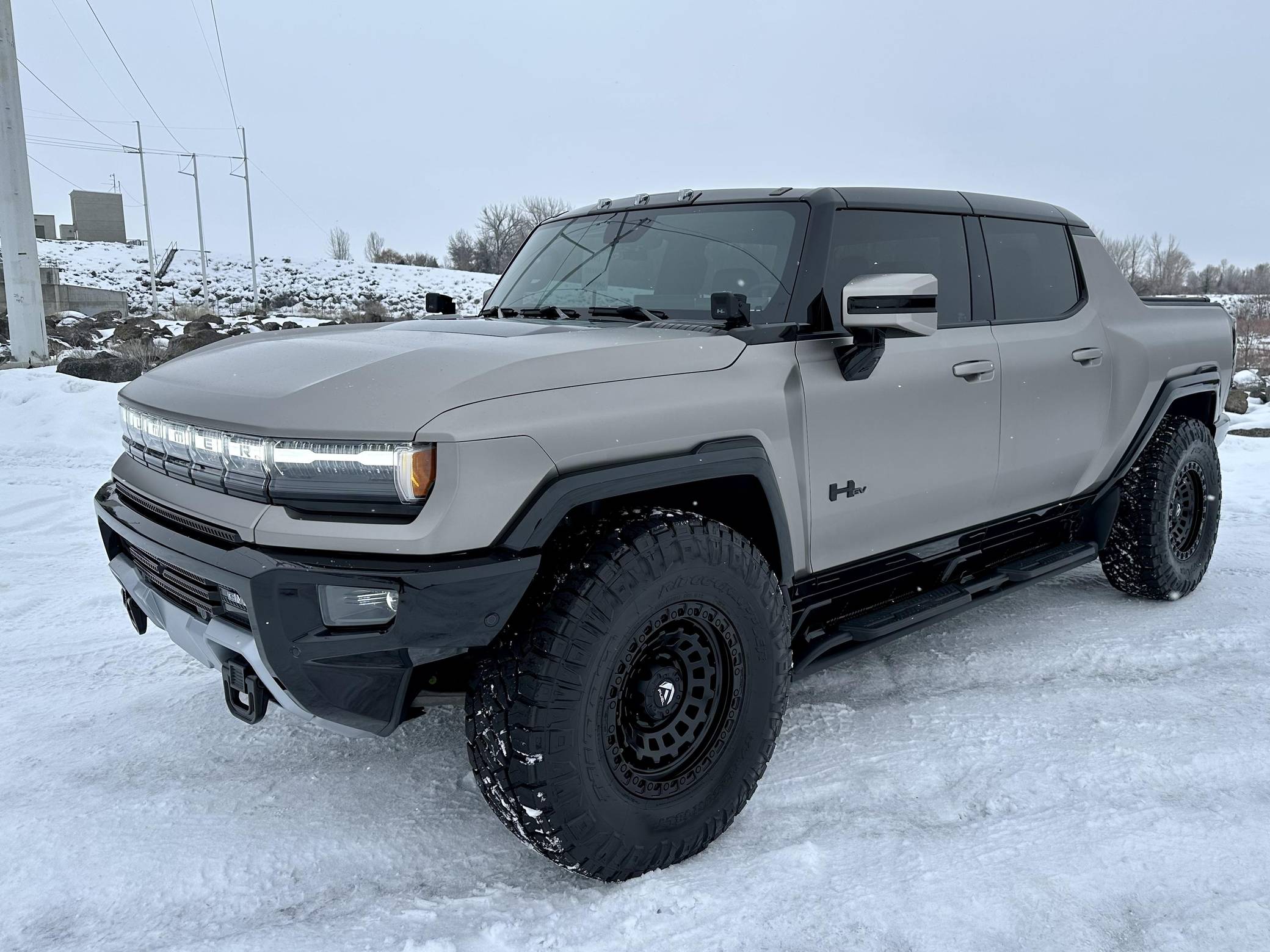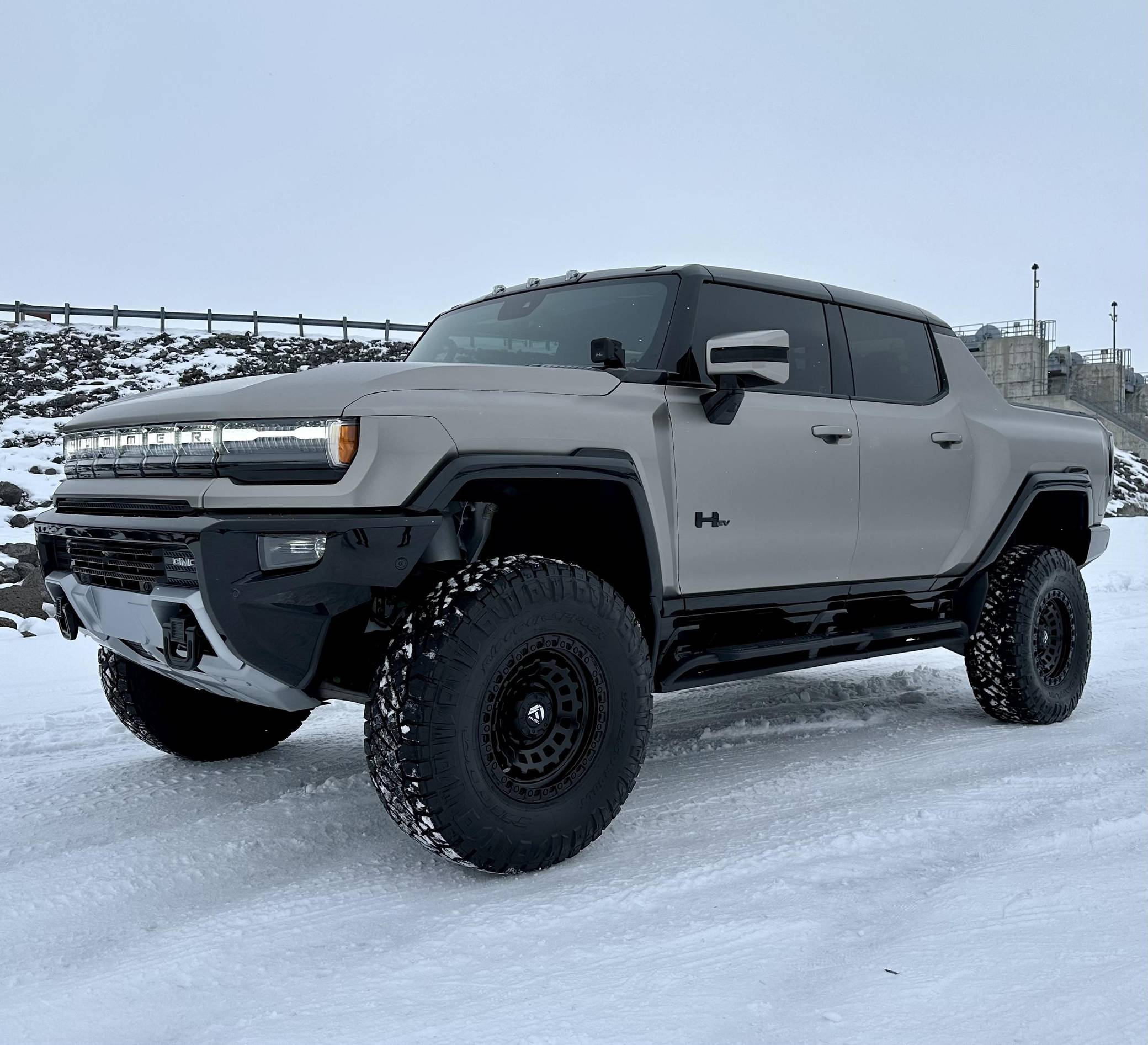 THIS. . . is a 2022 GMC Hummer EV Pickup Edition 1, finished in Interstellar White with a Jet Black and Light Gray interior. It's equipped with the Illumination Package, an Air Ride adaptive suspension system, a four-wheel steering system with a CrabWalk Mode, a Multipro tailgate, a power-retractable tonneau cover, an Infinity Roof with transparent Sky Panels, and a 14-speaker Bose surround sound system, among other features. Modifications reported by the seller include 18-inch Fuel wheels with 37-inch tires, a satin aluminum vinyl wrap, paint protection film on some surfaces, ceramic window tint, and tinted paint protection film on the roof panels. General Motors unexpectedly resurrected the Hummer name on a massive electric truck assigned to the GMC brand. Built around the firm's Ultium technology, the Hummer EV stands out with a powerful electric drivetrain and several off-road-focused features, like a four-wheel-steering system with a CrabWalk mode capable of turning the four wheels in the same direction. Hummer EV production began in late 2021. Power comes from three electric motors, which draw electricity from a 212-kilowatt-hour lithium-ion battery pack to zap the four wheels with about 1,000 horsepower, according to GMC. The Hummer EV Pickup Edition 1 offers an EPA-estimated driving range of 329 miles.