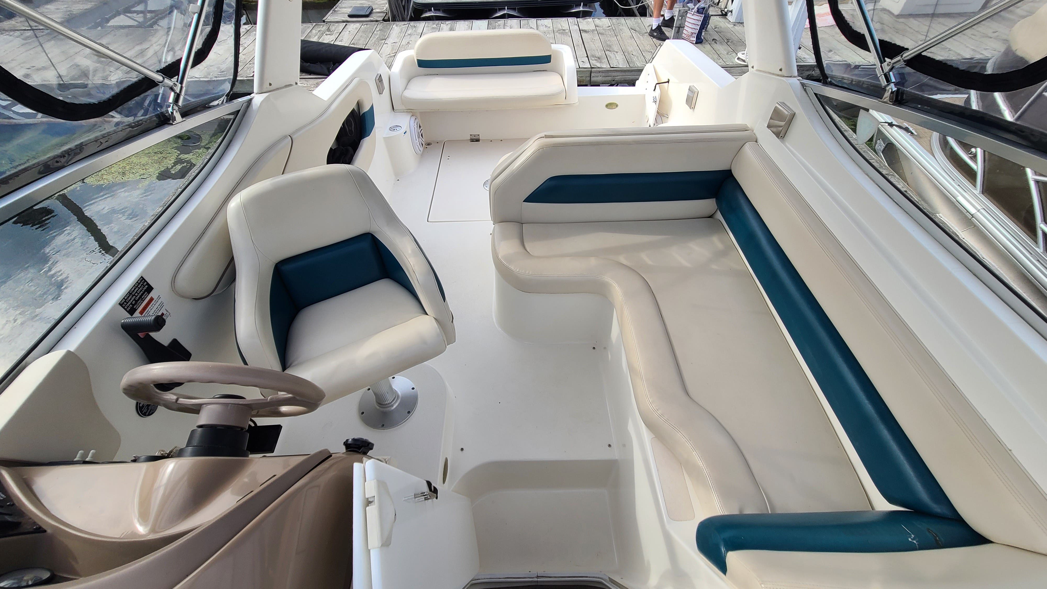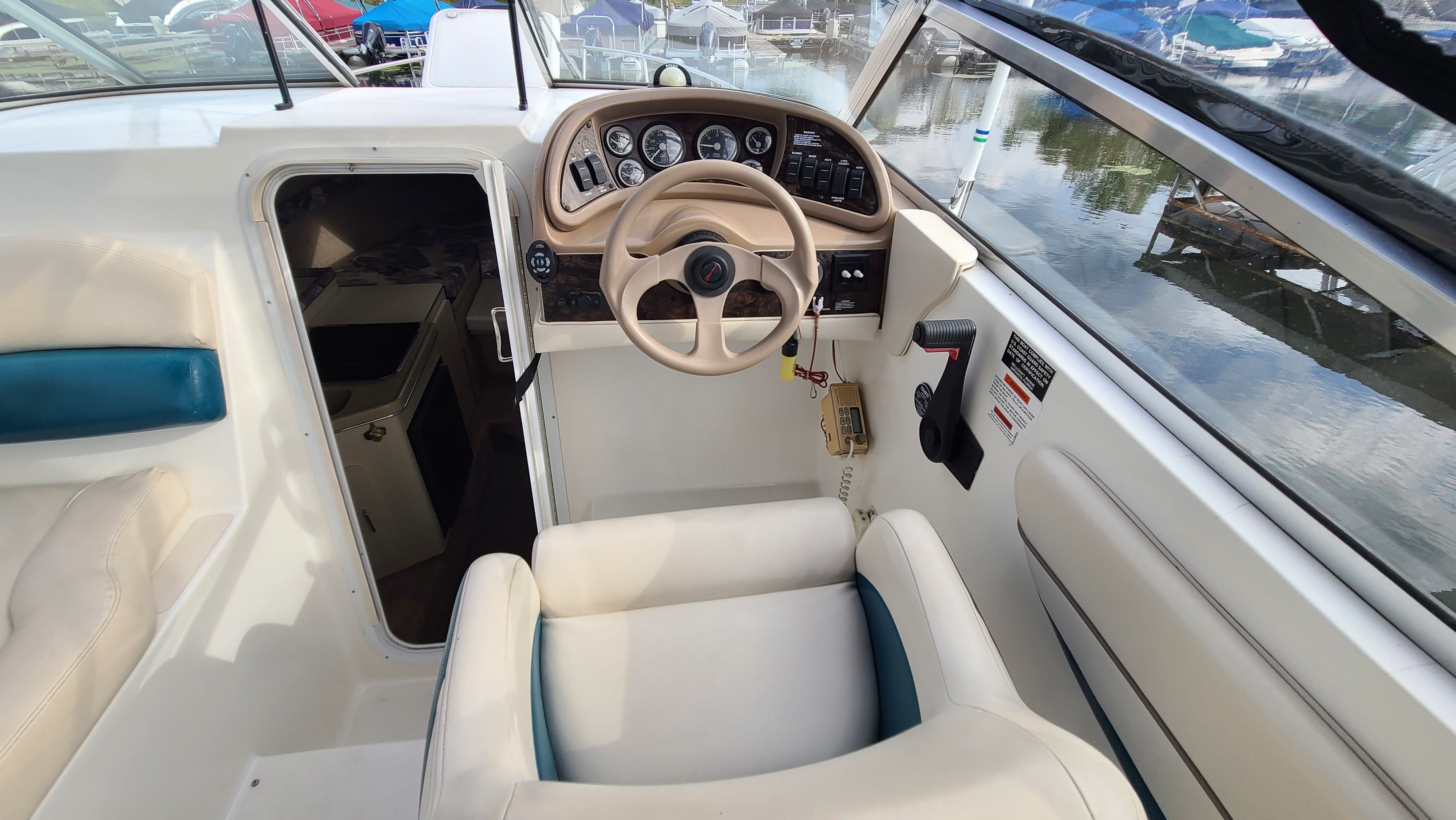 Very good looking Wellcraft 260 SE, was later known as the 2600 Martinique (Renamed in 1999), this boat was tough competition for other 26 foot boats as its interior Layout is open, roomy, and offers great seating for a boat this size. The Cockpit L Shape Seating Can Fold Out into a Full-Size Sun Island and with its Full Canvas Enclosure could be used as additional sleeping. The Captains Seat is Oversized and Comfortable and a Walk Through windshield allows access to the Bow. This boat is built on a Solid Fiberglass Hull and weighs around 5,000lbs, with its 20-degree deadrise the ride is smooth and comfortable. Step inside the Cabin and the Mid Cabin Design with forwarding Double Berth is Impressive, a Side Dinette is a Feature not seen in many 26 foot boats and the Galley is Compact yet has everything you would expect in a boat this size (Refrigerator, Stove, Microwave and Good Storage). The Mid Cabin is Exceptional in Size and has an easy entry, a window can open in the Mid Cabin as Well to allow some Air Flow. The head is Noteworthy as it has a Vacu Flush Head, the head is roomy and very clean. Overall the interior of this boat should not disappoint! Other Features & Options found on this Wellcraft 260 SE include a Compass, Depth Finder, Horn, VHF Radio, Updated Stereo, Trim Tabs, 110-12 Volt Refrigerator, Alc/Elect Stove, Microwave, Water heater, Transom Shower, Battery Charger, Dockside Power with Cord, Full Canvas Enclosure with Screens, New Cockpit Cover, Anchor, Mooring Lines & Fenders!