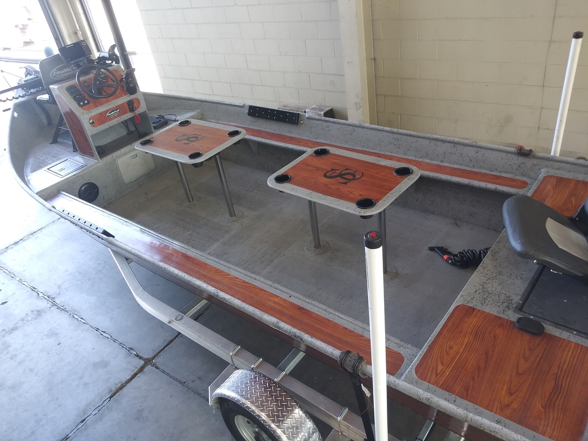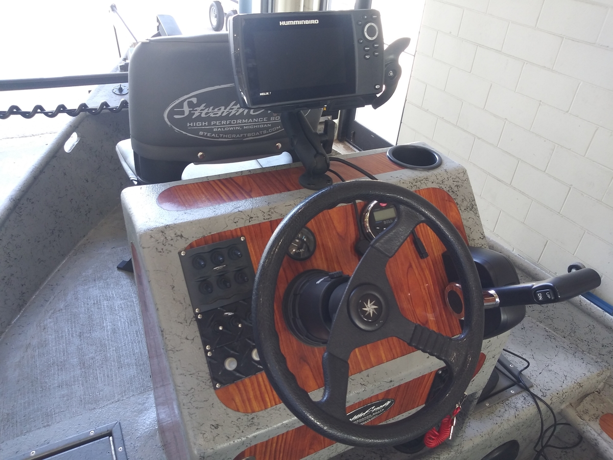 Terrova 55-lb. thrust iPilot link, Drift Pro river anchor winch with 50-lb. pyramid anchor, Stereo with 4 speakers, Humminbird Helix 7 MDI, Washdown, 2 matching Stealthcraft tables with 4 corner cupholders apiece, 3-bank Minn Kota battery charger, 17-gal. fuel tank, Aluminum I-beam trailer.