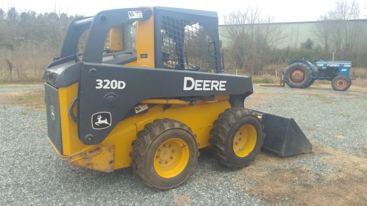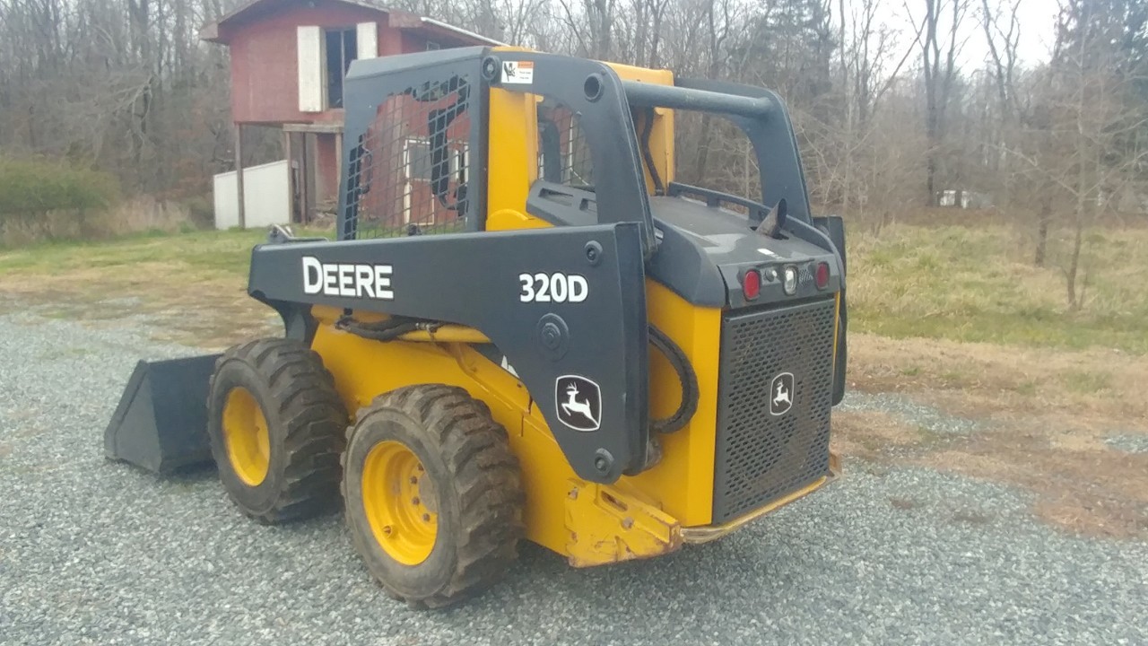 2011 JOHN DEERE 320D. Open ROPS 63 HP, 2 speed with hand-and-foot controls, 80" Bucket, Quick Attach. It has a four-cylinder John Deere 4024T E liquid-cooled turbocharged diesel engine that produces 63 horsepower.