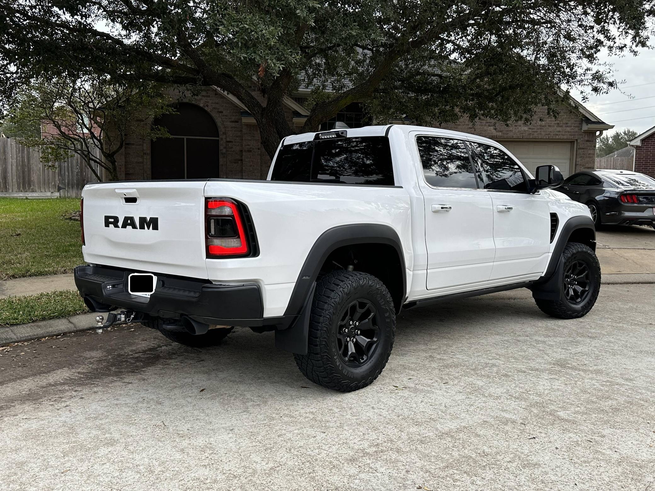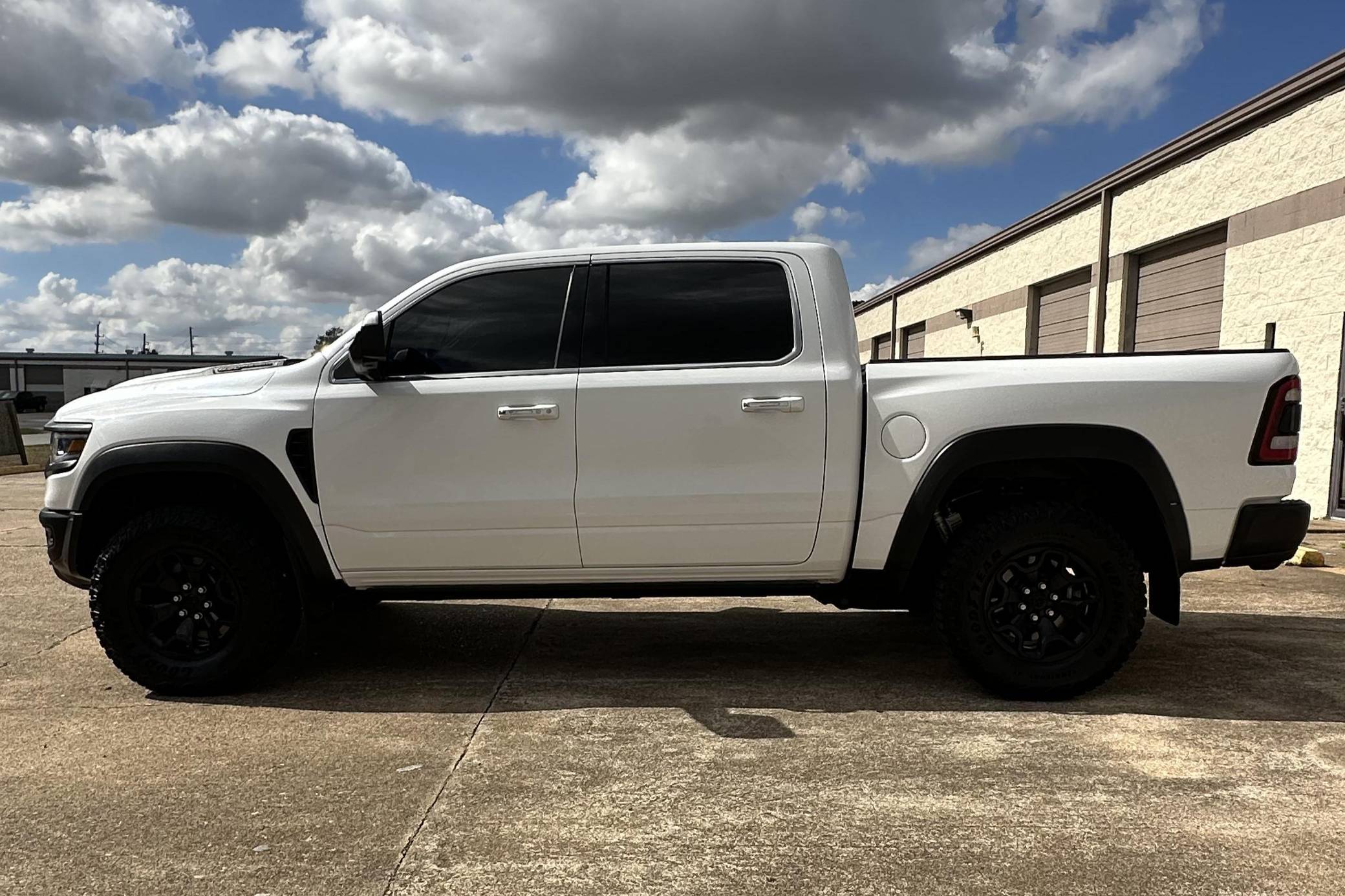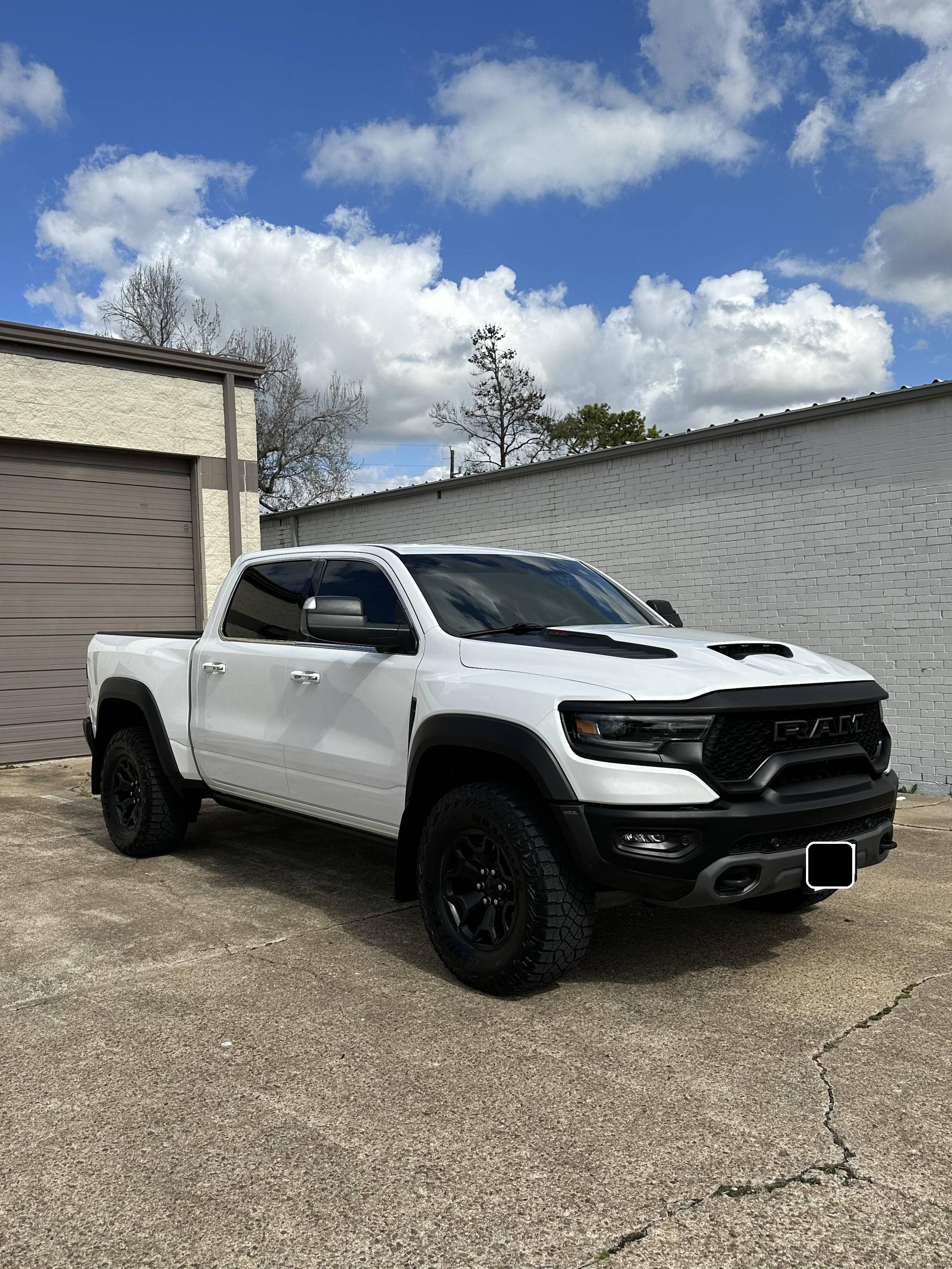 THIS. . . is a 2019 Ram 1500 Laramie 4x4, finished in Ivory White Coat with a black and red interior. Notable equipment includes a rear power sliding window, adjustable cargo tie-down hooks, LED bed lighting, a spray-in bedliner, remote tailgate release, power-adjustable pedals with memory, dual-zone automatic climate control, remote start, blind-spot monitoring, and ParkSense. Modifications to this Ram are extensive, and the full list is detailed below. include the powertrain, suspension system, exterior body parts, and interior from a 2021 Ram 1500 TRX, a Ripatuned Incognito lower damper sleeve, a custom tune, a JLT catch can, and AMP Research power running boards. Ram took a direct shot at the Ford F-150 Raptor when it released the 1500 TRX for the 2021 model year. Developed for high-speed off-road driving, the TRX gains a strengthened frame, a long-travel suspension system, a model-specific exterior design, and Dodge's celebrated Hellcat engine. It's the world's most powerful series-produced pickup. Power comes from a "Hemi SRT" supercharged 6. 2-liter V8 engine, which produces 702 horsepower and 650 lb-ft of torque in stock form. Due to the modifications performed to this Ram, it may produce more power, but a dyno sheet was not provided to confirm. Output is sent to all four wheels via an 8-speed automatic transmission.