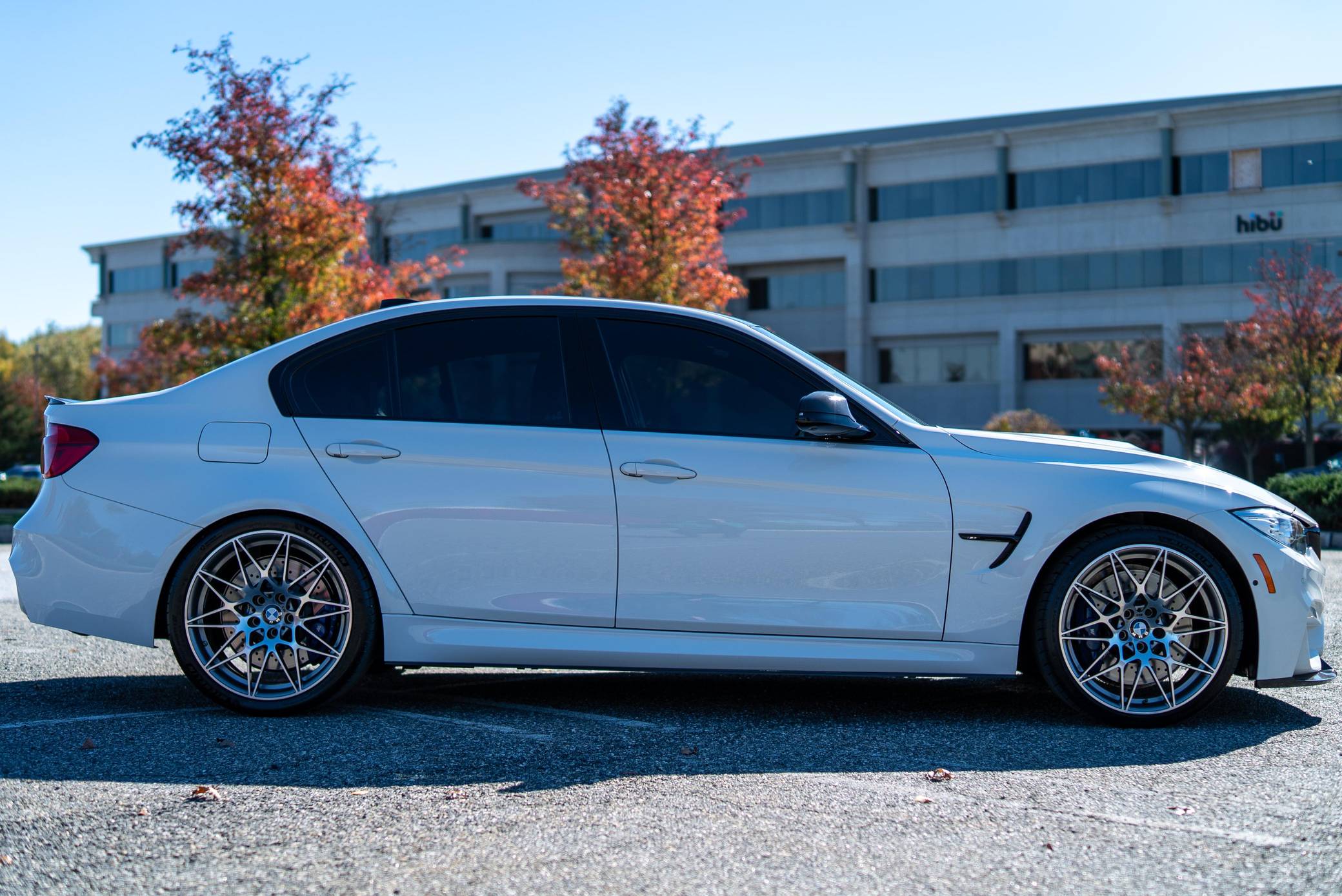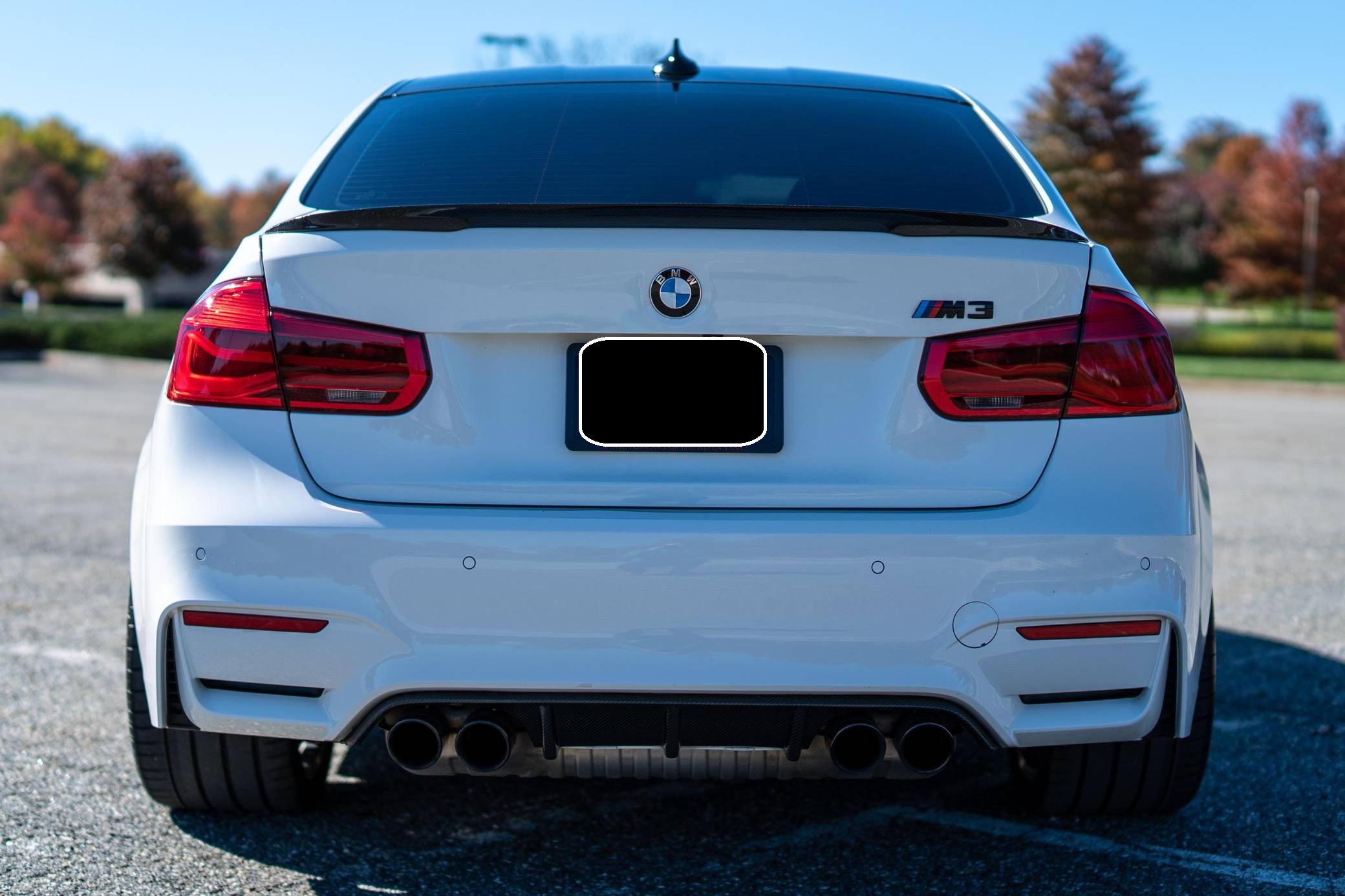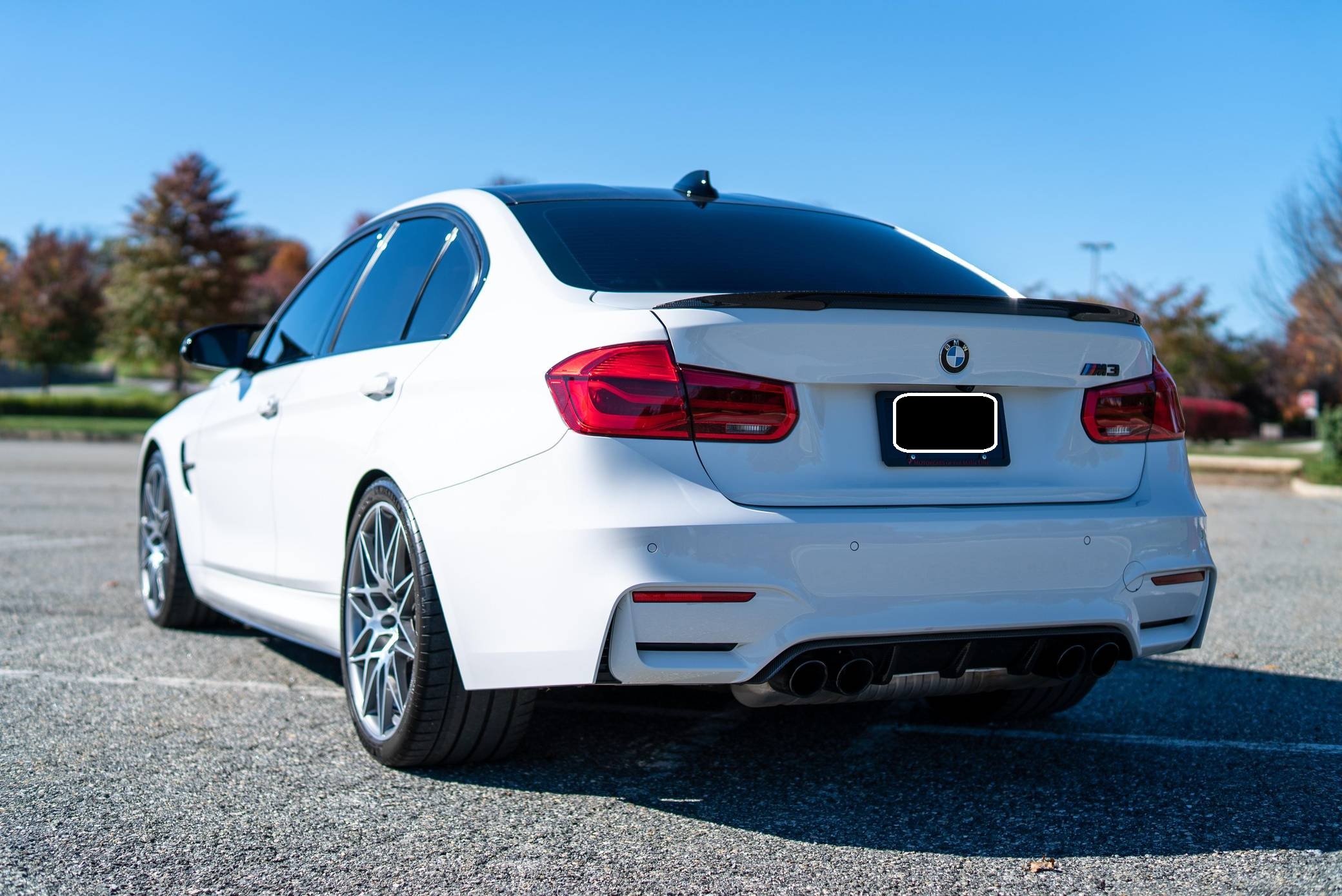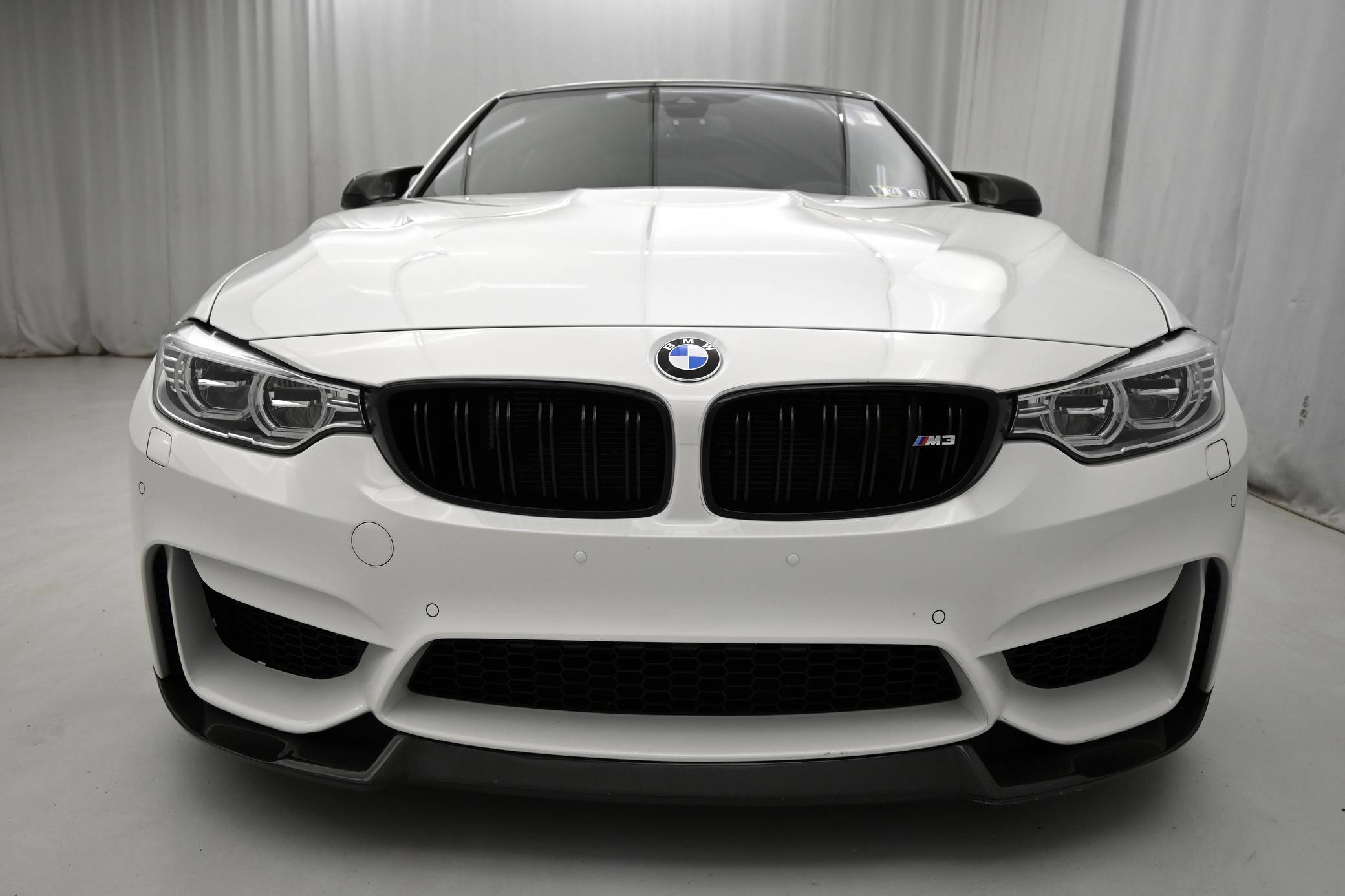 THIS… is a 2017 BMW M3, finished in Alpine White with a black interior. According to the build sheet provided in the gallery, factory equipment includes the Competition, Executive, Driver Assistance Plus, and Lighting packages, a carbon fiber roof panel, Merino leather upholstery, heated front and rear seats, a head-up display, Comfort Acess keyless entry, and a Harman/Kardon surround sound system. Modifications reported by the seller include paint protection film, tinted windows, a carbon fiber front splitter, side mirror caps, side skirt extensions, rear decklid spoiler, and rear diffuser. BMW's fifth-generation M3 went on sale for the 2015 model year. Based on the "F30" 3 Series, and called "F80" internally, it swapped its predecessor's V8 for a turbocharged straight-6 and picked up more horsepower and a lot more torque along the way. It wore a muscular-looking exterior design, and M added a carbon fiber roof panel to keep weight in check. Production ended in 2018. Power comes from an "S55" 3. 0-liter twin-turbocharged inline-6 engine, rated at 444 horsepower and 406 lb-ft of torque. Output is sent to the rear wheels via a 7-speed dual-clutch automatic transmission.