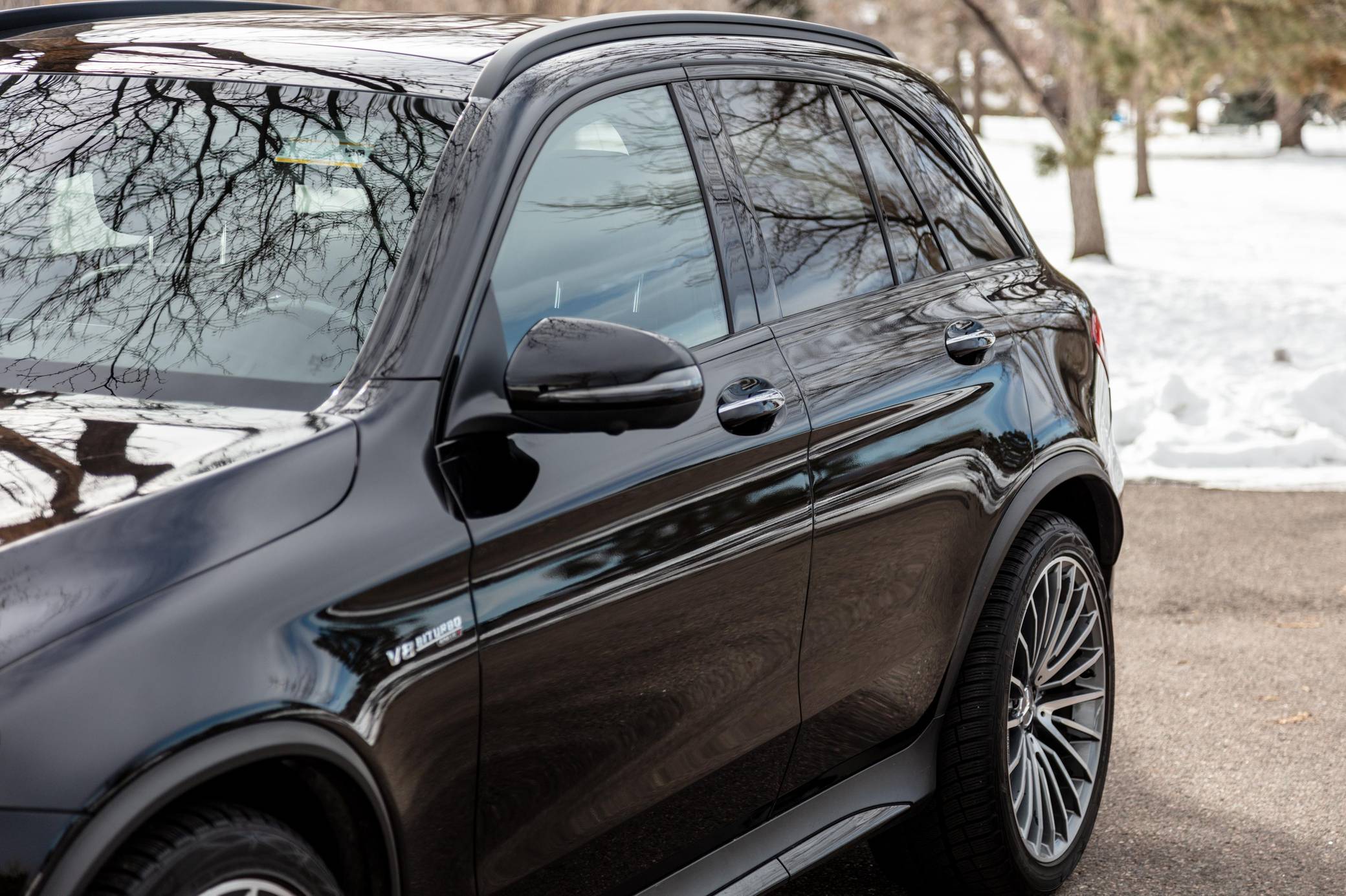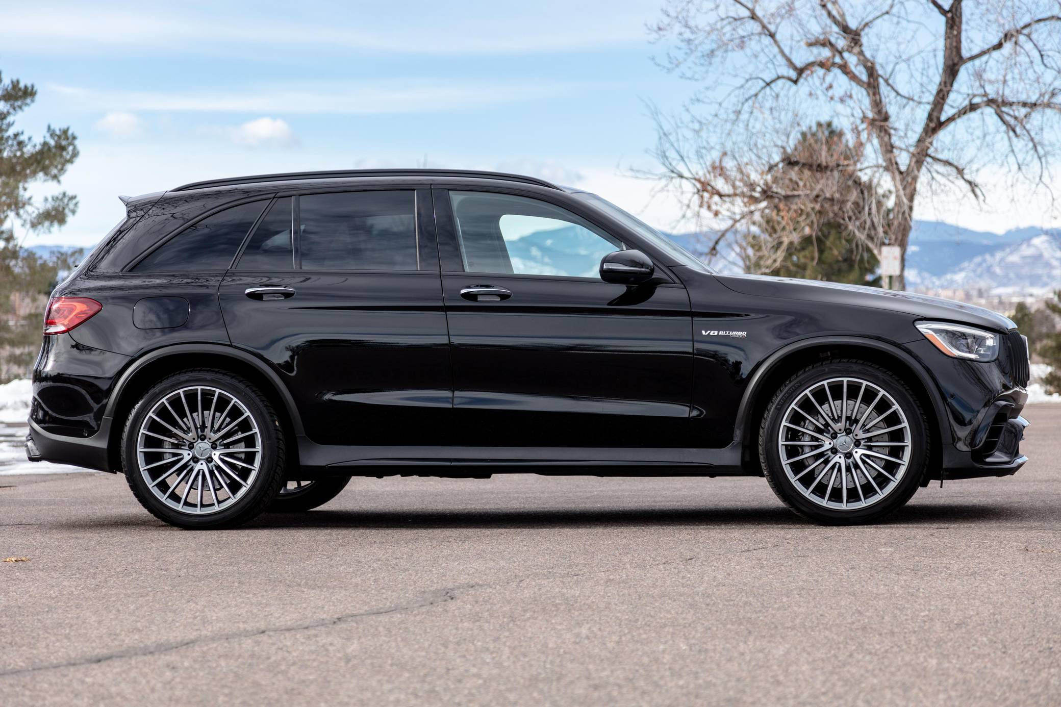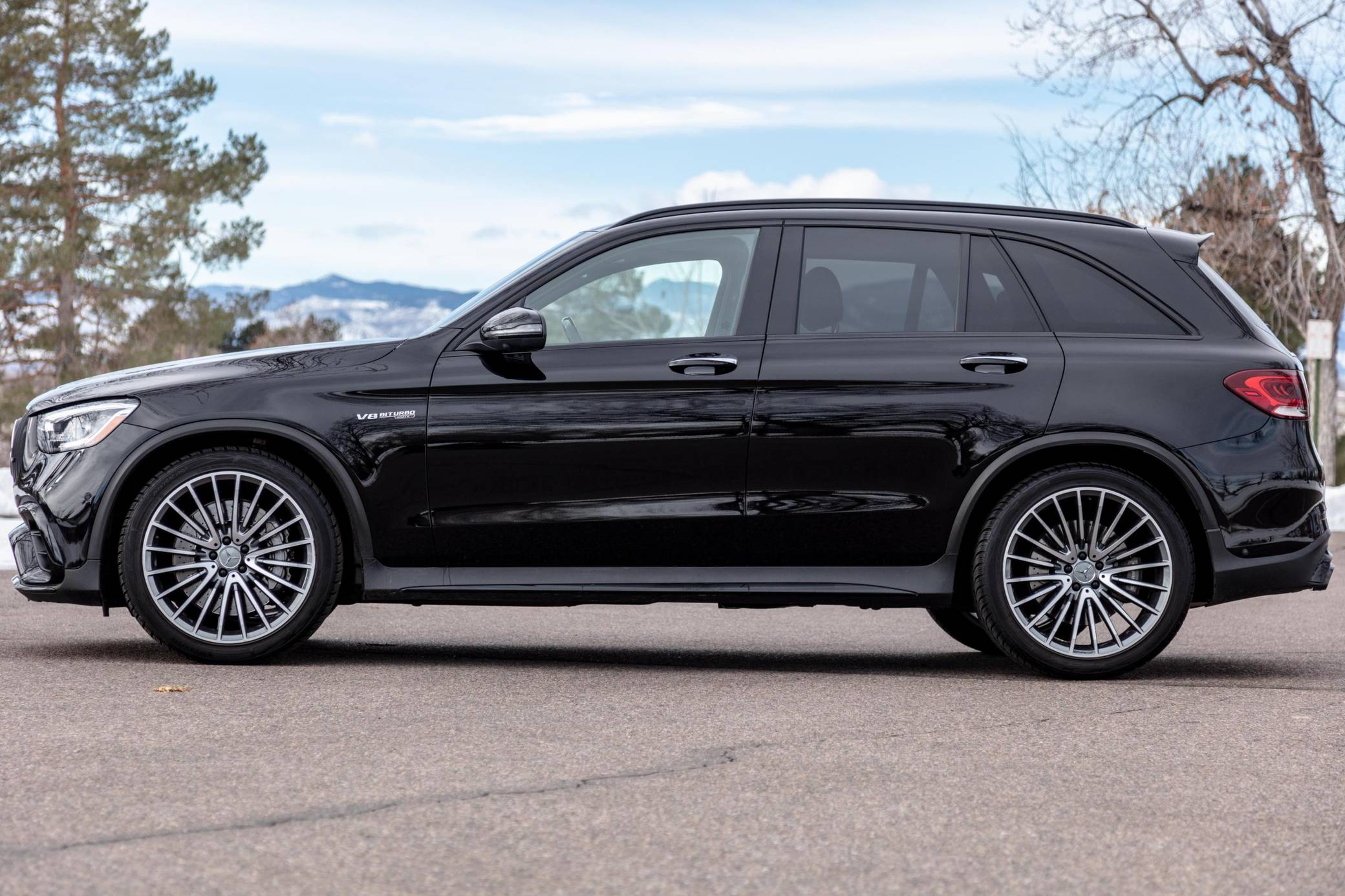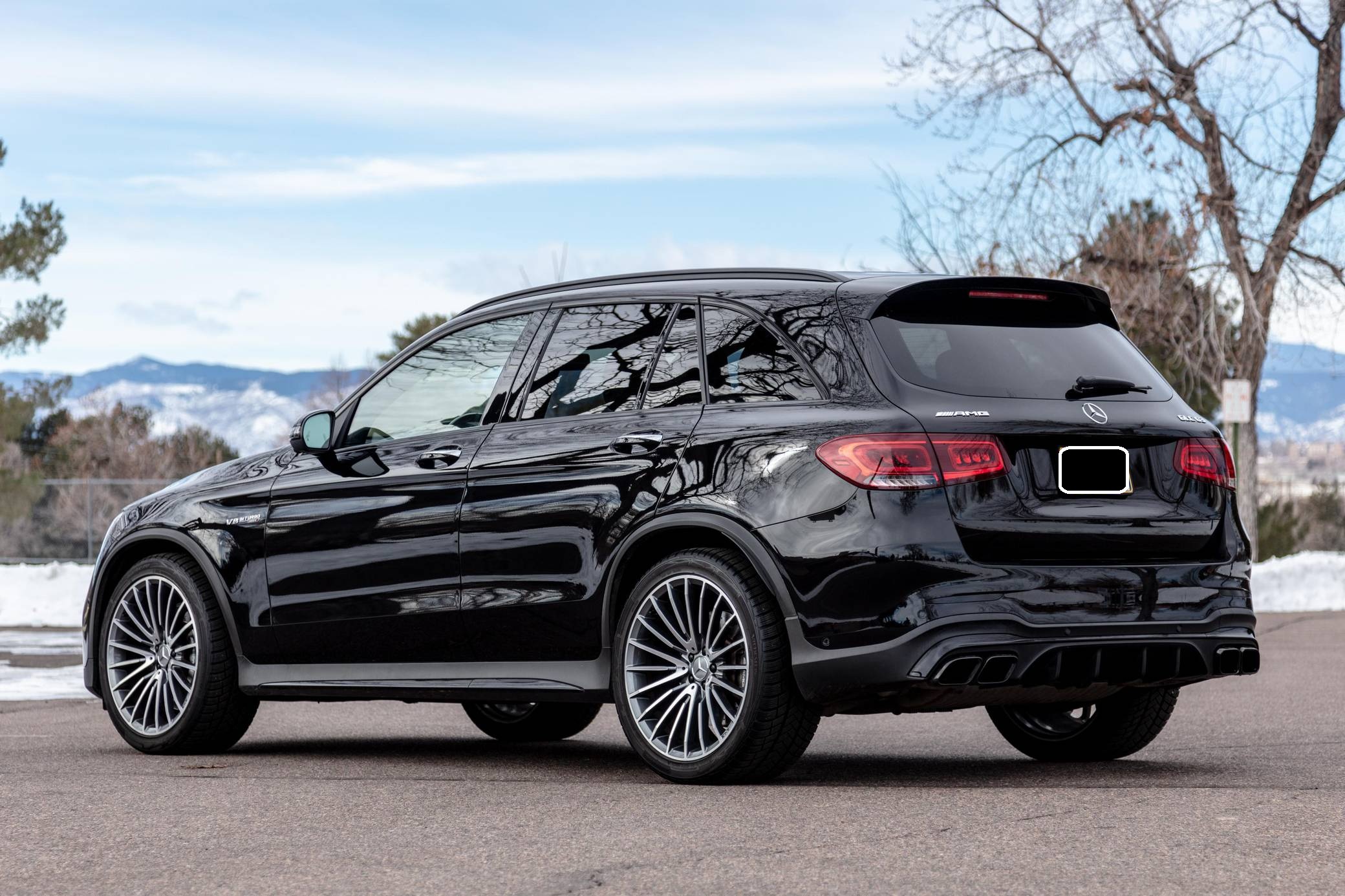 THIS. . . is a 2020 Mercedes-AMG GLC 63, finished in Obsidian Black Metallic with a black interior. Highly optioned, it's equipped with the AMG Night, Exterior Lighting, and Driver Assistance packages, an AMG Sport suspension system, an electronic limited-slip differential, carbon fiber interior trim, heated, ventilated, and power-adjustable front seats, heated rear seats, a wireless device charger, a 10. 25-inch display for the MBUX infotainment system, and a Burmester surround sound system, among other features. Modifications reported by the seller are limited to tinted rear windows, a Stealth Hitches trailer hitch, and a gray finish on the factory 21-inch wheels. Mercedes-AMG created the GLC 63 by combining the C63's V8 with the E63's transmission and performance-tuned all-wheel drive system. Launched for 2018, the GLC 63 was available as an SUV and as a four-door fastback labeled Coupe by the manufacturer. Production ended in 2023. Power comes from a 4. 0-liter twin-turbocharged V8, rated at 469 horsepower and 479 lb-ft of torque. It spins the four wheels via a 9-speed automatic transmission.