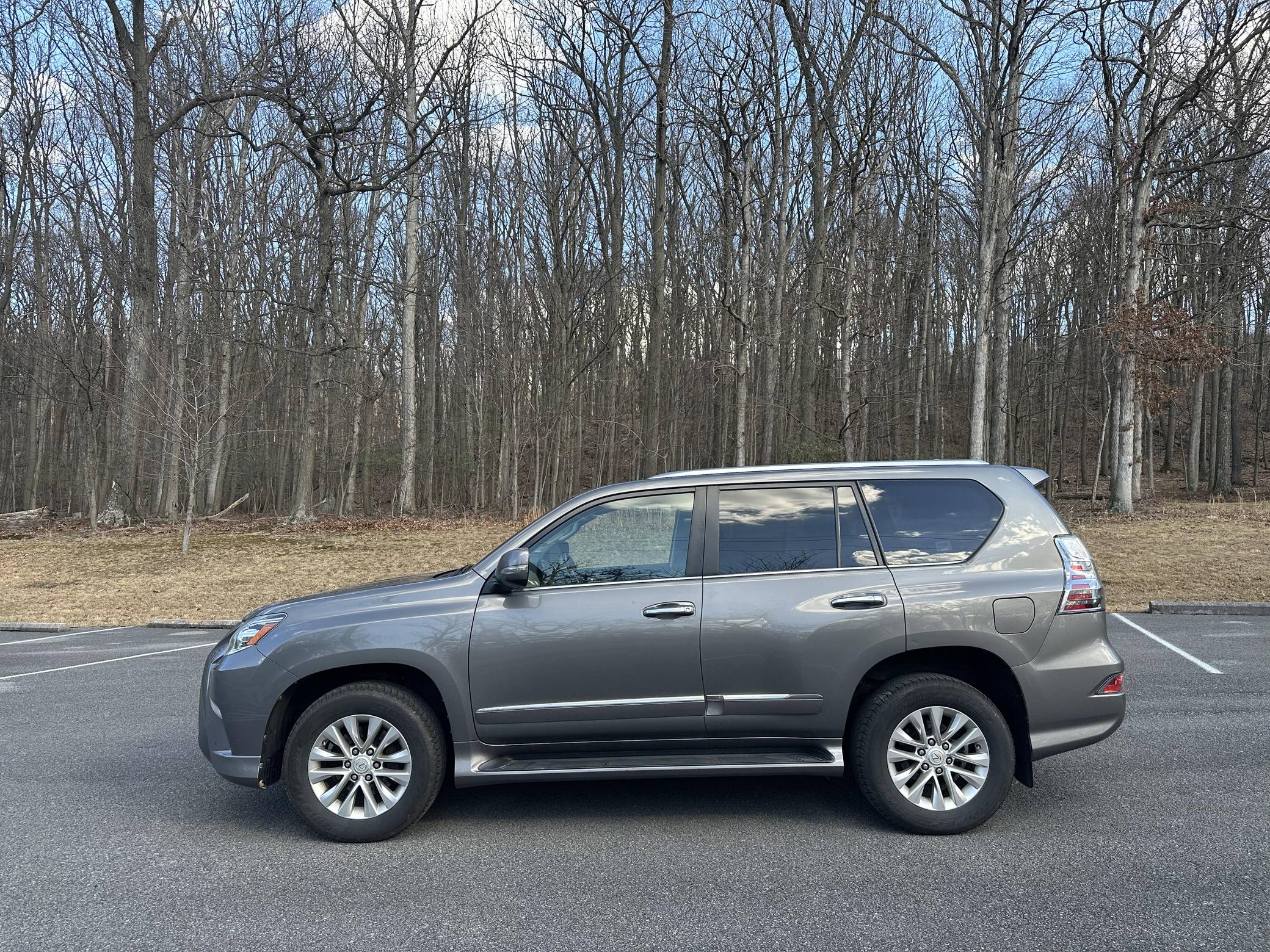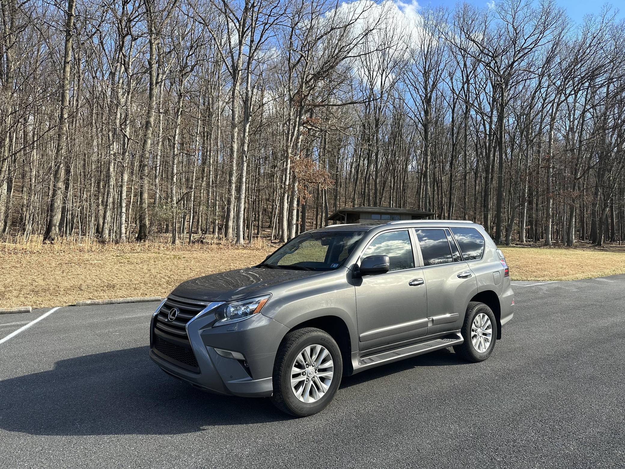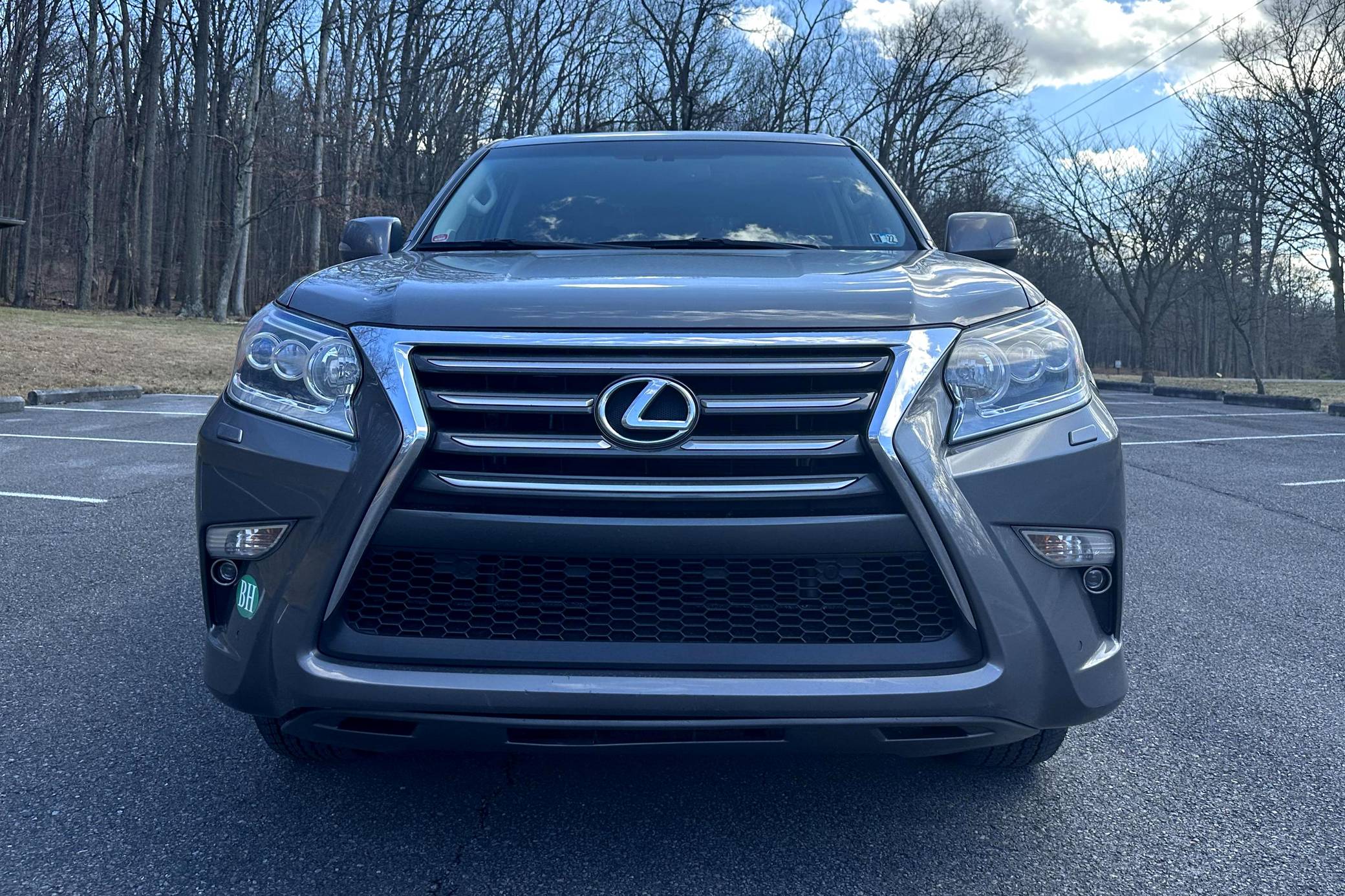2014 Lexus GX 460, finished in Knights Armor Pearl with a black interior. Equipment includes 18-inch wheels, a locking center differential, KDSS suspension system, a sunroof, leather upholstery, heated and cooled front seats, lane-departure alert, navigation system, a Mark Levinson audio system, and more as detailed below. The seller reports no modifications. The GX is based on the Toyota Land Cruiser Prado sold globally, and it also shares its bones with the Toyota 4Runner. Those siblings share their off-road abilities with the GX, which adds a height-adjustable suspension, Kinetic Dynamic Suspension System hydraulic sway bars that automatically disconnect for off-road articulation, and adaptive dampers. Power comes from a 4. 6-liter V8, rated at 301 horsepower and 329 lb-ft of torque. Output is sent to all four wheels through a 6-speed automatic transmission and a 2-speed transfer case.