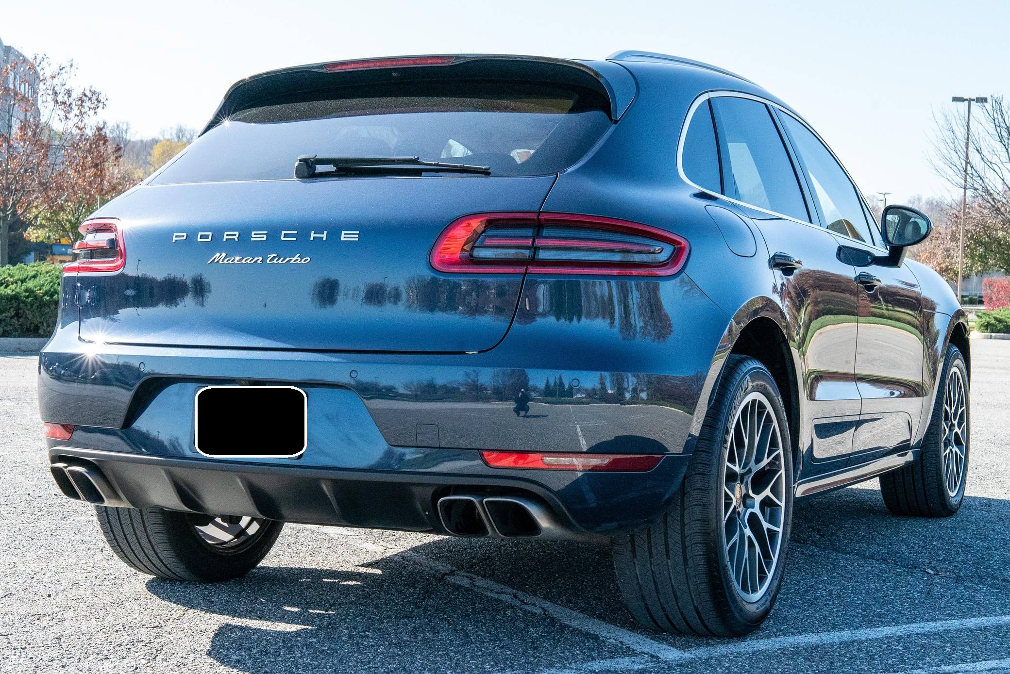 THIS… is a 2015 Porsche Macan Turbo, finished in Dark Blue Metallic with a Luxor Beige interior. A build sheet is provided in the photo gallery, and a partial list of notable equipment includes the Premium Package Plus, the Comfort Lighting Package, 20-inch RS Spyder design wheels, aluminum-finish roof rails, a heated multi-function sport steering wheel in Dark Walnut, Dark Walnut interior trim, and 3-zone climate control. The seller reports no modifications. Encouraged by the Cayenne's success, and eager to tap into one of the biggest segments of the market, Porsche introduced the Macan as its entry-level SUV for 2015. Some of the model's underpinnings came from Audi, but Porsche dialed in a level of performance and handling that's unusual to find in a compact SUV. The Turbo model was positioned at the top of the line-up through the 2021 model year. Power comes from a turbocharged 3. 6-liter V6, rated at 400 horsepower and 406 lb-ft of torque. It spins the four wheels via a 7-speed dual-clutch automatic transmission.