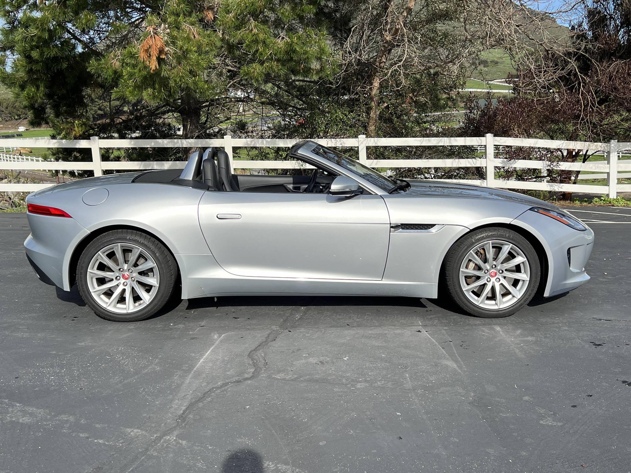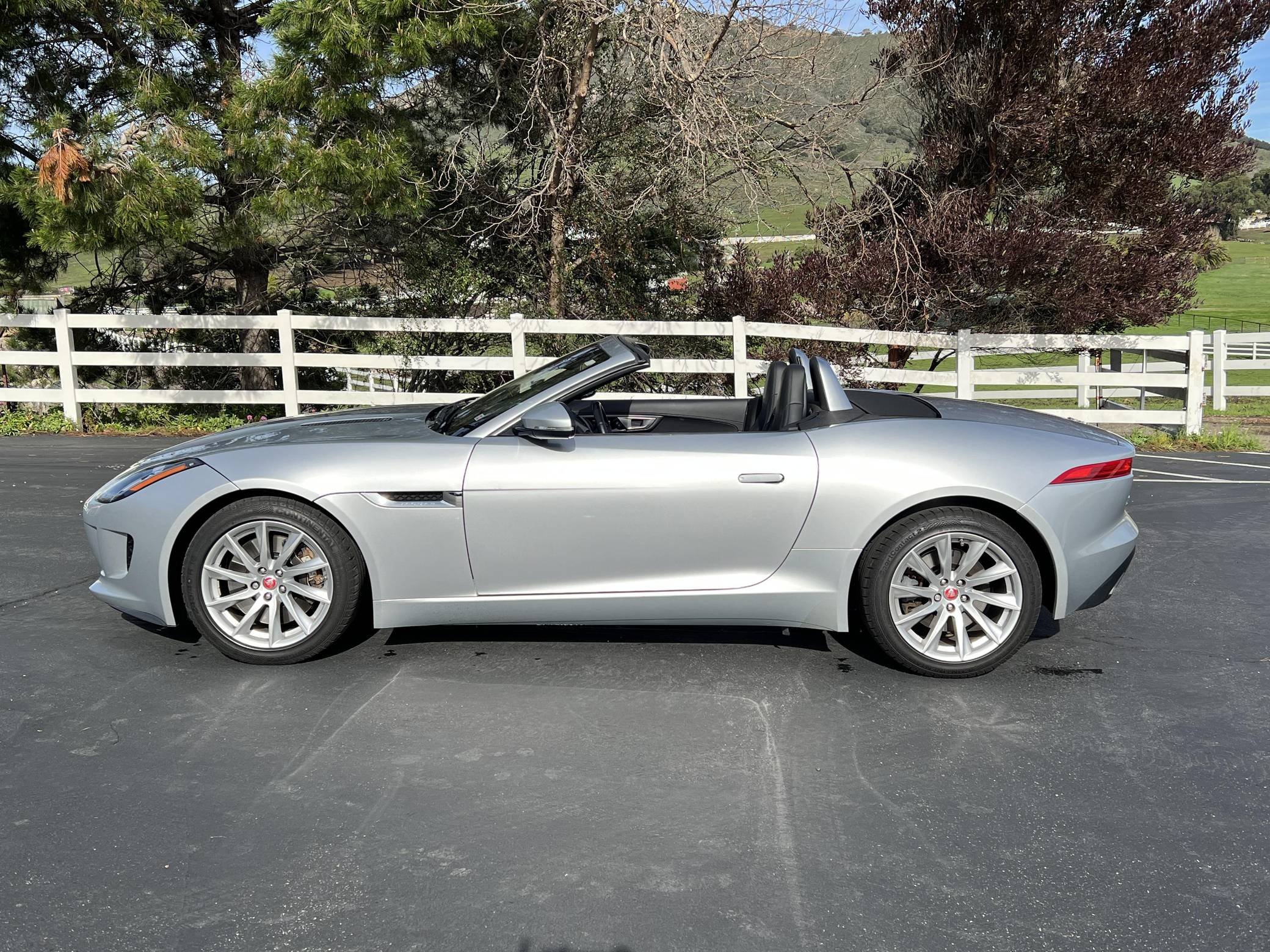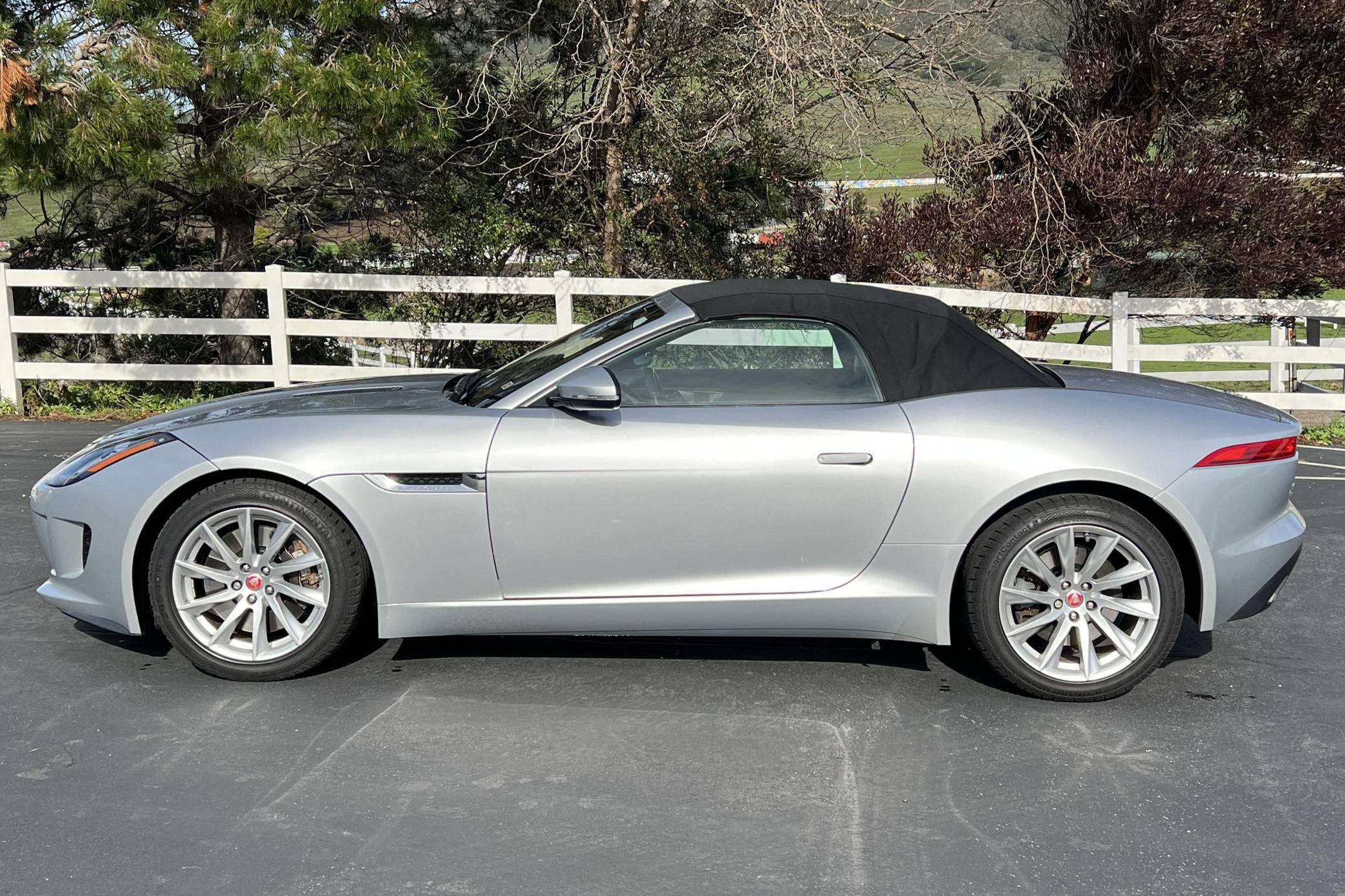THIS… is a 2017 Jaguar F-Type convertible, finished in Indus Silver Metallic with a black soft top and a black interior. This F-Type's odometer currently displays about 26,800 miles. Factory equipment includes 18-inch wheels, a power-operated soft top, power-operated rear spoiler, leather and Alcantara upholstery, power-adjustable seats, automatic climate control, and a Meridian sound system, among others listed below. The seller reports no modifications. Based on the C-X16 concept from 2011, Jaguar unveiled the hotly-anticipated F-Type for the 2014 model year. Offered as a coupe and as a convertible, the F-Type was presented as the E-Type's spiritual successor, and as an alternative to sports cars like the Porsche 911. This model is the supercharged V6 variant of the F-Type with a top speed of 161 mph and a 0-to-60 mph time of 5. 1 seconds. It was available from 2014 until 2019. Power comes from a 3. 0-liter supercharged V6, rated at 340 horsepower and 332 lb-ft of torque. Output is sent to the rear wheels via an 8-speed automatic transmission.