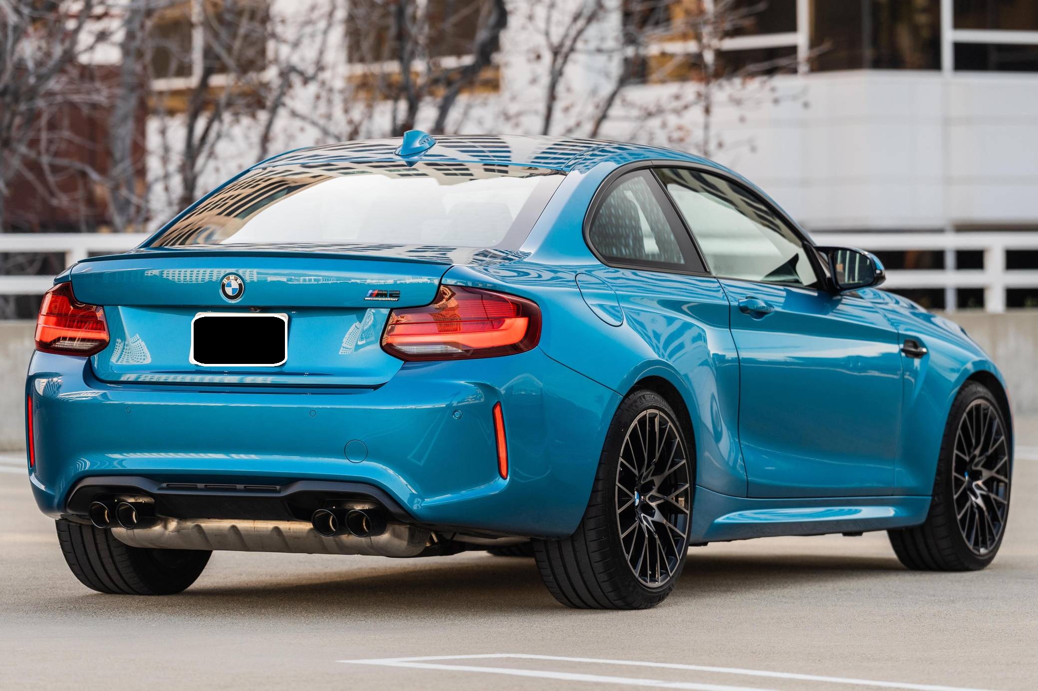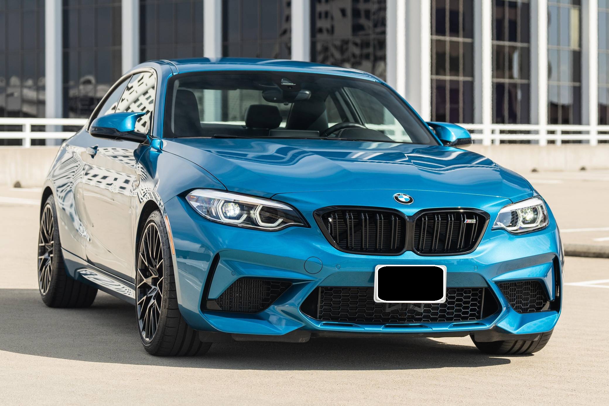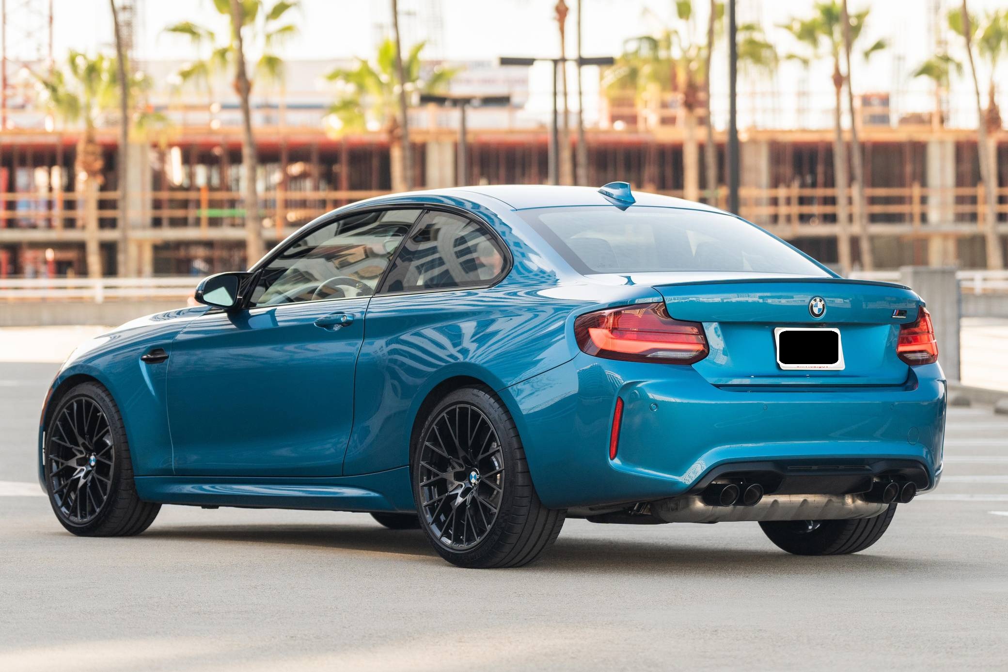 THIS. . . is a 2021 BMW M2 Competition, finished in Long Beach Blue Metallic with a black interior with blue stitching. This M2 is equipped with the desirable 6-speed manual transmission, and its odometer displays approximately 6,000 miles. According to the build sheet provided in the gallery, factory equipment includes the Executive Package, 19-inch Style 788M alloy wheels, M sport brakes, M-tuned exhaust with quad tailpipes, Dakota leather upholstery, and a Harman/Kardon premium audio system, among others listed below. The seller reports no modifications. BMW introduced the "F87" M2 for the 2016 model year as a high-performance evolution of the "F22"-generation 2 Series. Developed to replace the vaunted 1 Series M Coupe, it was celebrated as one of BMW M's greatest modern hits. The more hardcore Competition evolution of the M2 was released for 2019 with a more powerful engine and performance parts borrowed from the bigger M3/M4 duo. It also notably received the M4 Competition's cooling system and a carbon fiber strut brace. Power comes from an "S55" twin-turbocharged 3. 0-liter inline-6, rated at 405 horsepower and 406 lb-ft of torque. Output is sent to the rear wheels via a 6-speed manual transmission.