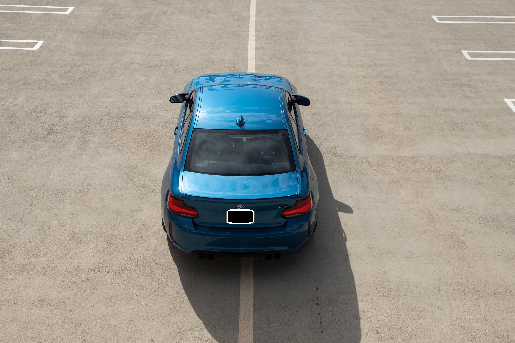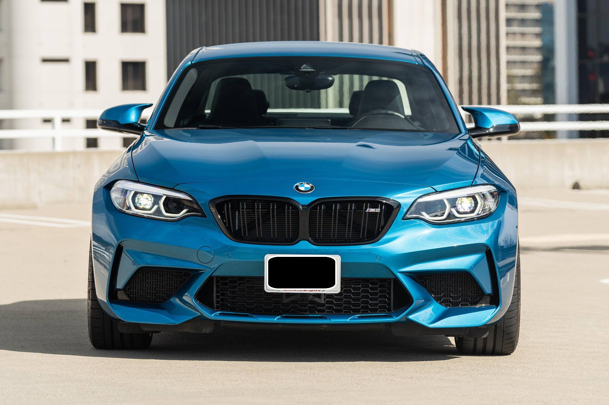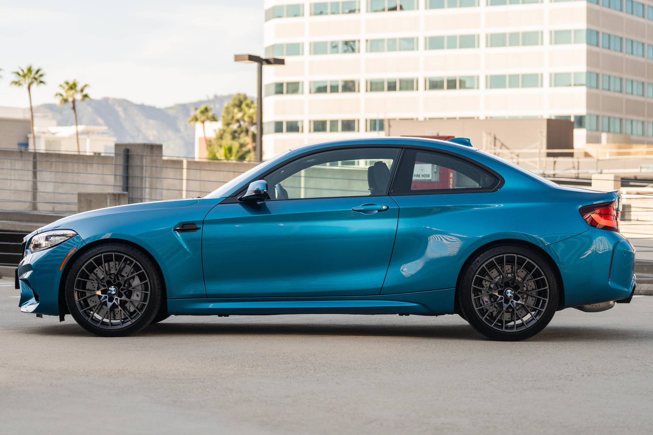 THIS. . . is a 2021 BMW M2 Competition, finished in Long Beach Blue Metallic with a black interior with blue stitching. This M2 is equipped with the desirable 6-speed manual transmission, and its odometer displays approximately 6,000 miles. According to the build sheet provided in the gallery, factory equipment includes the Executive Package, 19-inch Style 788M alloy wheels, M sport brakes, M-tuned exhaust with quad tailpipes, Dakota leather upholstery, and a Harman/Kardon premium audio system, among others listed below. The seller reports no modifications. BMW introduced the "F87" M2 for the 2016 model year as a high-performance evolution of the "F22"-generation 2 Series. Developed to replace the vaunted 1 Series M Coupe, it was celebrated as one of BMW M's greatest modern hits. The more hardcore Competition evolution of the M2 was released for 2019 with a more powerful engine and performance parts borrowed from the bigger M3/M4 duo. It also notably received the M4 Competition's cooling system and a carbon fiber strut brace. Power comes from an "S55" twin-turbocharged 3. 0-liter inline-6, rated at 405 horsepower and 406 lb-ft of torque. Output is sent to the rear wheels via a 6-speed manual transmission.