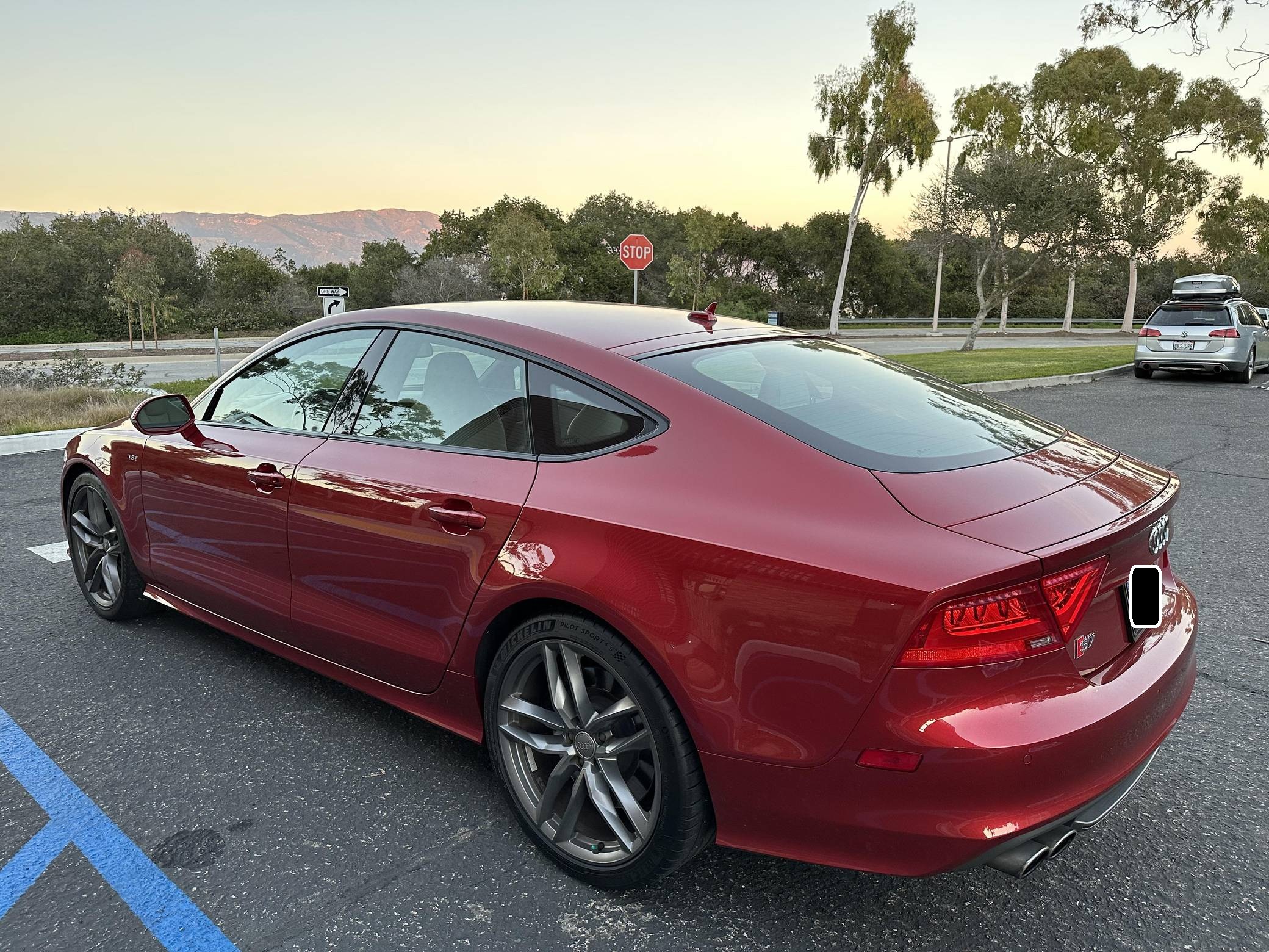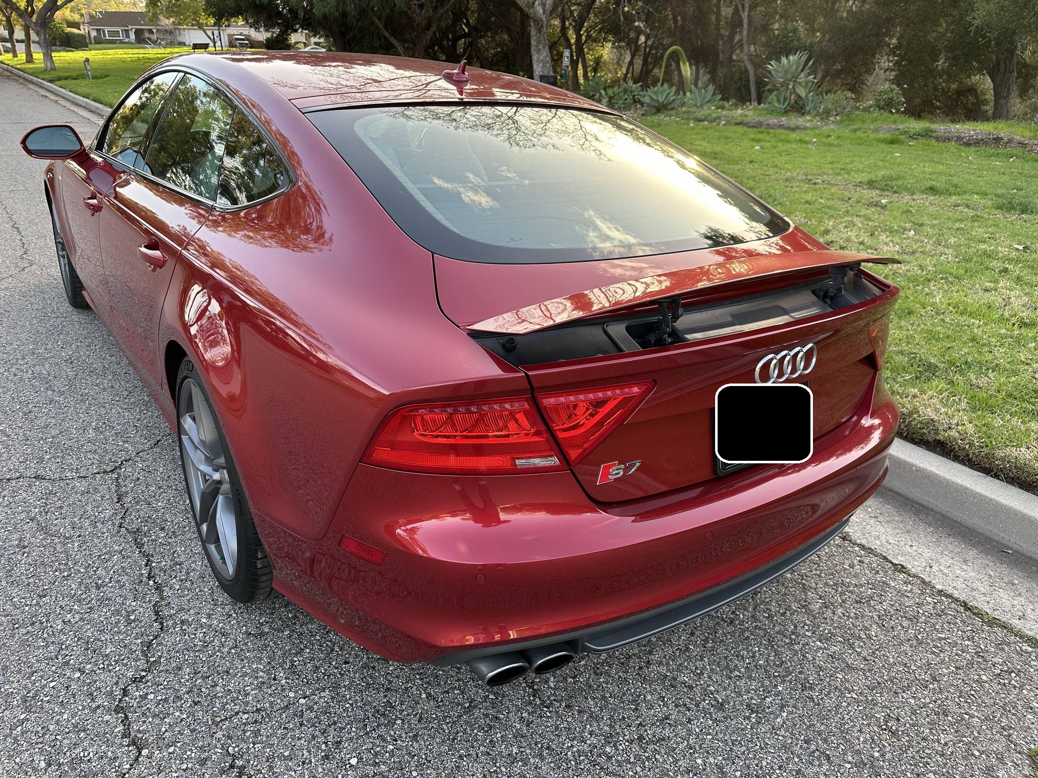 THIS. . . is a 2015 Audi S7, finished in Garnet Red Pearl Effect with a black and Lunar Silver interior. This Audi's odometer currently displays about 33,900 miles. The seller reports no modifications. Audi launched the first-generation A7 for the 2012 model year as its style icon, and it expanded the range with the V8-powered S7 for 2013. Both were related to the A6 under the sheet metal, but they stood out with a gorgeous design and surprising practicality thanks to a large hatch. Power comes from a 4. 0-liter twin-turbocharged V8 engine, rated at 420 horsepower and 406 lb-ft of torque. Output is sent to all four wheels via a 7-speed automatic transmission and Audi's Quattro all-wheel drive system.
