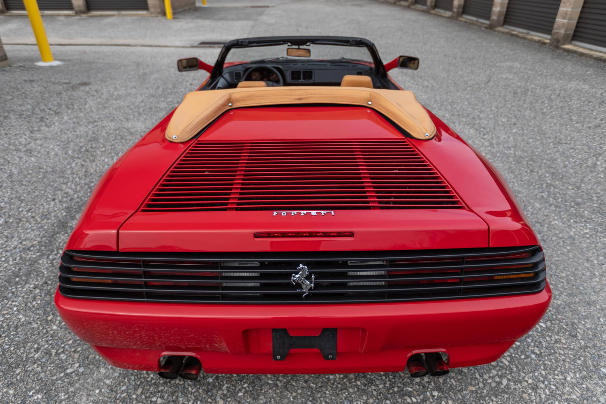 THIS. . . is a 1994 Ferrari 348 Spider, finished in Rosso Corsa with a black soft top and a beige interior. Factory equipment includes pop-up headlights, fog lights, Connolly leather upholstery, power-operated windows, mirrors, and locks, among others listed below. Modifications reported by the seller include 18-inch wheels from a Ferrari 360, a Larini Systems exhaust system, and Scuderia fender shields. The Ferrari 348 was built between 1989 and 1995 as the successor to Ferrari's long-running rear-mid-engine line. Major updates over the 328 that preceded it included updated exterior styling, a longitudinally-mounted engine design, and a more powerful "Tipo F119" V8. Power comes from a 3. 4-liter V8 engine, rated at 312 horsepower and 228 lb-ft of torque. Mid-mounted, it spins the rear wheels via a gated 5-speed manual transmission.