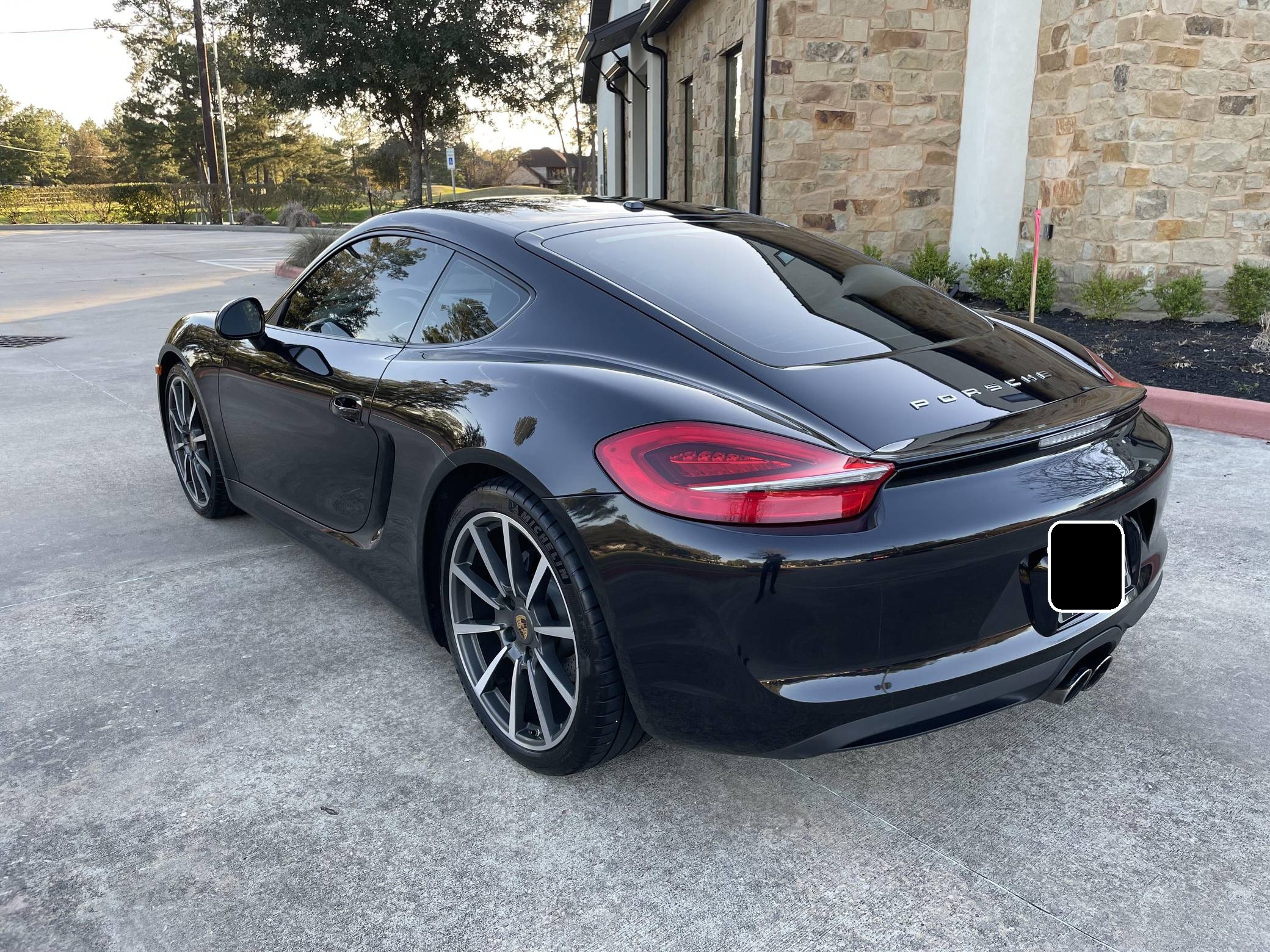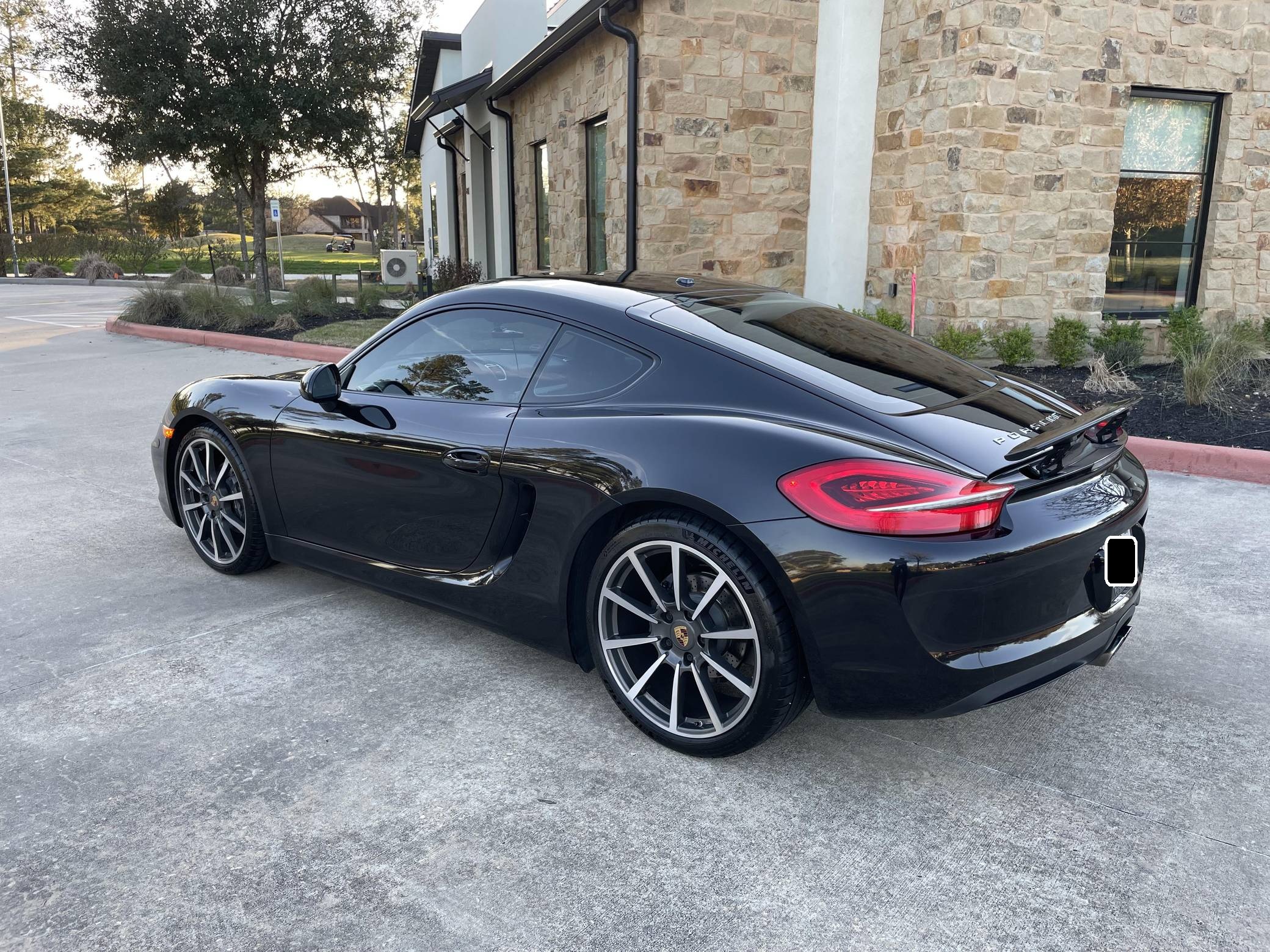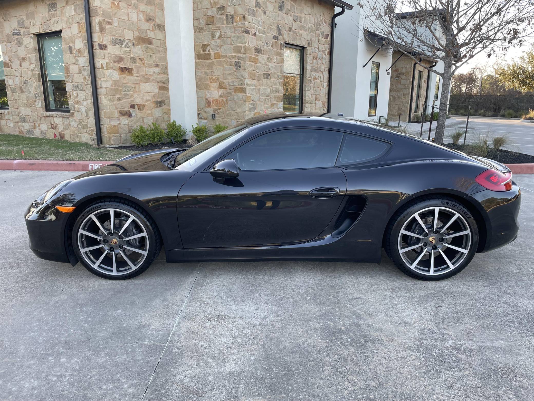 THIS… is a 2014 Porsche Cayman, finished in Basalt Black Metallic with a black interior. The odometer on this Cayman currently displays approximately 37,500 miles. According to the build sheet provided in the gallery, this Cayman carried an MSRP of $72,635 when new, including $19,085 in options. Factory equipment includes the Infotainment and Premium packages, 20-inch Carrera Classic wheels, Porsche Dynamic Light System (PDLS), sport tailpipes, leather upholstery, a SportDesign steering wheel, and Power Steering Plus. The seller reports modifications are limited to window tint and paint protection film on the mirror housings. Produced from 2012 to 2016, the second-generation "981" Cayman was the coupe alternative to the third-generation Boxster. The 981 was lauded as one of the best-handling sports cars available in its day, largely due to its mid-engine configuration. It was more rigid and lighter than the outgoing 987 Cayman, and it featured a new body, redesigned interior, a wider front track, and a longer wheelbase. Power comes from a 2. 7-liter flat-6, rated at 275 horsepower and 213 lb-ft of torque. Output is sent to the rear wheels via a 7-speed PDK automatic transmission.