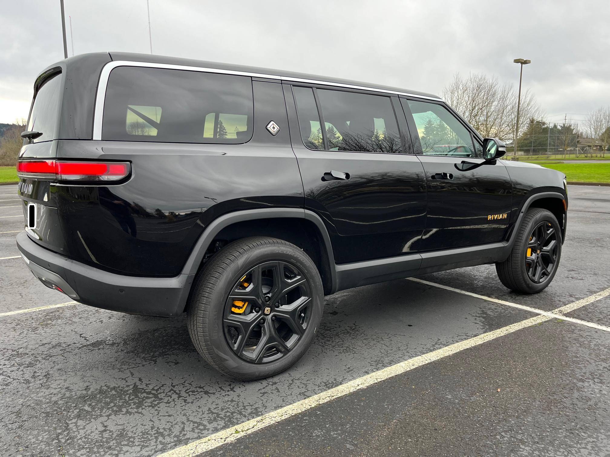 THIS. . . is a 2022 Rivian R1S Launch Edition, finished in Midnight with a Black Mountain interior. Factory equipment includes 22-inch "Sport Dark" wheels, an air suspension system, heated, ventilated, and power-adjustable front seats, heated second-row seats, folding third-row seats, dark ash wood interior trim, an air compressor integrated into the trunk, and a Rivian Elevation by Meridian sound system. The R1S entered production in 2022 as Rivian's second model. Closely related to the R1T pickup, it's an electric SUV with up to seven seats that was developed with the outdoors in mind. It's spacious, and it features a long list of comfort and technology features as well as through-the-road all-wheel drive. Power comes from four electric motors, which draw electricity from a 135-kilowatt-hour lithium-ion battery pack to zap the four wheels with 835 horsepower and 908 lb-ft of torque. The R1S earned a maximum driving range rating of 316 miles from the EPA.