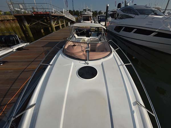 Sunseeker Hawk 31. She is probably one of the best examples of how flexible a Sunseeker can be. She is a lively performer, making her an exciting ski boat but cruising at 23 knots, she has a cruising range of 200 nautical miles, making her a perfect weekender too! This particular example is well-presented and has benefited from an extensive engine and outdrive overhaul, along with recent antifouling. The cleverly designed seating around the dining table in the saloon below converts into a comfortable double berth. Hanging wardrobe, reading lights, opening portholes, and a deck hatch. Galley with a cold pressurized water system, 2-ring hob, stainless steel sink, refrigerator, and cupboards. Heads compartment with manual sea toilet, freshwater, washbasin, mirror, toothbrush and glass holder, towel ring, overhead lights, and opening porthole with mosquito screen. In the cockpit, the headrests on the double aft sun-loungers are reversible, forming two comfortable seats around the folding dining table. There is a wet bar, swimming ladder, and aft shower, so for seeking the sun, she is just about perfect!