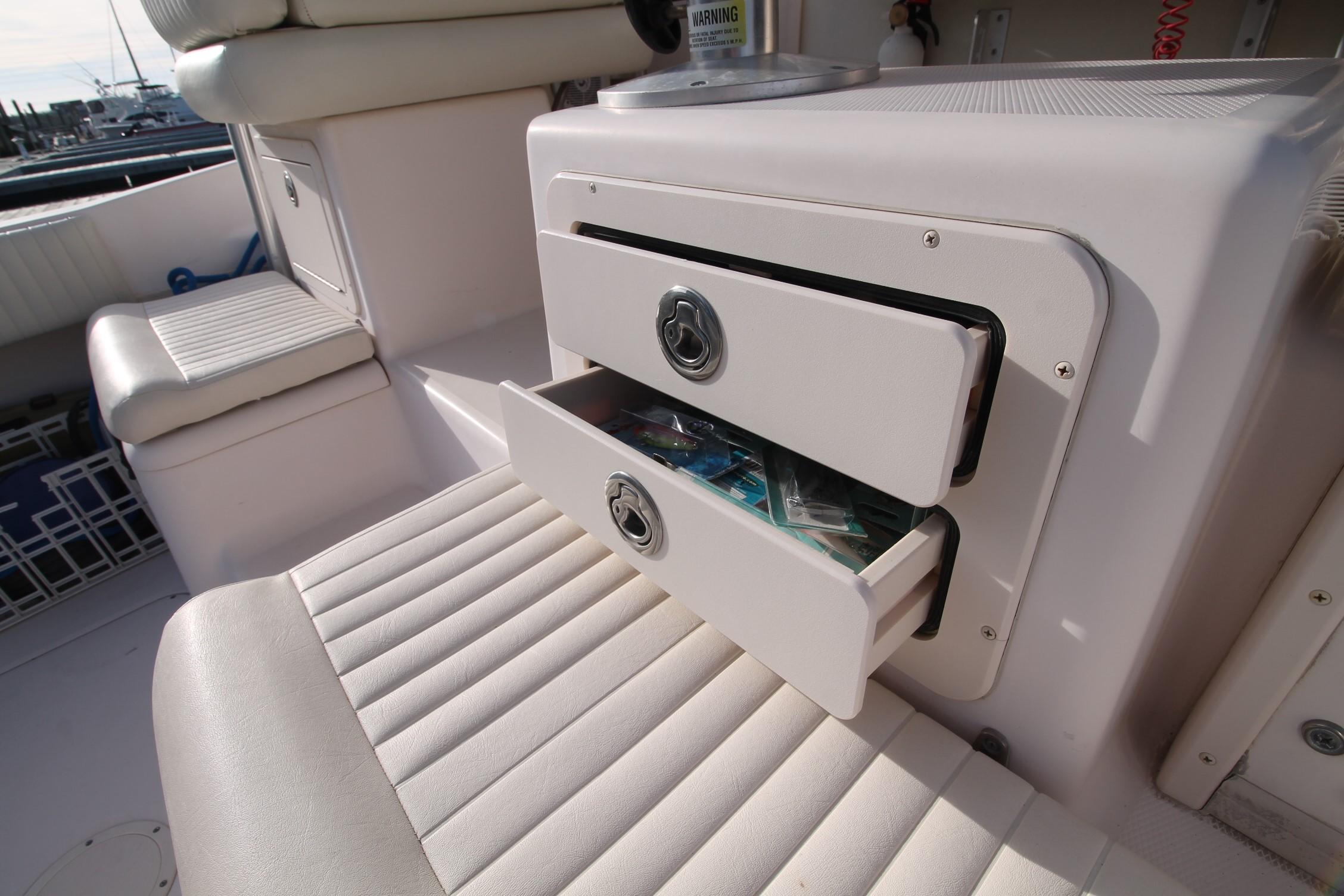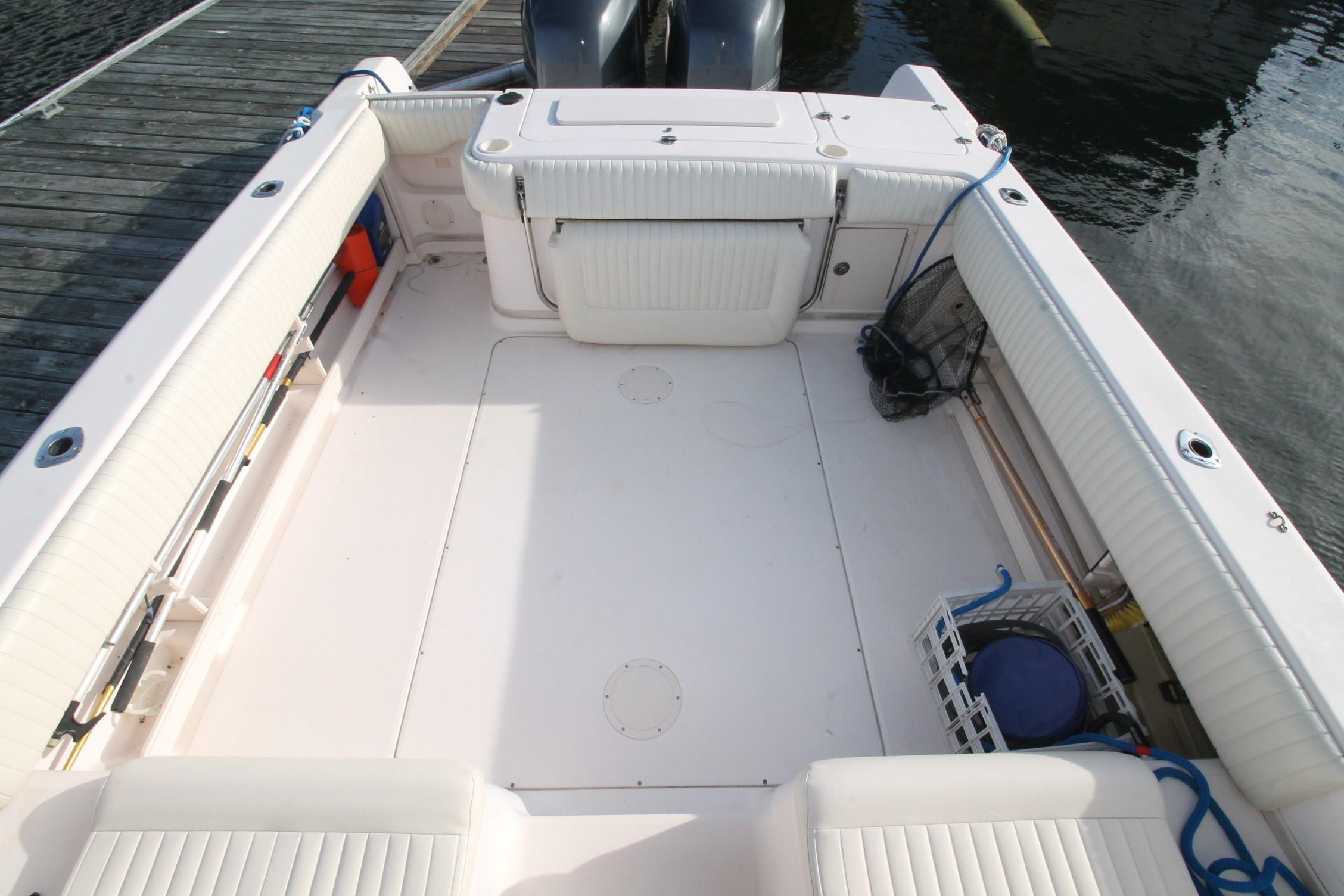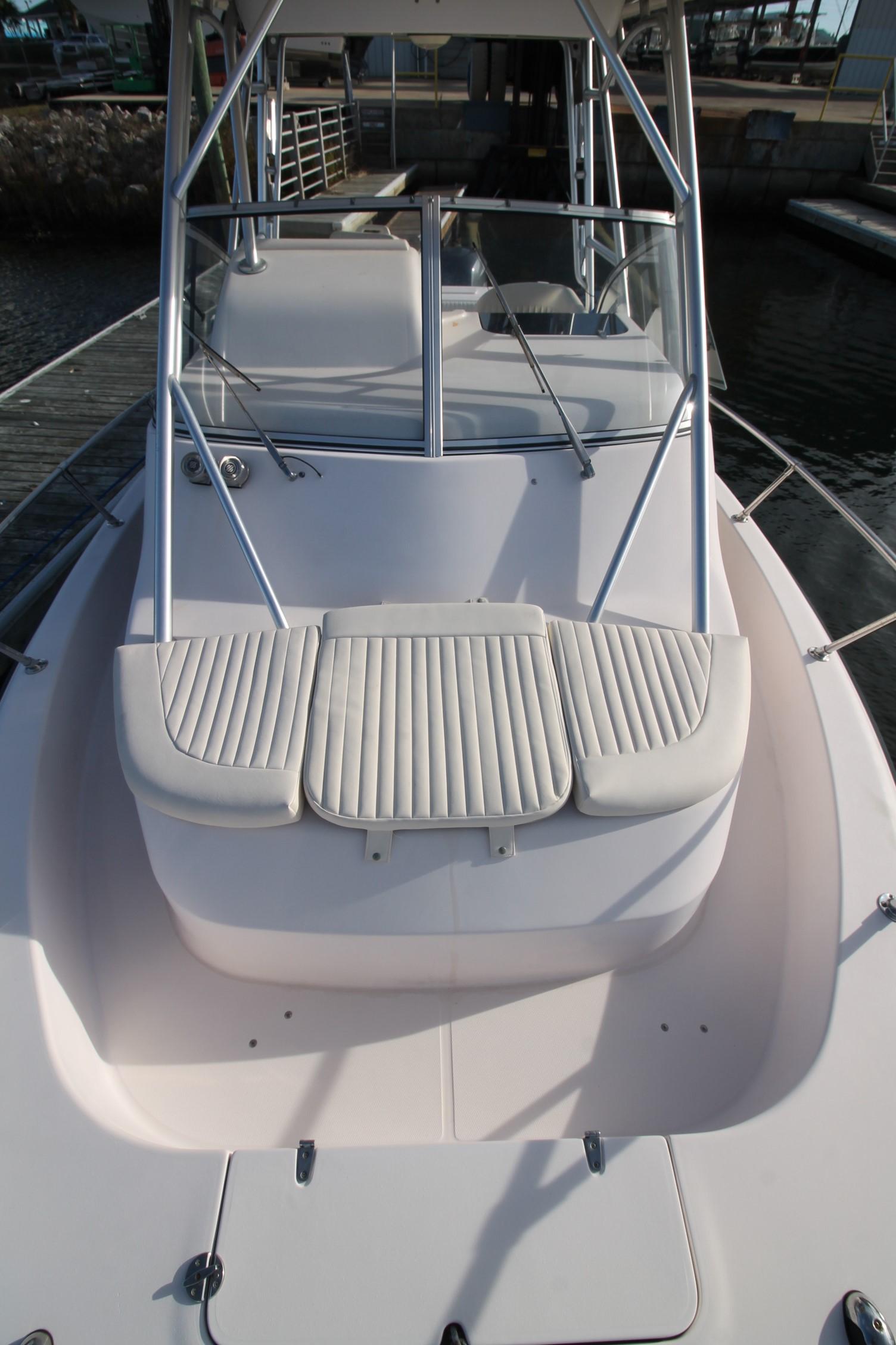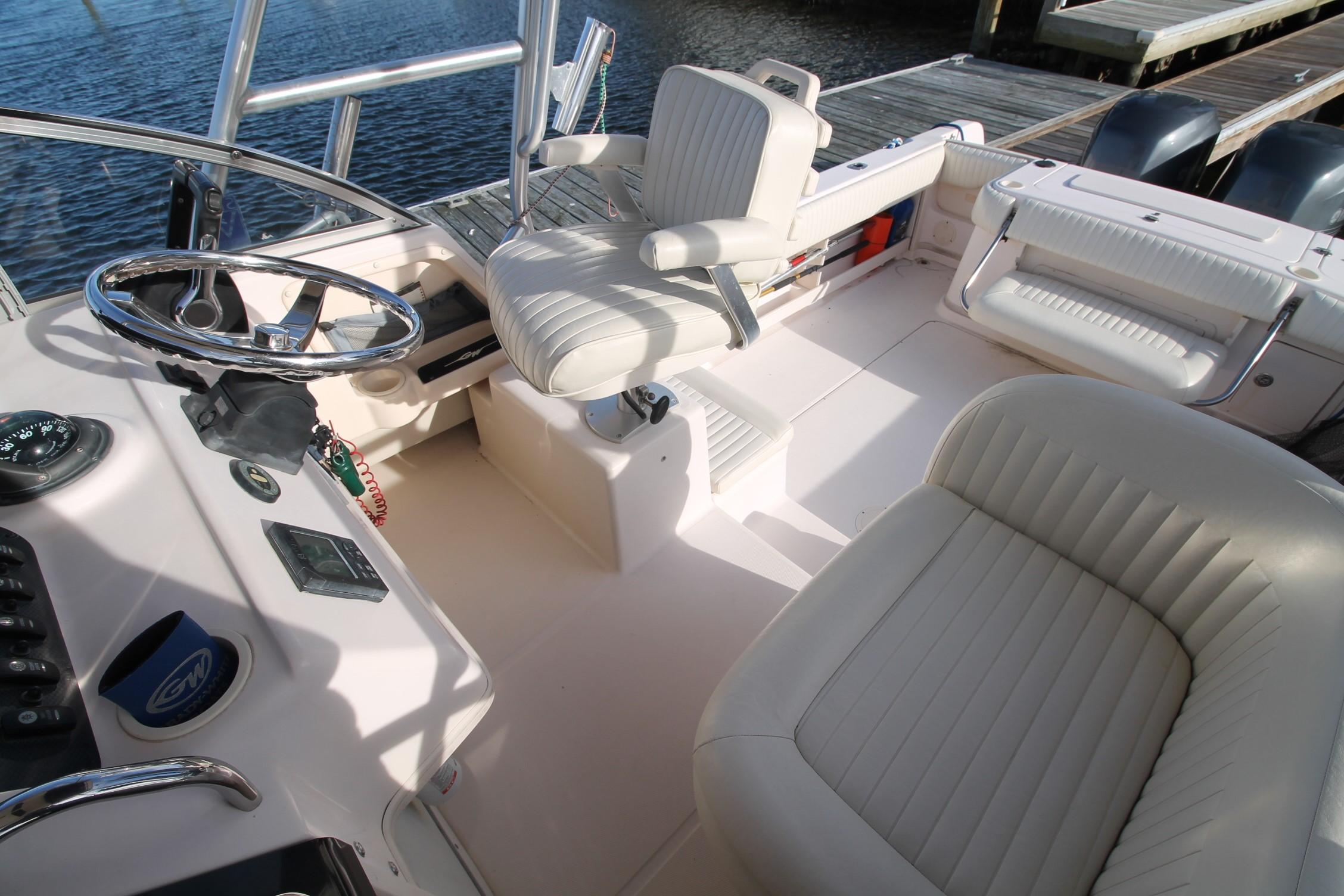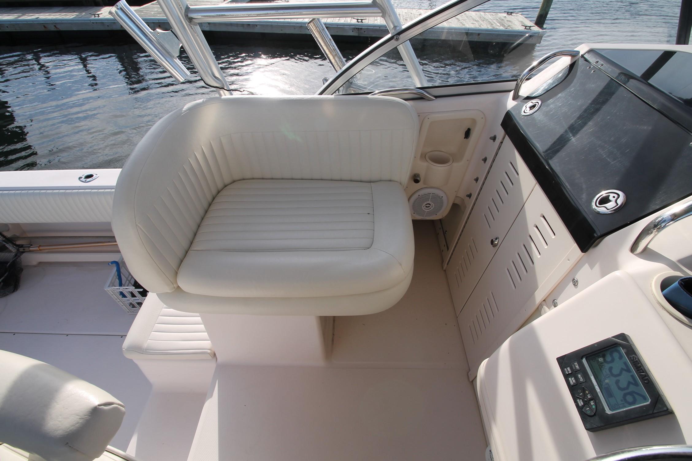 This Grady-White 282 Sailfish is in excellent condition. This boat is super clean and it shows that it has been very well taken care of. The original deck upholstery is in very good shape, the boat was kept out of the sun for most of the time. The cabin upholstery is also in excellent shape too. The floor is solid all around. At the bow, there are a couple of scratches from loading and offloading the boat from the trailer. Just recently waxed and engines serviced. This boat is loaded with electronics and is rigged for hardcore fishing or coastal cruising. Garmin GPS, radar, trim tabs, VHF, compass, windlass, outriggers, and marine head. Other Options on the boat include Hard Top and Rod Holders, Companion Beach Seat, Fresh Water, Raw Water, Livewell, Tilt Hyd. Steering, Underwater Lights, Shore Power Package, Microwave, Refrigerator, electric stovetop, and radio. This is a turn-key ready to go boat!