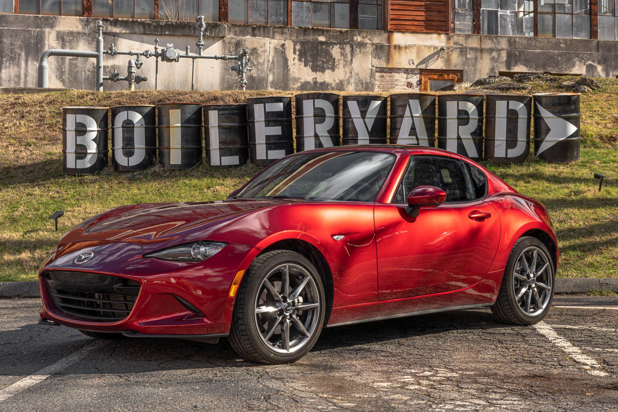 THIS. . . is a 2021 Mazda MX-5 Miata RF Grand Touring, finished in Soul Red Crystal Metallic with a black interior. This MX-5 is equipped with the desirable 6-speed manual transmission and the odometer indicates approximately 4,800 miles. Factory equipment includes 17-inch alloy wheels, a limited-slip differential, sport-tuned suspension with Bilstein shocks, an aluminum hood and trunk lid, a front strut brace, a power retractable hardtop, heated sport seats, a Bose 9-speaker audio system, a navigation system, blind spot monitoring and cross-traffic alert, and a rear-view camera. No modifications have been reported by the seller. The "ND" Miata debuted for the 2016 model year, and it strikes a balance as a modern, nicely-appointed roadster that still maintains the intended nature of a Miata as a fun, uncomplicated, lightweight sports car at an accessible price. The "ND2" model debuted for the 2019 model year and included revisions to the engine with more power and a higher redline, a telescoping steering column, revised seat controls, a new cupholder, a rear-view camera, and a redesigned door handle mechanism. Power comes from a 2. 0-liter inline-4, which produces 181 horsepower and 151 lb-ft of torque. Output is sent to the rear wheels via a 6-speed manual transmission.