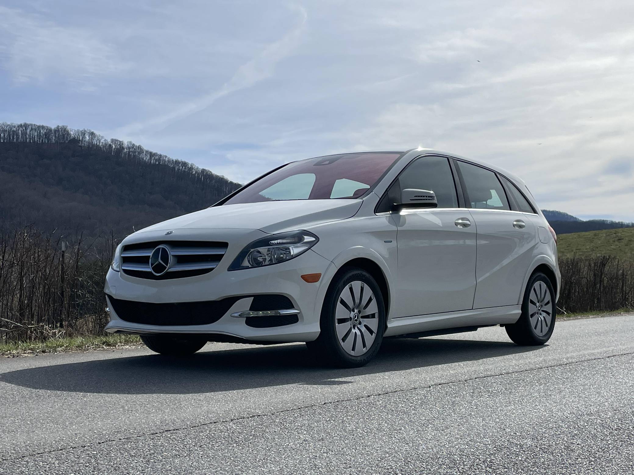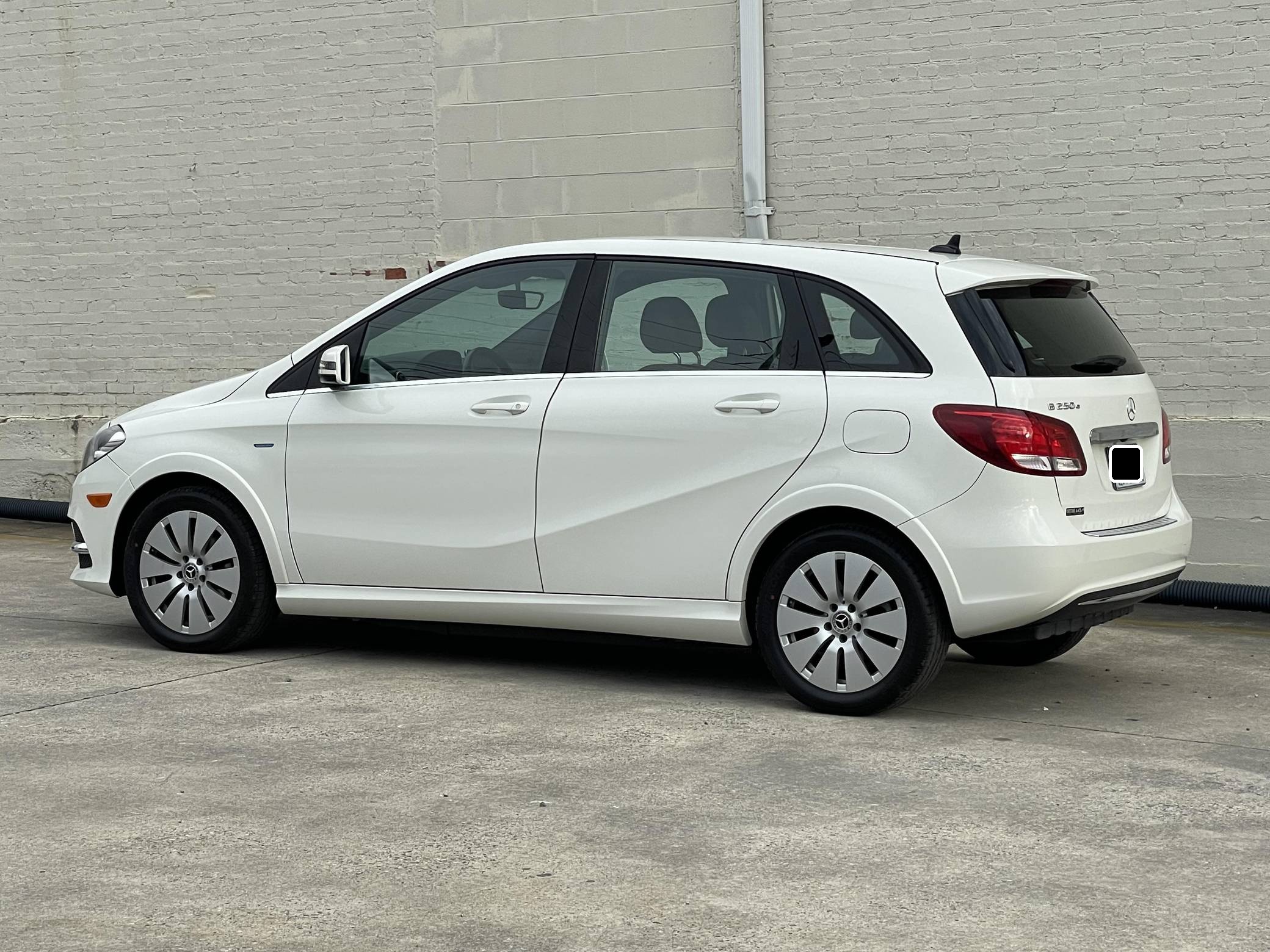 THIS. . . is a 2017 Mercedes-Benz B250e, finished in Calcite White with a black interior. The odometer currently displays approximately 21,100 miles. According to the build sheet provided in the gallery, factory equipment includes the Range Plus Package, 17-inch wheels, imitation leather upholstery, power-adjustable front seats with memory, dual-zone automatic climate control, a CD player, a rearview camera, and blind-spot monitoring. The seller reports no modifications. It was Mercedes-Benz's first volume-production electric car, and it used an electric powertrain co-developed with Tesla. The B250e offered great practicality, good performance, and the comfort of a Mercedes-Benz. Production for the U. S. market was canceled after the 2017 model year. Power comes from a single electric motor that draws electricity from a 28-kilowatt-hour lithium-ion battery to zap the front wheels with 177 horsepower and 251 lb-ft of torque. The EPA gave the B250e a maximum driving range of 87 miles in 2017.