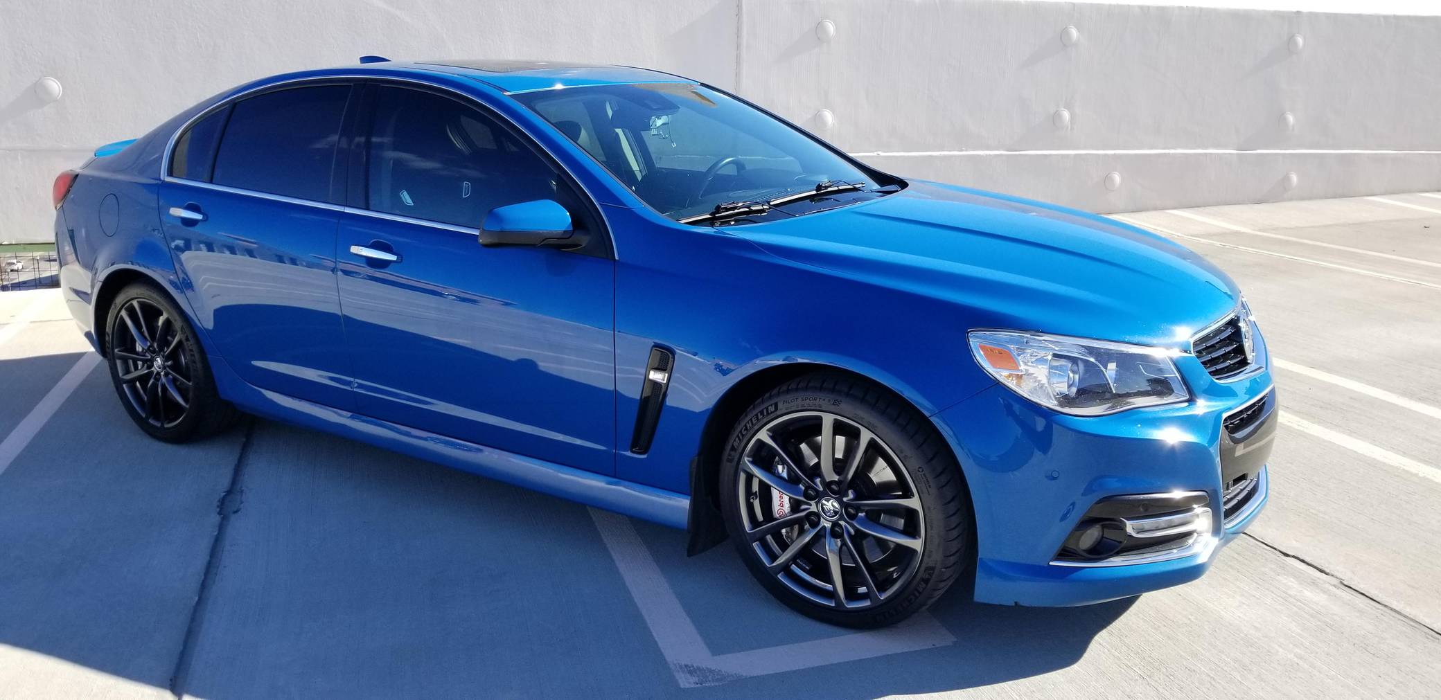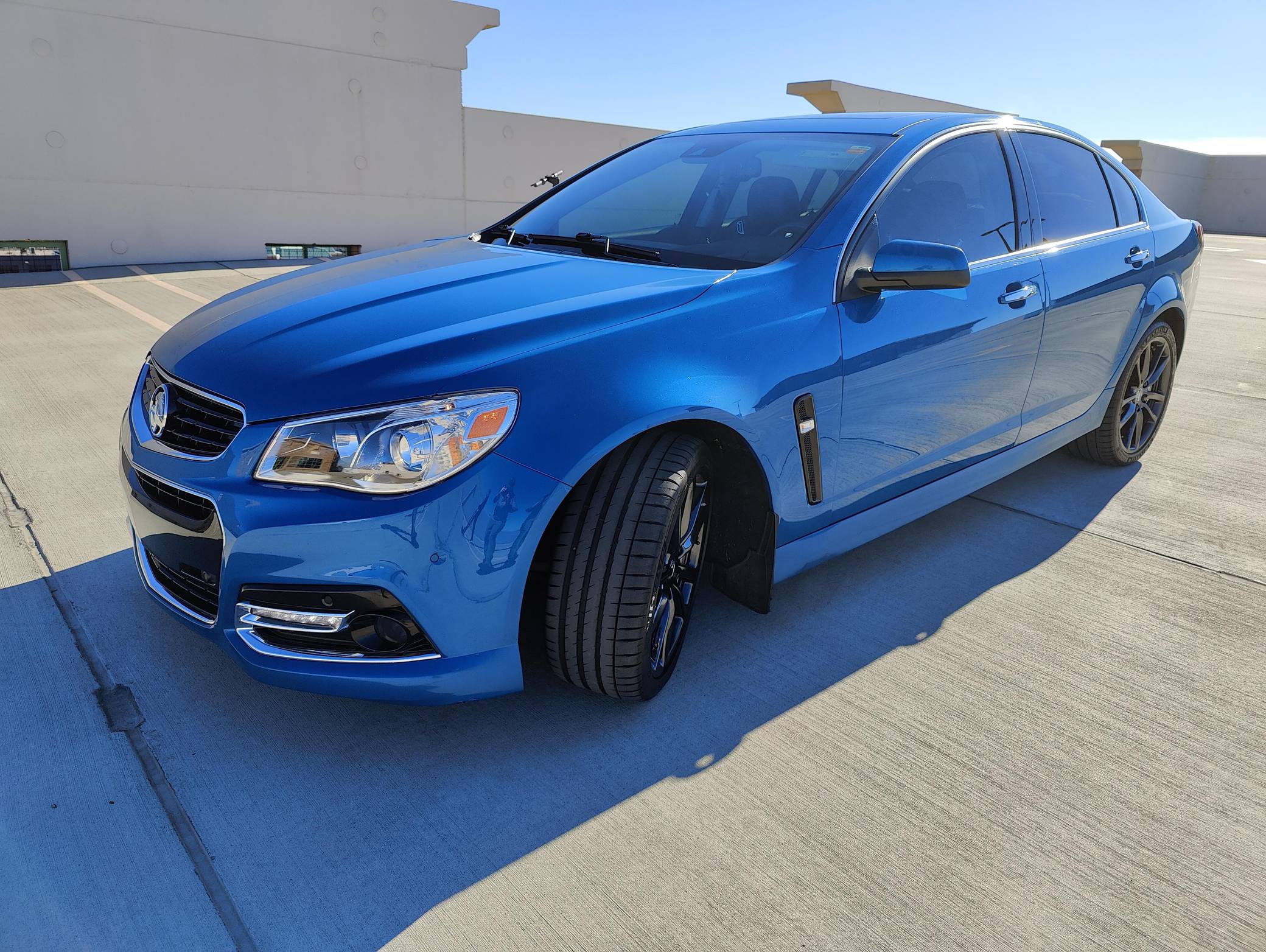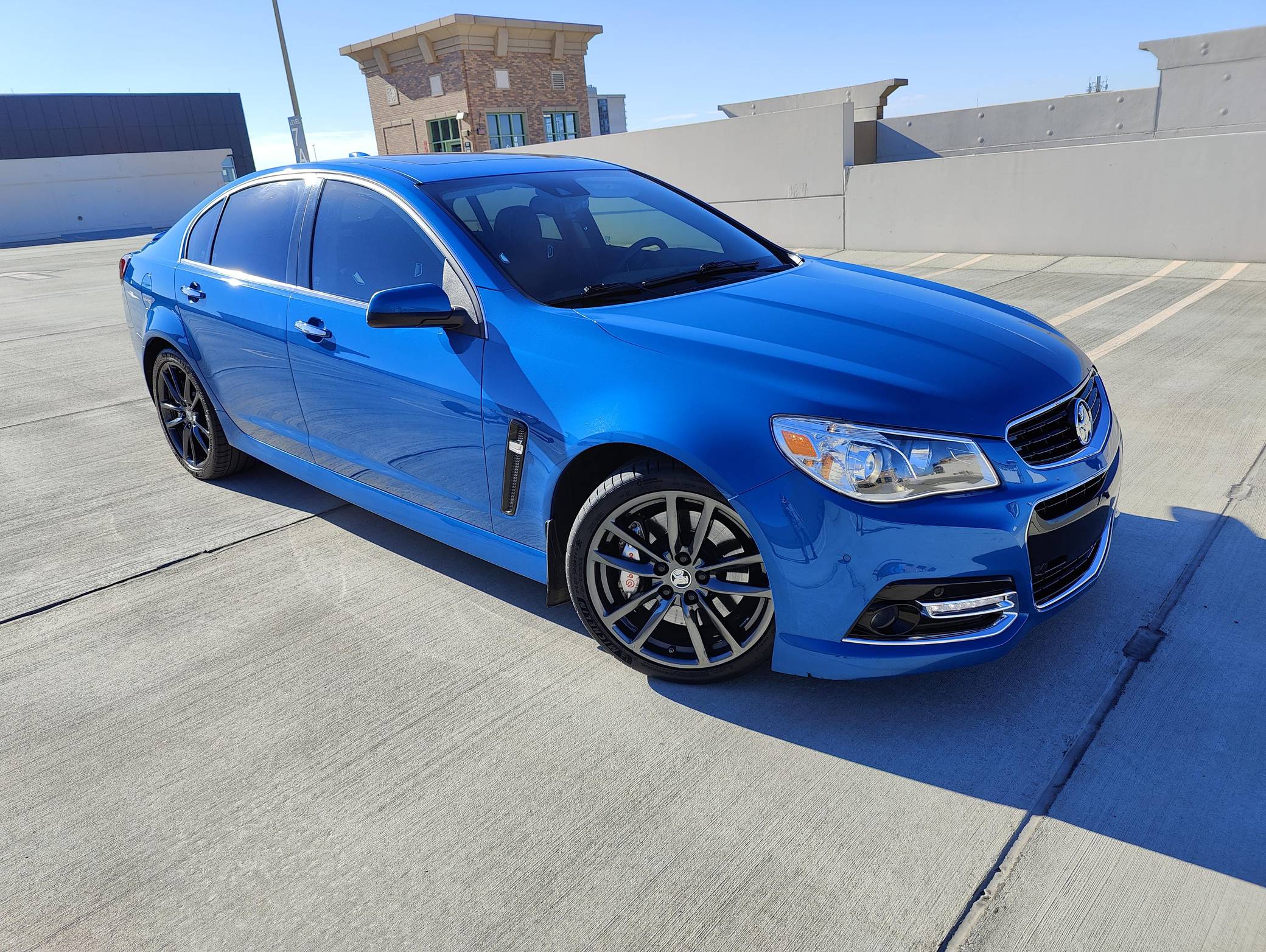 THIS. . . is a 2015 Chevrolet SS, finished in Perfect Blue Metallic with a Jet Black interior. This SS features a desirable 6-speed manual transmission. A partial list of notable equipment includes 19-inch wheels, a limited-slip differential, Magnetic Ride Control, Brembo brakes, HID headlights, a rear spoiler, parking sensors, a power sunroof, leather upholstery, heated and ventilated front seats, dual-zone automatic climate control, remote start, a head-up display, a MyLink infotainment system with navigation capabilities, and a Bose audio system. Modifications to this SS include Kooks headers, downpipes, and catalytic converters, Varex mufflers, a RotoFab intake, a Livernois ECU tune, PVD-coated wheels, and tinted windows. Chevrolet enlisted the help of Australian sister company Holden to release the SS for the 2014 model year. Closely related to the Commodore, the SS picked up where the Impala SS left off in 1996 with a naturally-aspirated V8, a rear-wheel-drive architecture, and a spacious interior. It was marketed as a subtle four-door muscle car that put a decidedly American spin on the concept of a sport sedan. Power comes from an "LS3" 6. 2-liter V8 engine, rated at 415 horsepower and 415 lb-ft of torque. Due to the modifications performed to this SS, it may produce more power, but a dyno sheet was not provided to confirm. Output is sent to the rear wheels via a 6-speed manual transmission.