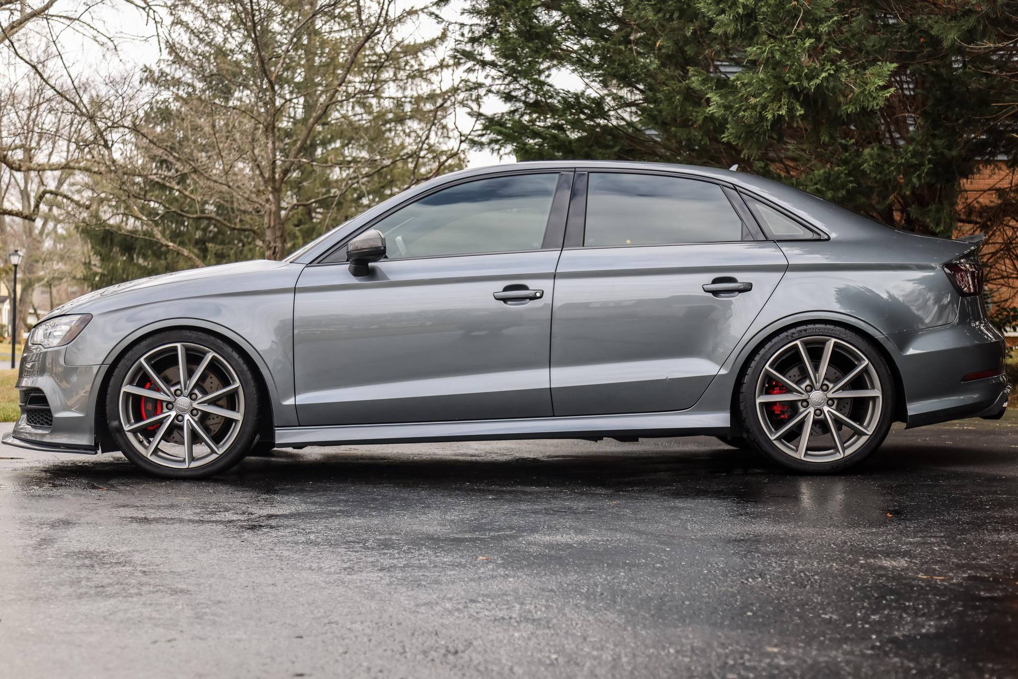 THIS. . . is a 2016 Audi S3, finished in Monsoon Gray Metallic with a black interior. According to the build sheet provided in the gallery, factory equipment includes the Technology and Black Optic Performance packages, a power sunroof, leather upholstery, power-adjustable and heated front seats, dual-zone automatic climate control, Audi side assist, and a Bang & Olufsen sound system. Modifications reported by the seller include an APR exhaust system, an Integrated Engineering carbon fiber intake system, a carbon fiber front lip splitter, a carbon fiber rear diffuser, and an aftermarket carbon fiber and Alcantara steering wheel. Audi positioned the first-generation A3 Sedan at the bottom of its American range for the 2015 model year, and it simultaneously released the S3 as a sportier alternative. Built on the versatile MQB platform, both models offered the luxury, sharp styling, and performance that Audi is known for in a package that was smaller and more affordable than the A4. Power comes from a 2. 0-liter turbocharged 4-cylinder engine, rated at 292 horsepower and 280 lb-ft of torque in stock form. Due to the modifications performed to this S3, it may produce more power, but a dyno sheet was not provided to confirm. Output is sent to all four wheels via a 6-speed dual-clutch automatic transmission and Audi's Quattro permanent all-wheel-drive system.