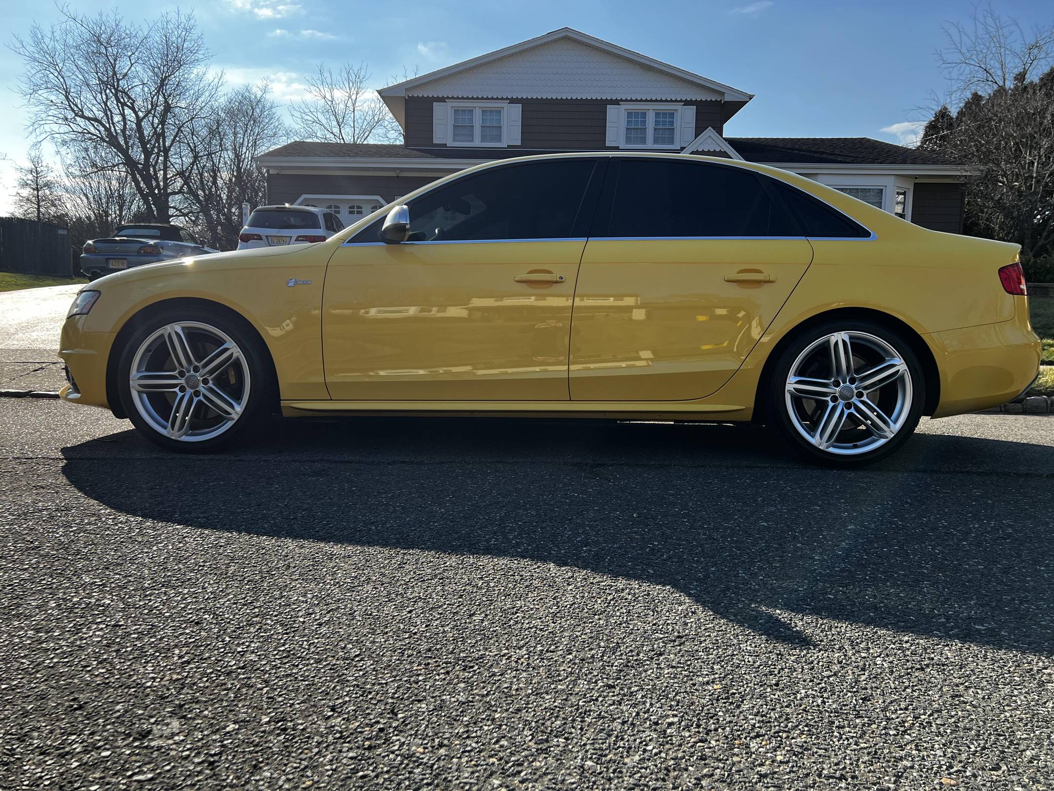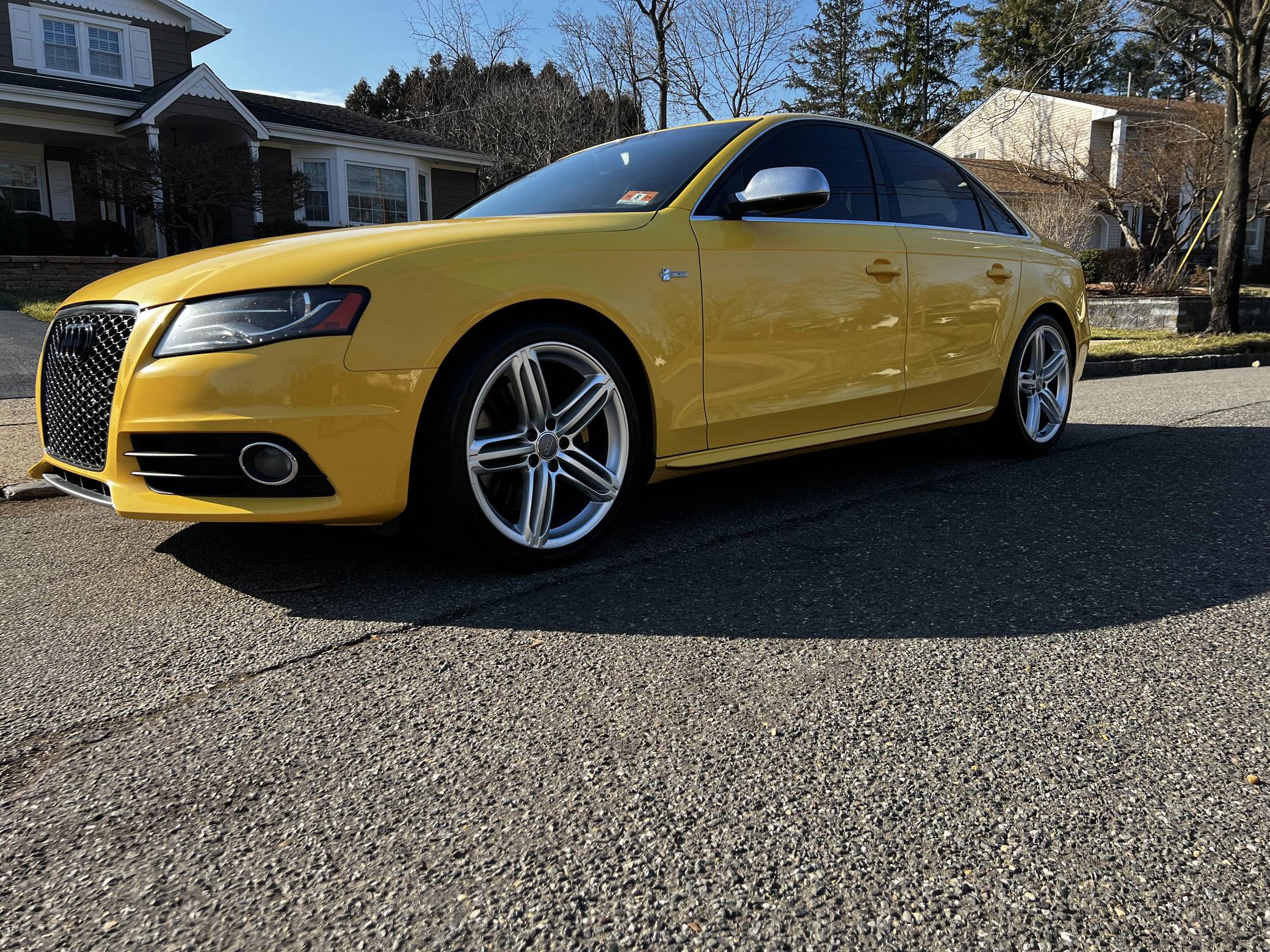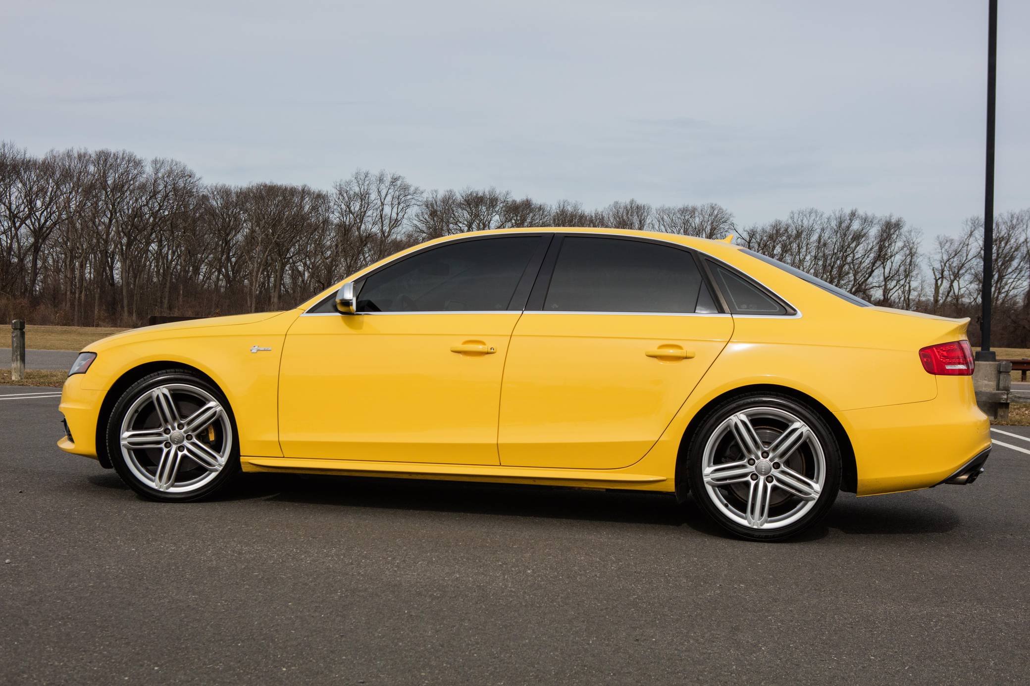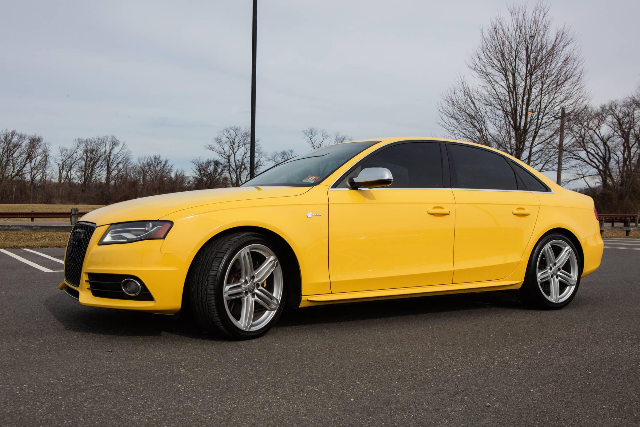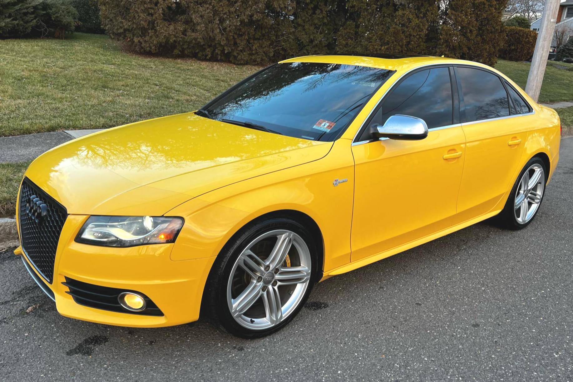THIS… is a 2010 Audi S4, finished in Imola Yellow with a black interior. This S4 features the desirable 6-speed manual transmission. It also confirms that this is a 2-owner car. According to the build sheet provided in the gallery, factory equipment includes the Light Package, 19-inch wheels, sport suspension, leather and Alcantara upholstery, power-adjustable, heated front sport seats, a 3-zone automatic climate control, and more as listed below. Modifications reported by the seller include an APR cold air intake, a Stasis ECU flash tune, an RS4 front grille front door projector lights, paint protective film on the front end, and tinted windows. Called "B8" internally, the fourth-generation Audi A4 arrived for 2009, and the quicker S4 made its debut for 2010. While it surfed the downsizing wave by swapping its predecessor's V8 for a V6, it offered enthusiasts more torque and quicker acceleration. Engineers gave the Quattro system a rear bias for better handling, and the S4 reflected Audi's upmarket push by offering luxury and tech in spades. Power comes from a "TFSI" 3. 0-liter supercharged V6, rated at 333 horsepower and 325 lb-ft of torque in stock form. Due to the modifications performed to this S4, it may produce more power, but a dyno sheet was not provided to confirm. Output is sent to all four wheels via a 6-speed manual transmission and Audi's Quattro permanent all-wheel drive system.