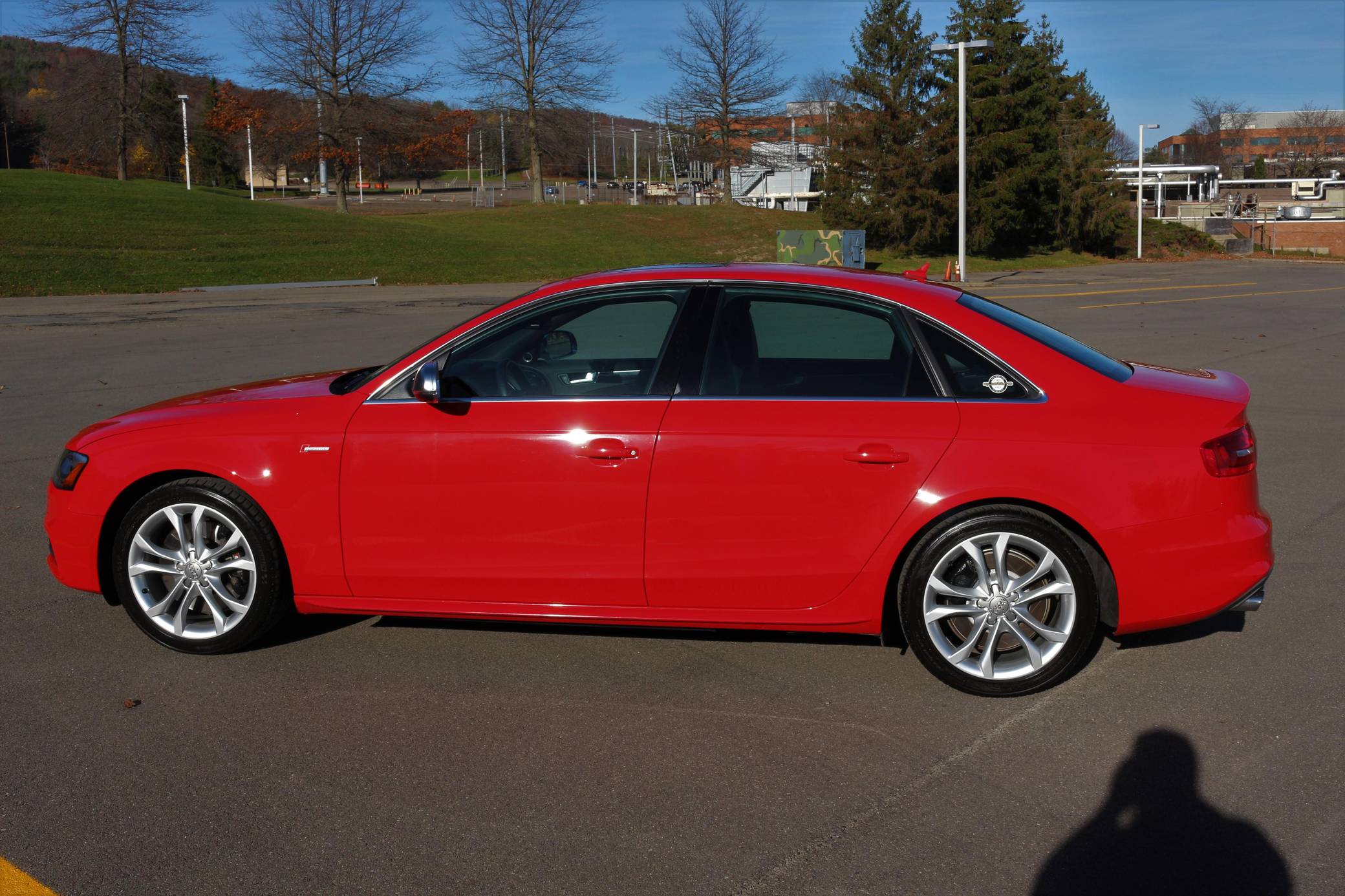THIS… is a 2015 Audi S4, finished in Misano Red Pearl Effect with a black interior. Modifications reported by the seller are limited to paint protection film on the headlights, front bumper, front edge of hood, fender tips, and mirror caps, an aFe POWER Magnum FLOW Pro Dry air filter, ECS Tuning slotted and coated brake rotors, Hawk Performance HPS 5. 0 rear brake pads, Sylvania SilverStar Ultra upgraded fog light bulbs, and LED interior lights. Called "B8" internally, the fourth-generation Audi A4 arrived for 2009, and the quicker S4 made its debut for 2010. While it surfed the downsizing wave by swapping its predecessor's V8 for a V6, it offered enthusiasts more torque and quicker acceleration. Engineers gave the Quattro system a rear bias for better handling, and the S4 reflected Audi's upmarket push by offering luxury and tech in spades. A mid-cycle update for 2013 brought a sharper-looking exterior design, among other changes. Power comes from a 3. 0-liter supercharged V6, rated at 333 horsepower and 325 lb-ft of torque. Output is sent to all four wheels via a 7-speed automatic transmission and Audi’s Quattro all-wheel drive system.