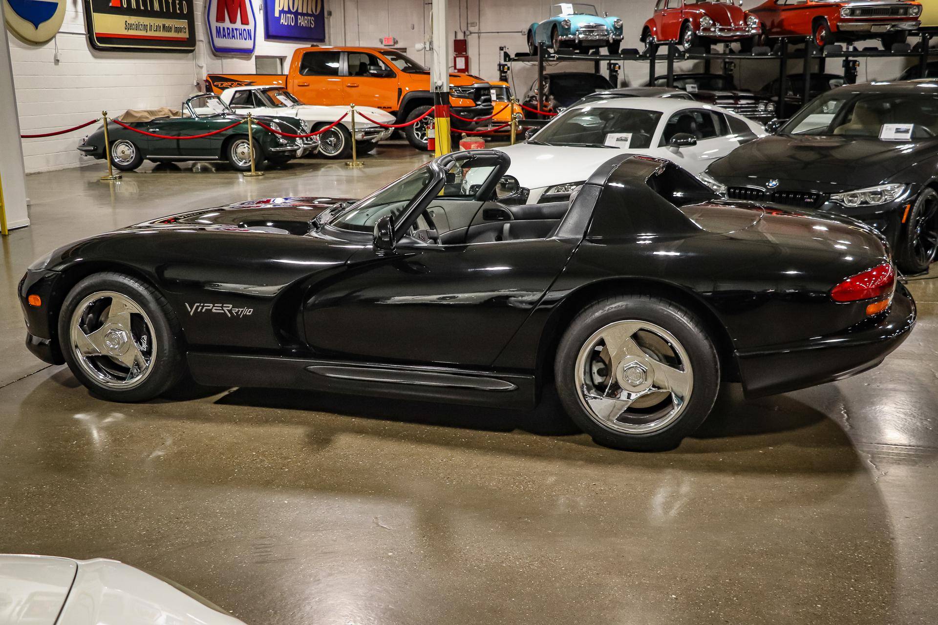 THIS. . . is a 1994 Dodge Viper RT/10, finished in Viper Black with a black and grey interior. Factory equipment includes a limited-slip differential, a removable fabric top and side windows, leather seats with manual adjustment, and an AM/FM/cassette stereo. Modifications to this Viper include 18-inch HRE wheels, aftermarket side skirts, and an aftermarket rear-exit exhaust system. The original Viper "SR I" burst onto the automotive scene in 1991 and was widely lauded as an all-out performance machine with no compromises and a monstrous V10 under its bulbous hood. It was in fact, designed as a race car for the street, and had no door handles, locks, or even a real roof or windows. Power comes from an 8. 0-liter V10 engine, rated at 400 horsepower and 465 lb-ft of torque. Output is sent to the rear wheels via a 6-speed manual transmission.
