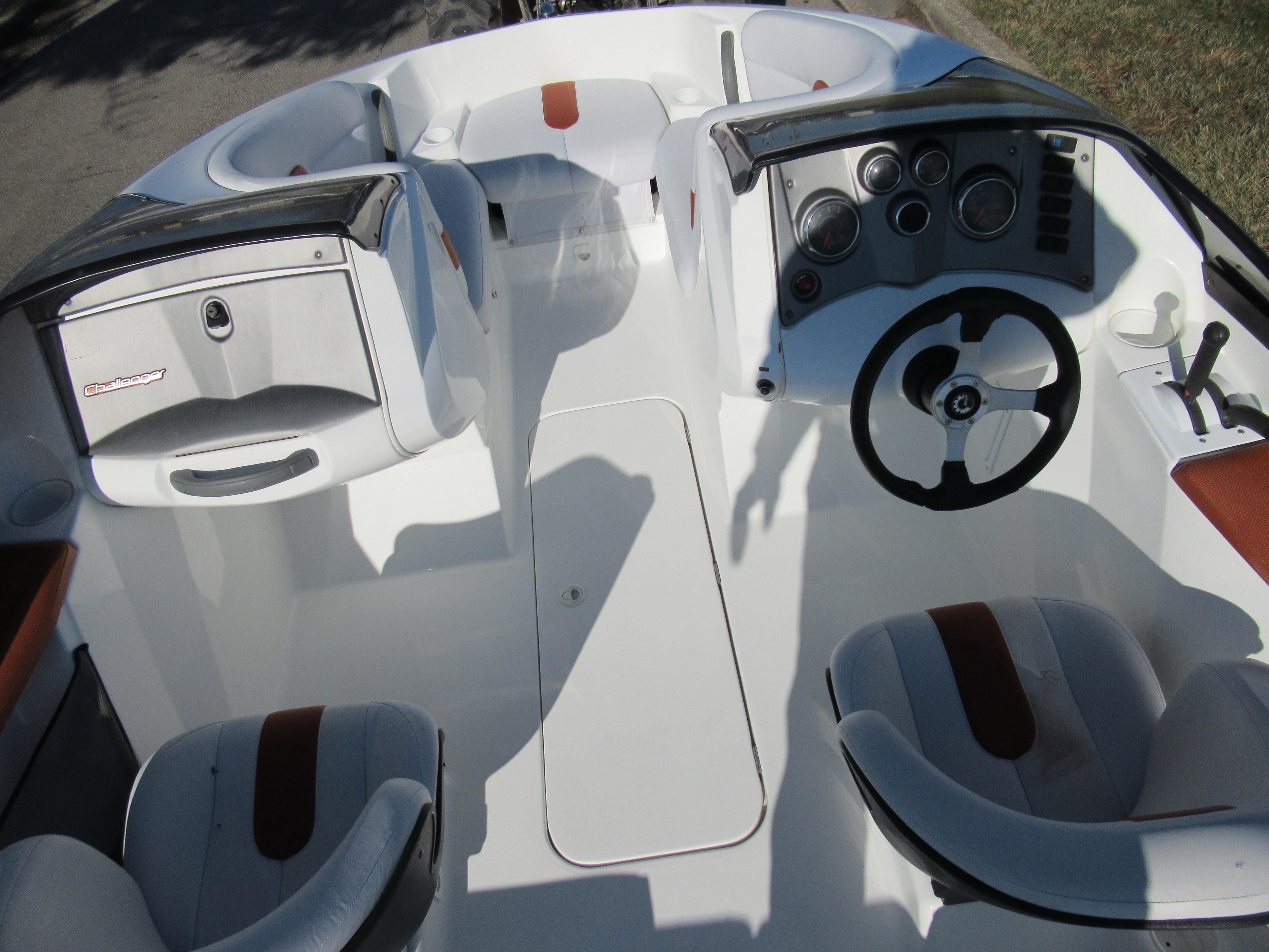 The Sea-Doo Challenger 180 was engineered to deliver the perfect balance between sports performance and recreation. This 18-footer has more onboard space than most 20-foot boats and comes with a supercharged 185 hp or an intercooler 215 hp supercharged engine option. With enough room to seat eight, plenty of storage space, and a sun pad.