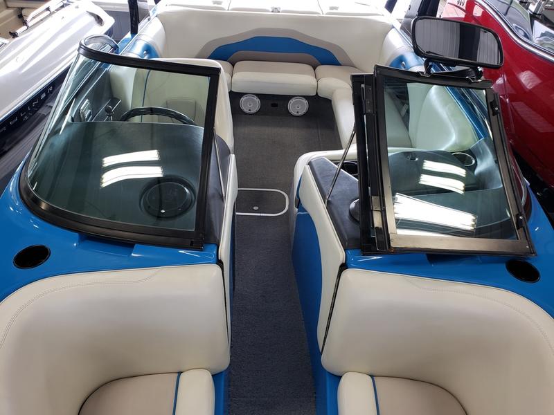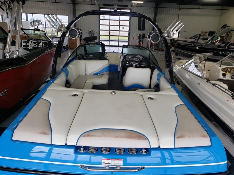 This awesome 2007 Malibu vRide is the perfect all-around boat. It has a beautiful blue and white exterior, white, grey, and blue interior, and grey carpet. It comes equipped with an Indmar 5.7L engine, massive storage space, two board racks, two can tower speakers, JL audio speakers throughout, Malibu sound system, massive sun pad, swim platform, tandem axle Malibu trailer with spare tire, and much, much more!