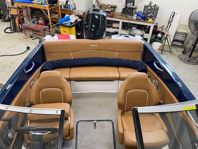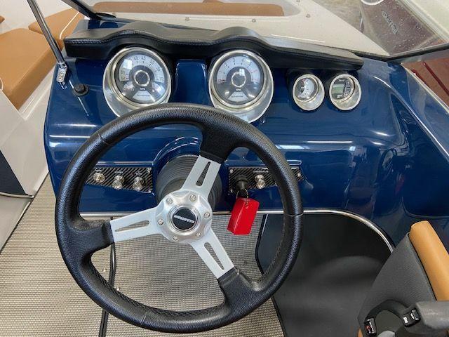 Very clean 1 owner Glastron Out Board with low hours. BIMINI TOP, BOW COVER, CERTIFIED DRIVE TRAIN WARRANTY, COCKPIT COVER, HYDRAULIC STEERING, STEREO.