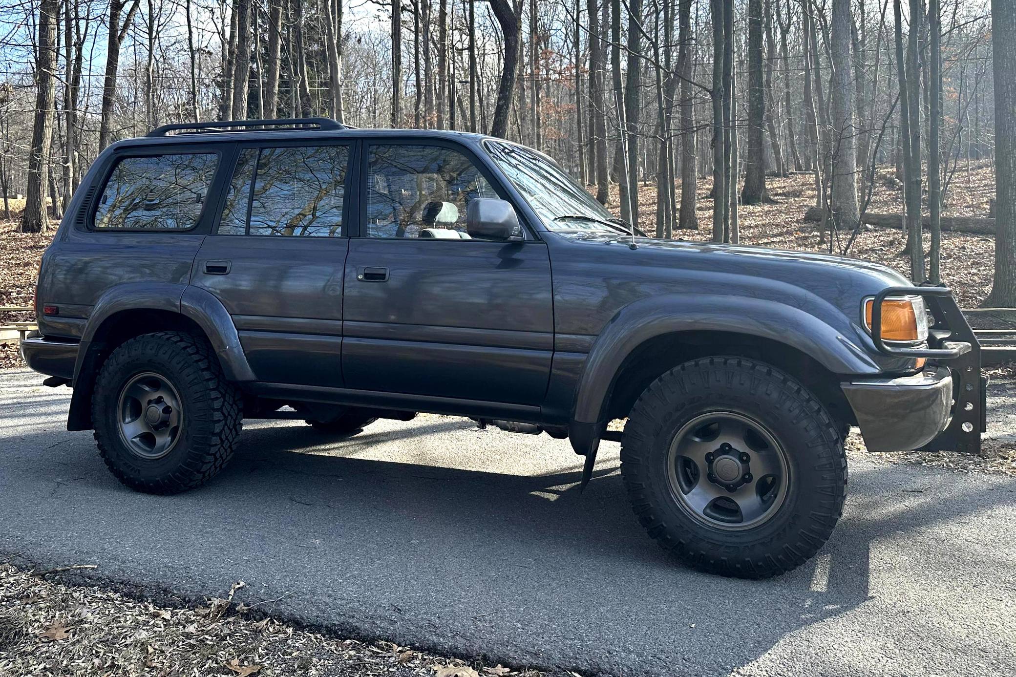 THIS. . . is a 1994 Toyota Land Cruiser, finished in Blue Slate Metallic with a Dark Charcoal interior. Equipment includes 16-inch wheels, a locking center differential, a roof rack, sunroof, cloth upholstery, third-row seats, power windows, locks, and mirrors, and more as detailed below. Modifications reported by the seller include a brush guard, painted OEM wheels, oversized Goodyear tires, and a Boss Audio head unit with aftermarket speakers. Released for 1991, the 80-Series is the first Land Cruiser to firmly plant its flag in the luxury segment. It was bigger than its predecessor, it gained a more aerodynamic design, and it offered better materials inside. It nonetheless kept what adventurers loved about the Land Cruiser: solid axles, a 2-speed transfer case, and a generous amount of ground clearance. Power comes from a 4. 5-liter straight-6, rated at 212 horsepower and 275 lb-ft of torque. Output is directed to all four wheels through a 4-speed automatic transmission.