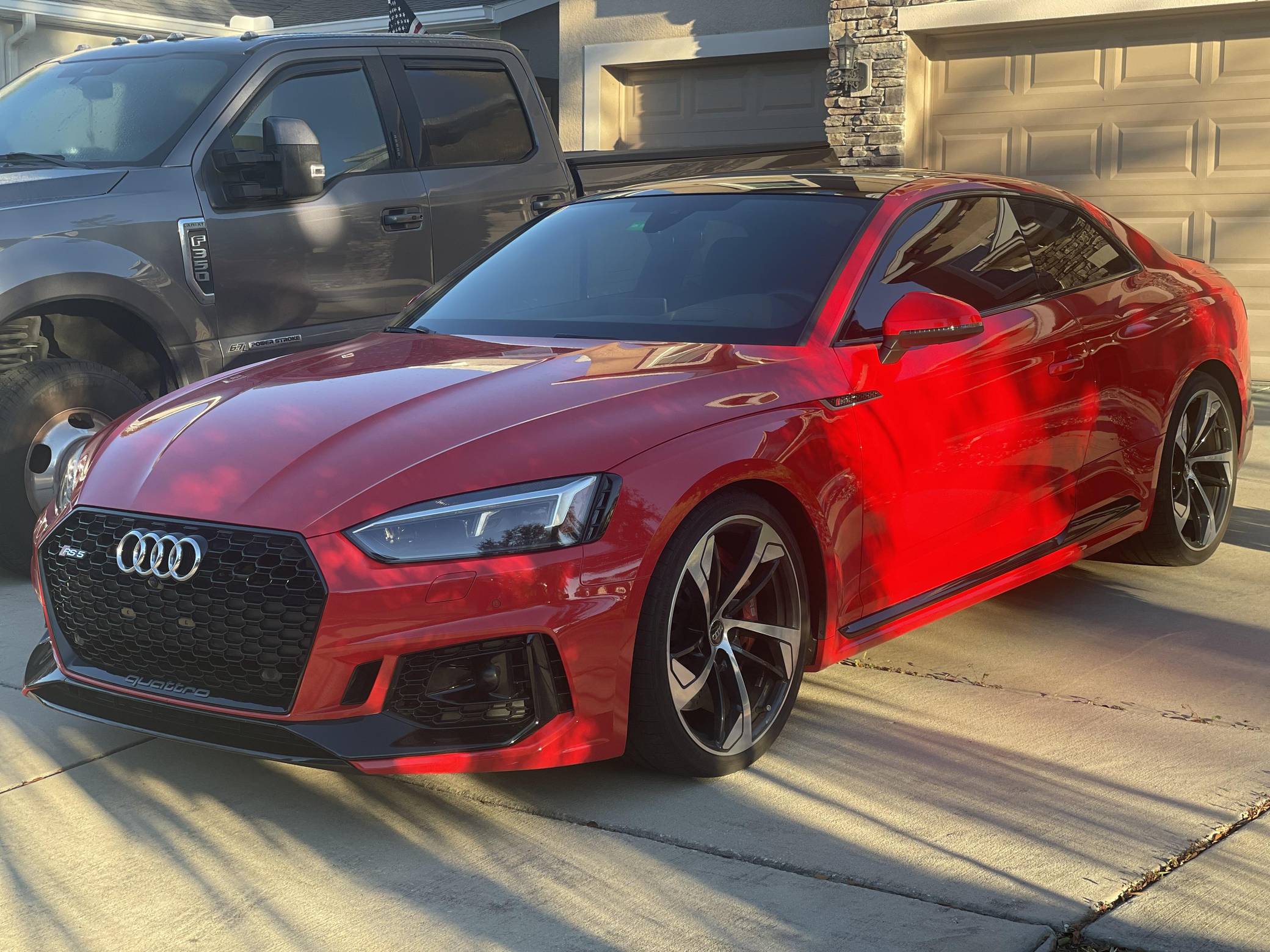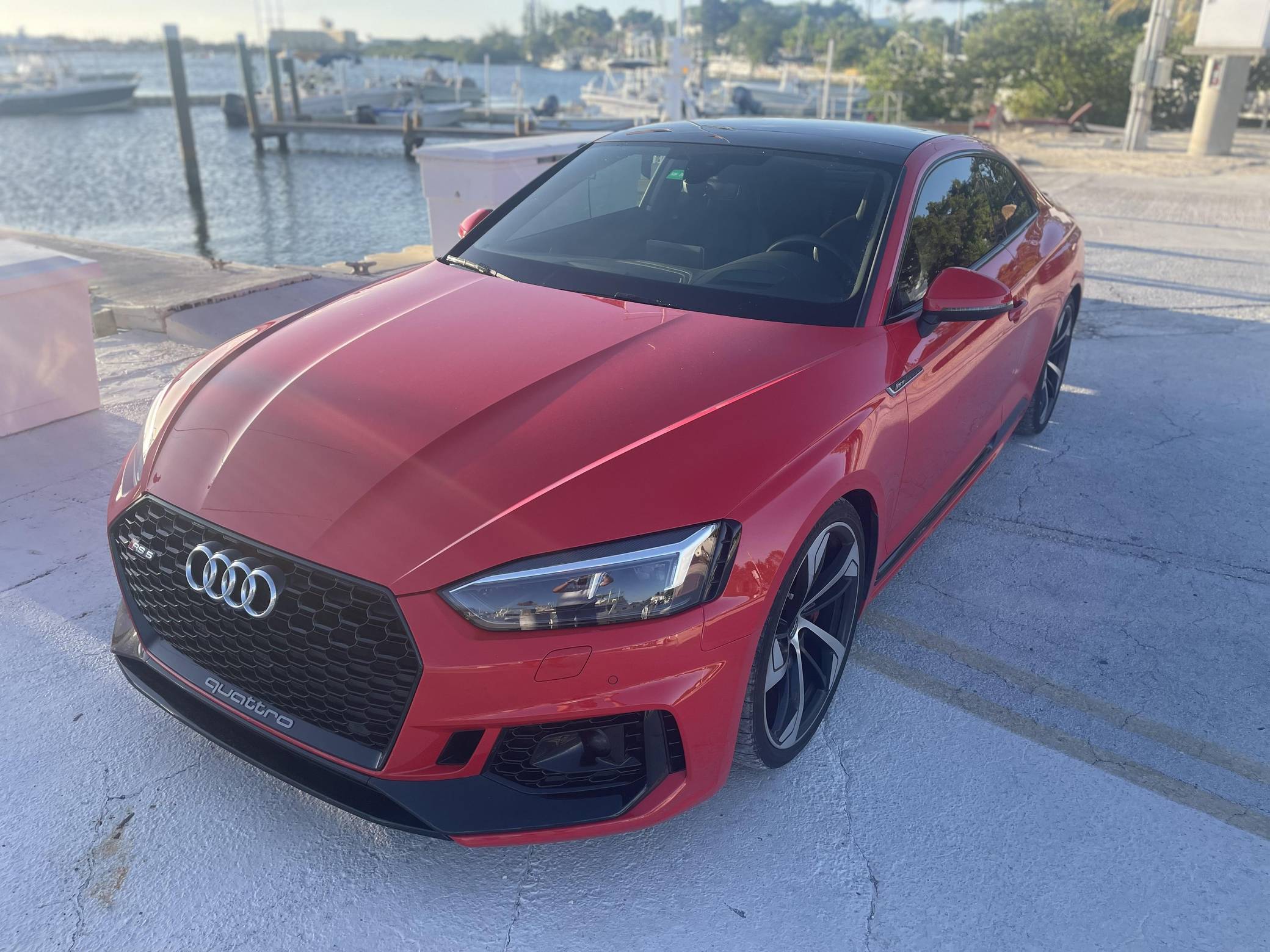 THIS… is a 2018 Audi RS5 Coupe, finished in Misano Red Pearl Effect with a black interior. The odometer on this RS5 currently displays approximately 23,000 miles. Modifications are limited to tinted windows. Audi released the second-generation RS5 for 2018 as the ultimate evolution of the A5. Offered as a coupe and as a fastback called Sportback, it swapped its predecessor's V8 for a twin-turbocharged V6 but it gained torque in the trade. Huge brakes and a model-specific suspension system helped drivers make the most of the drivetrain, while a more muscular-looking exterior design allowed the RS5 to easily stand out from the S5. It remains available as Audi of America's answer to the BMW M4. Power comes from a twin-turbocharged 2. 9-liter V6, rated at 444 horsepower and 443 lb-ft of torque. Output is sent to all four wheels via an 8-speed automatic transmission and Audi's Quattro all-wheel drive system.