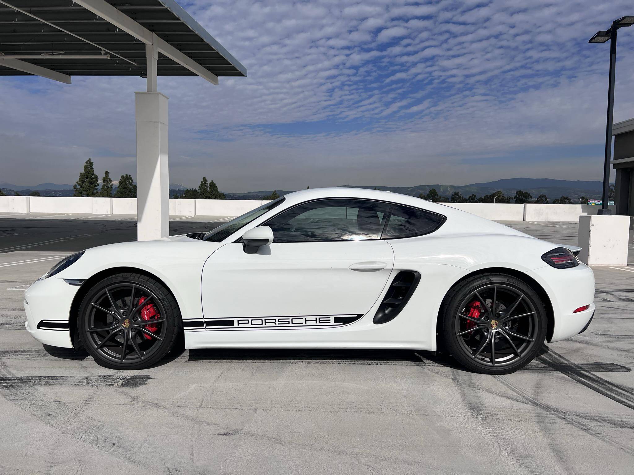 THIS… is a 2018 Porsche 718 Cayman S, finished in white with a black interior. This Cayman features the desirable 6-speed manual transmission, and its odometer currently displays about 8,500 miles. Modifications reported by the seller are limited to tinted windows. The "982" generation 718 Cayman debuted for the 2017 model year as an evolution on the Cayman nameplate, with the "718" designation paying homage to Porsche's 718 race cars from the 1950s. The model's powerplant was updated with a turbocharged 4-cylinder engine, and the result was a more powerful and more efficient car than its predecessor. Power comes from a 2. 5-liter turbocharged flat-4, rated at 350 horsepower and 309 lb-ft of torque. Output is sent to the rear wheels via a 6-speed manual transmission.
