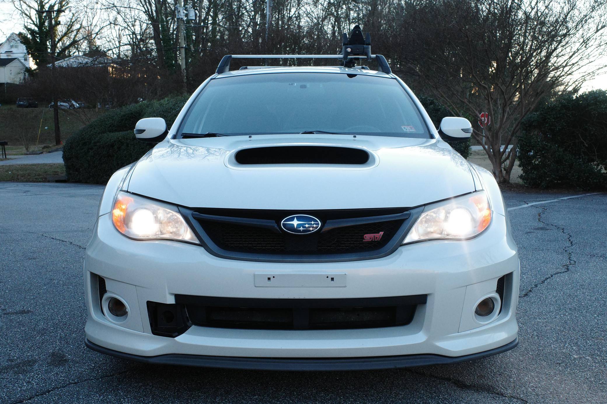 THIS. . . is a 2014 Subaru Impreza WRX STI, finished in Satin White Pearl with a black interior. Factory equipment includes the Option Package 10, 18-inch wheels, a sport-tuned suspension system, limited-slip front and rear differentials, a driver-controlled center differential, HID headlights, Alcantara and leather upholstery, and heated "Performance Design" front seats. Modifications reported by the seller include a "Stage 1" tune, a COBB Tuning Accessport V3 tuner, an Invidia Q300 exhaust system, and tinted windows, The roof rails, Yakima FrontLoader bicycle rack, and VIOFO A119 hardwired dashcam shown in the gallery are included in the sale. Subaru released the rally-bred WRX STI variant of the third-generation Impreza for the 2008 model year. Initially offered only as a hatchback, the model offered enthusiasts a more powerful engine than its predecessor and it stood out from both the Impreza and the standard WRX with a muscular-looking body kit that included flared wheel arches. 2011 brought a mid-cycle update and production ended in 2014. Subaru hasn't released another STI hatch since. Power comes from a 2. 5-liter turbocharged flat-4 engine, rated at 305 horsepower and 290 lb-ft of torque when left stock. The modifications could increase those figures, but a dyno sheet is not available. The engine spins the four wheels via a 6-speed manual transmission.