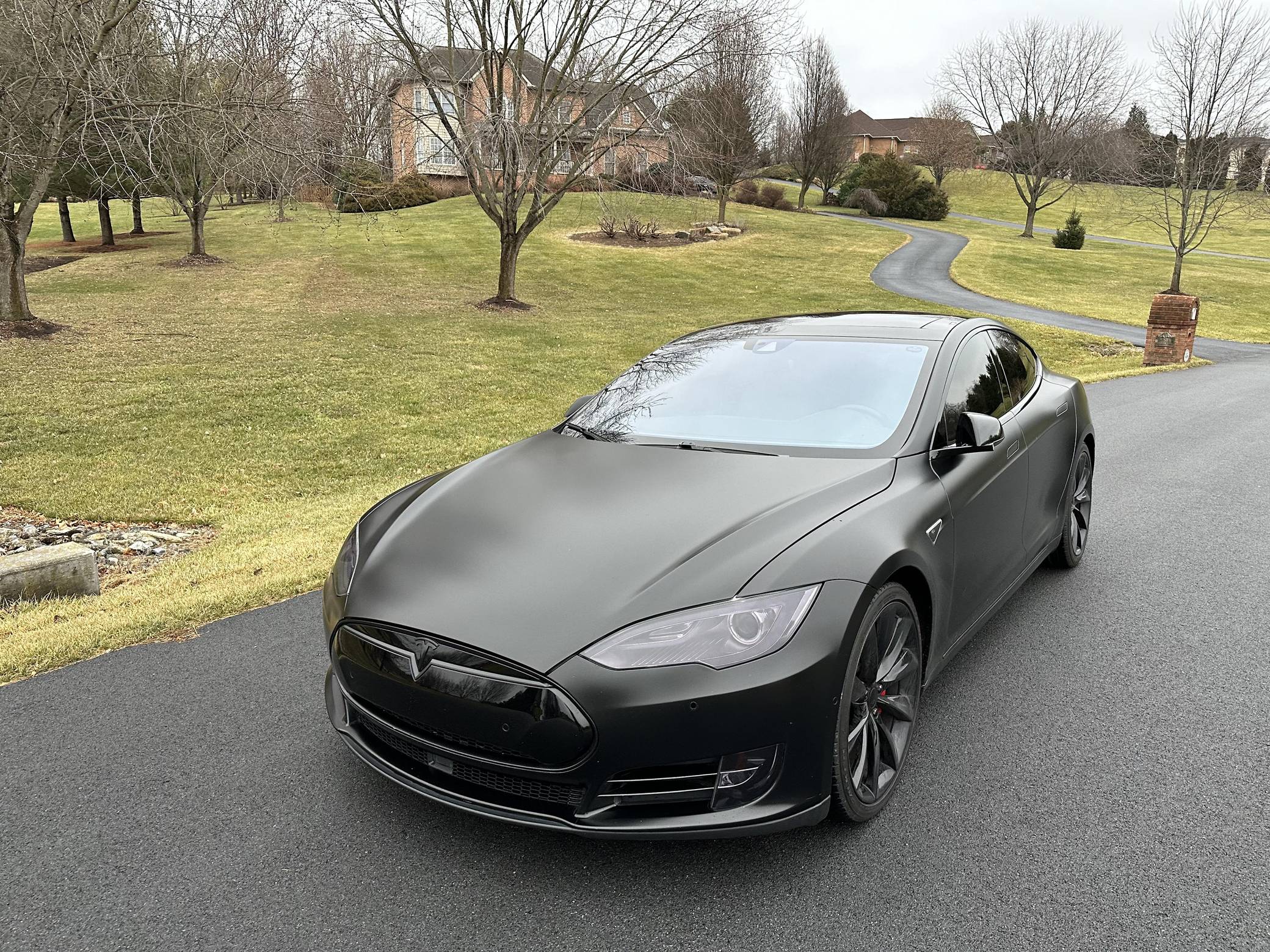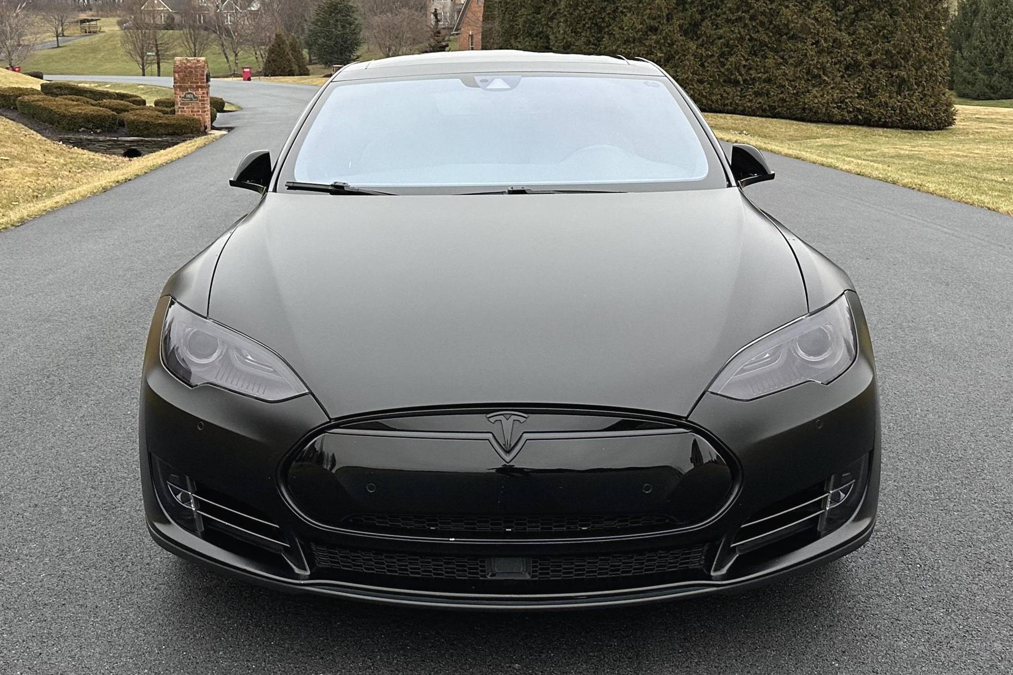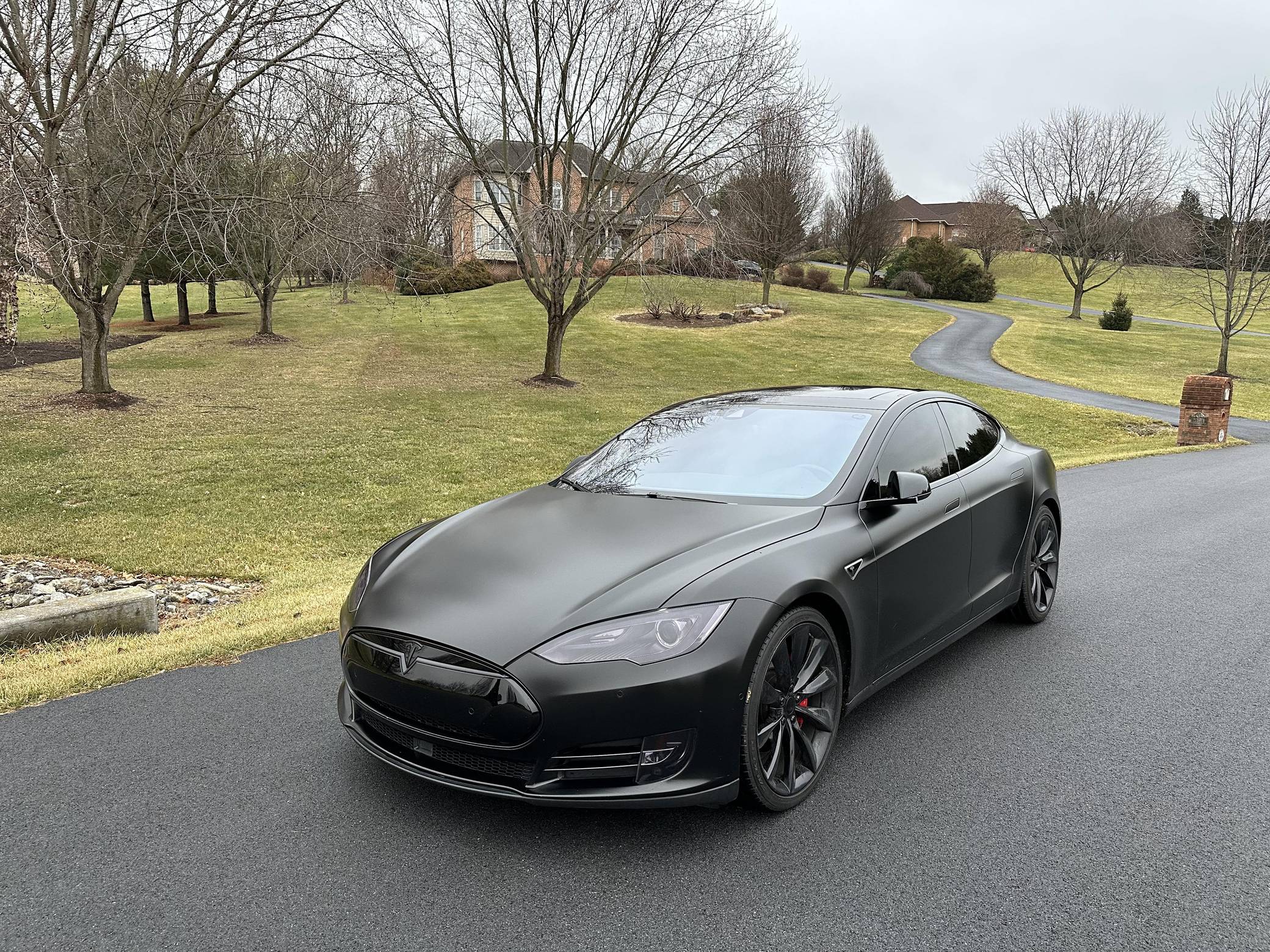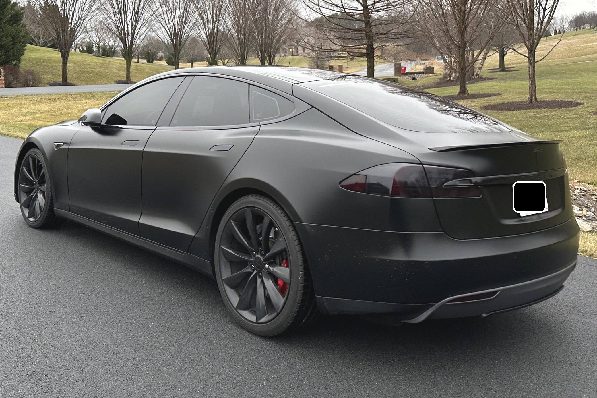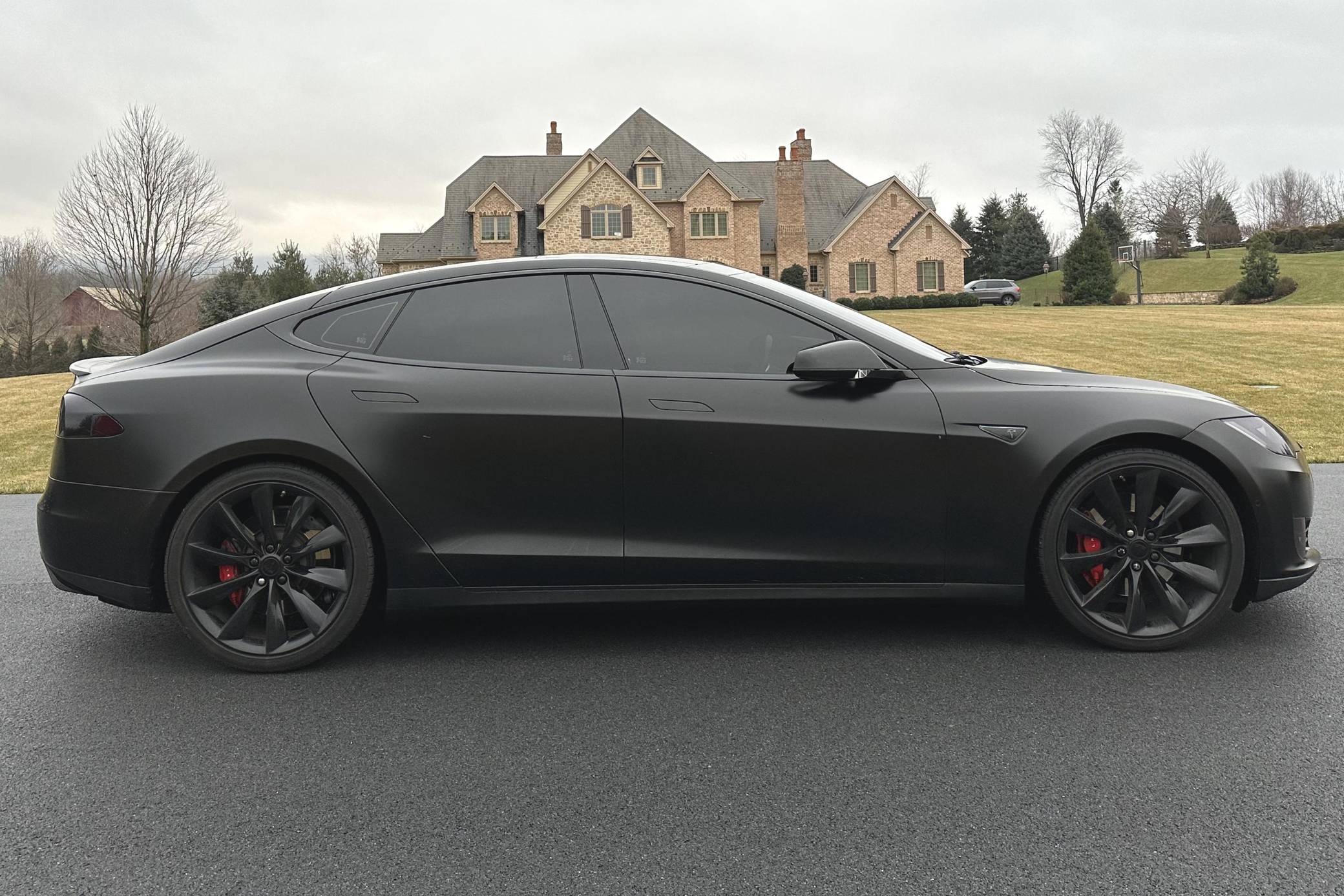 THIS… is a 2015 Tesla Model S P90D, finished in black with a matte black wrap and a gray interior. A partial list of notable equipment includes Ludicrous Speed (Ludicrous Plus mode included), an Autopilot computer with included Highway Autopilot software, 21-inch Turbine wheels, a power sunroof, extended leather upholstery, rear jump seats, and more as detailed below. Modifications reported by the seller include a matte black exterior wrap, black-painted factory wheels, black exterior trim, blacked-out exterior lighting, and tinted windows. Tesla introduced the Model S, the first car it developed in-house, in 2012. Still available today, it was one of the first cars that proved EVs could be more than overgrown golf carts. The Model S has gone through numerous powertrain and software evolutions during its life cycle, many of which have made their way to older models by way of over-the-air updates. When the P90D trim launched for the Model S in 2015, it proved to be a true game-changer for sport sedan performance. Thanks to a dual-motor all-wheel-drive system and Tesla's new "Ludicrous Speed" mode upgrade option, contemporary road tests clocked the P90D's 0-60 time at consistently under 3 seconds, cementing the notion that EVs were now the cars to beat in terms of face-melting off-the-line acceleration. Power comes from a pair of electric motors (one per axle), which draw electricity from a 90-kilowatt-hour lithium-ion battery pack to zap the four wheels with 762 horsepower and 713 lb-ft of torque, according to third-party estimates. It has an EPA-estimated range of 270 miles.