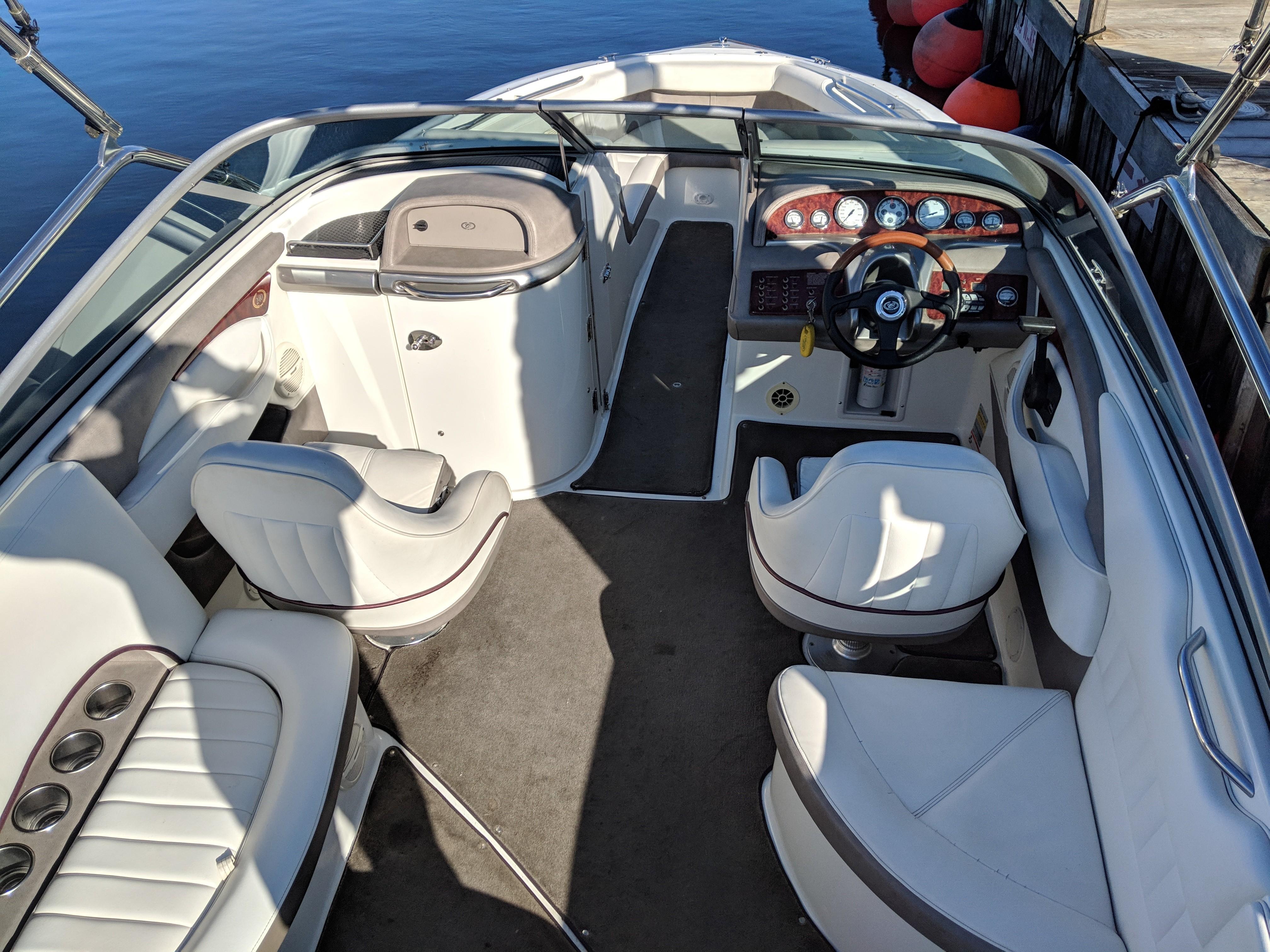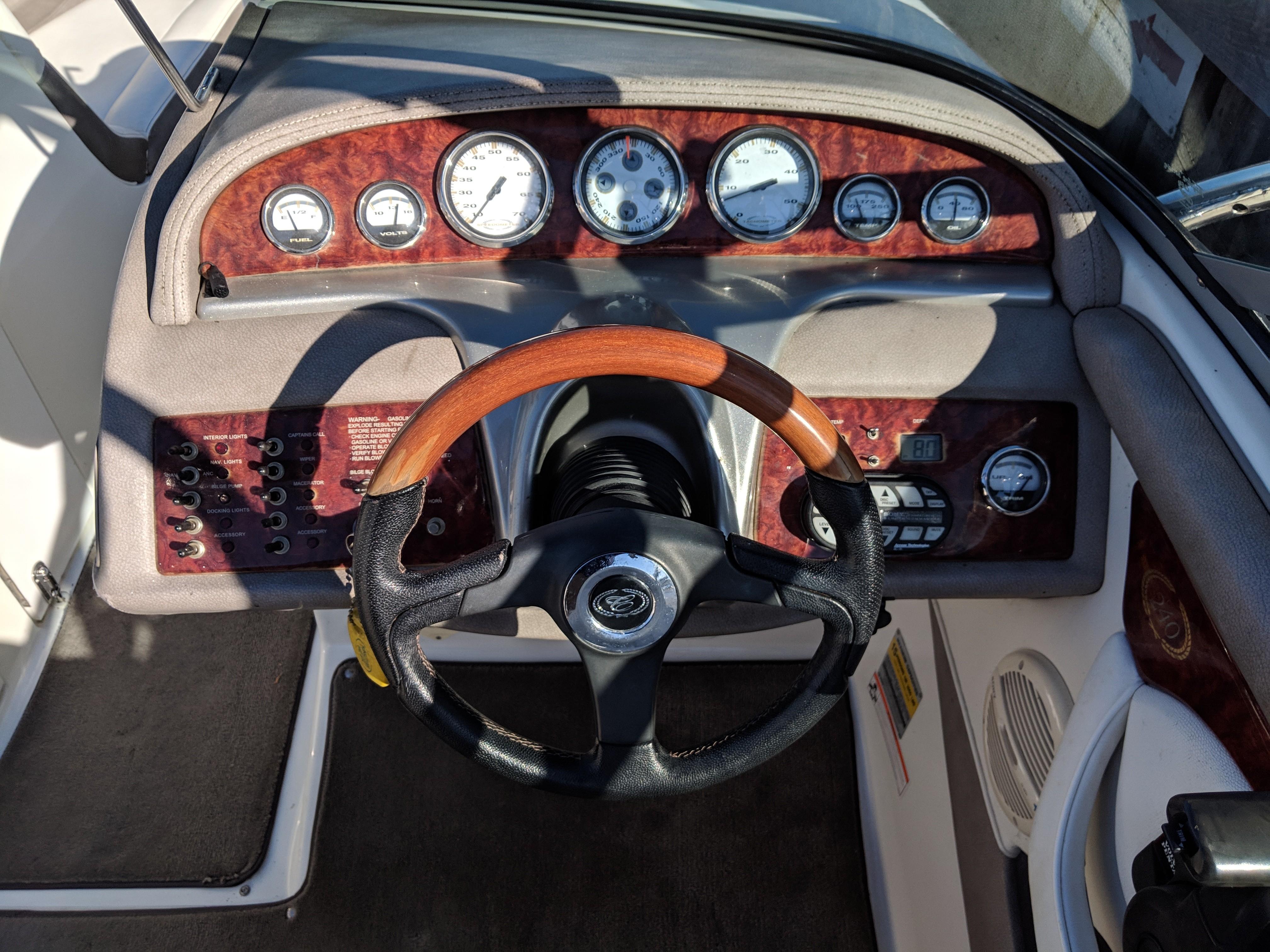 2004 Cobalt 240. Options Include Dual Stainless Steel Props, Dual Battery Switch, AM/FM Stereo, Extended Swim Platform w/Ladder, Stainless Steel Sports Tower w/Bimini, Bow/Cockpit Tonneau Covers, Stainless Steel Docking Lights, Transom Shower, Automatic Fire Extinguisher, and More!