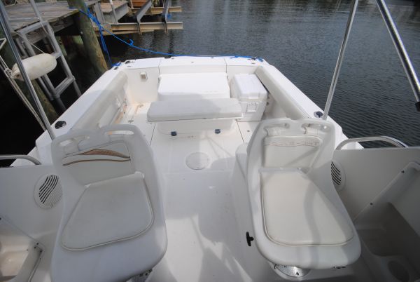 2000 Aquasport 215 Explorer! Forever exciting and quality, this Aquasport 215 is built for fun, fishing, family time, and more. This 215 Walkaround Cuddy offers all you need for fishing and is equipped with Livewell, rod holders and storage, ample cockpit space, and cabin room for a comfortable and fishable boat that's safe for your day's excursion! Spacious cockpit and cabin. Captain seats, bench, and individual seating. Live well, storage boxes, gunnel rod storage, and rod holders. ICOM VHF, Depthfinder, Compass, Stereo with cockpit speakers. Bimini top. V-berth sleeps 2 adults, convertible to tabletop for seating. Potta-Potti head.