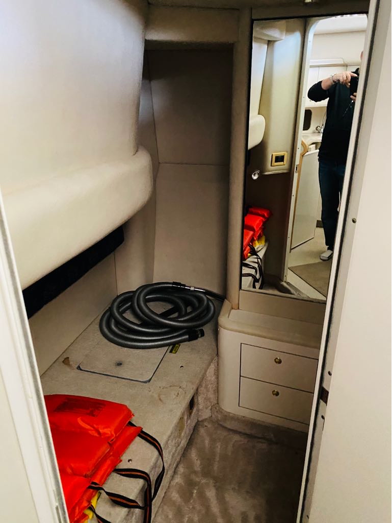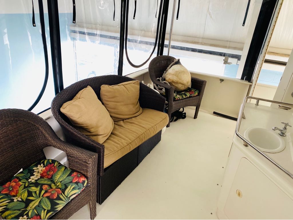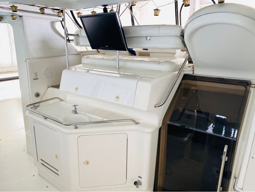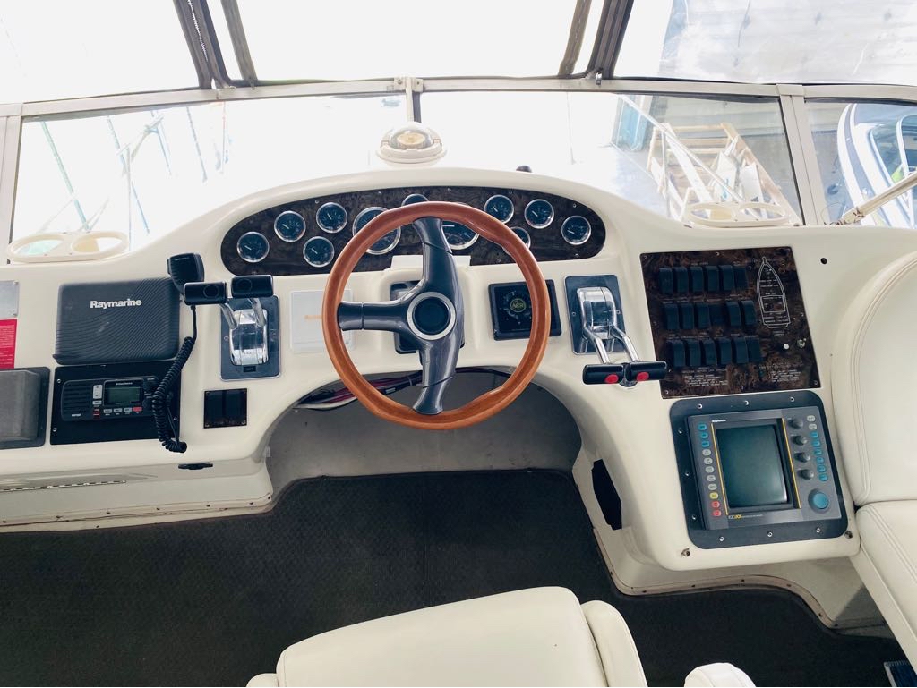 BILGE LIGHTS, DUAL BATTERY W/SWITCH, REMOTE OIL FILTER, CONVERTER, GENERATOR, HOUR-METER-ENGINE, AUTO FIRE EXT. SYSTEM, CANVAS PACKAGE, CAMPER CANVAS, BIMINI TOP, HOUR METER DASH, TILT STEERING, VHF RADIO, DEPTH FINDER, RADAR, GPS, AUTO PILOT, COMPASS, TRANSOM SHOWER, SWIM PLATFORM, COCKPIT ICE MAKER, WATER SYSTEM, HOT WATER, AL/ELEC STOVE, MICROWAVE, REFRIGERATOR, DUAL VOLT FRIDGE, ICE MAKER, COFFEE MAKER, AC/HEAT, WAL-VAC, CARPET RUNNERS, SHOWER, VACU FLUSH HEAD, MACERATOR, TV, TV MASTER STEROOM, TV SALON, STEREO W/CD, WINDLASS, SPOTLIGHT, BOTTOM PAINT, TRIM TABS, FLY BRIDGE, RADAR ARCH.
