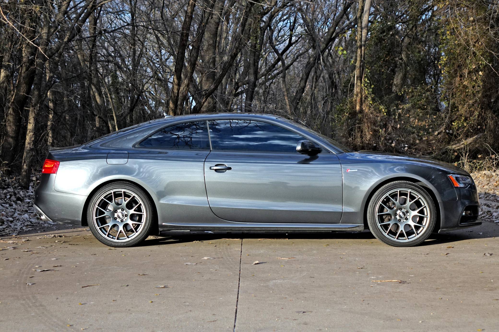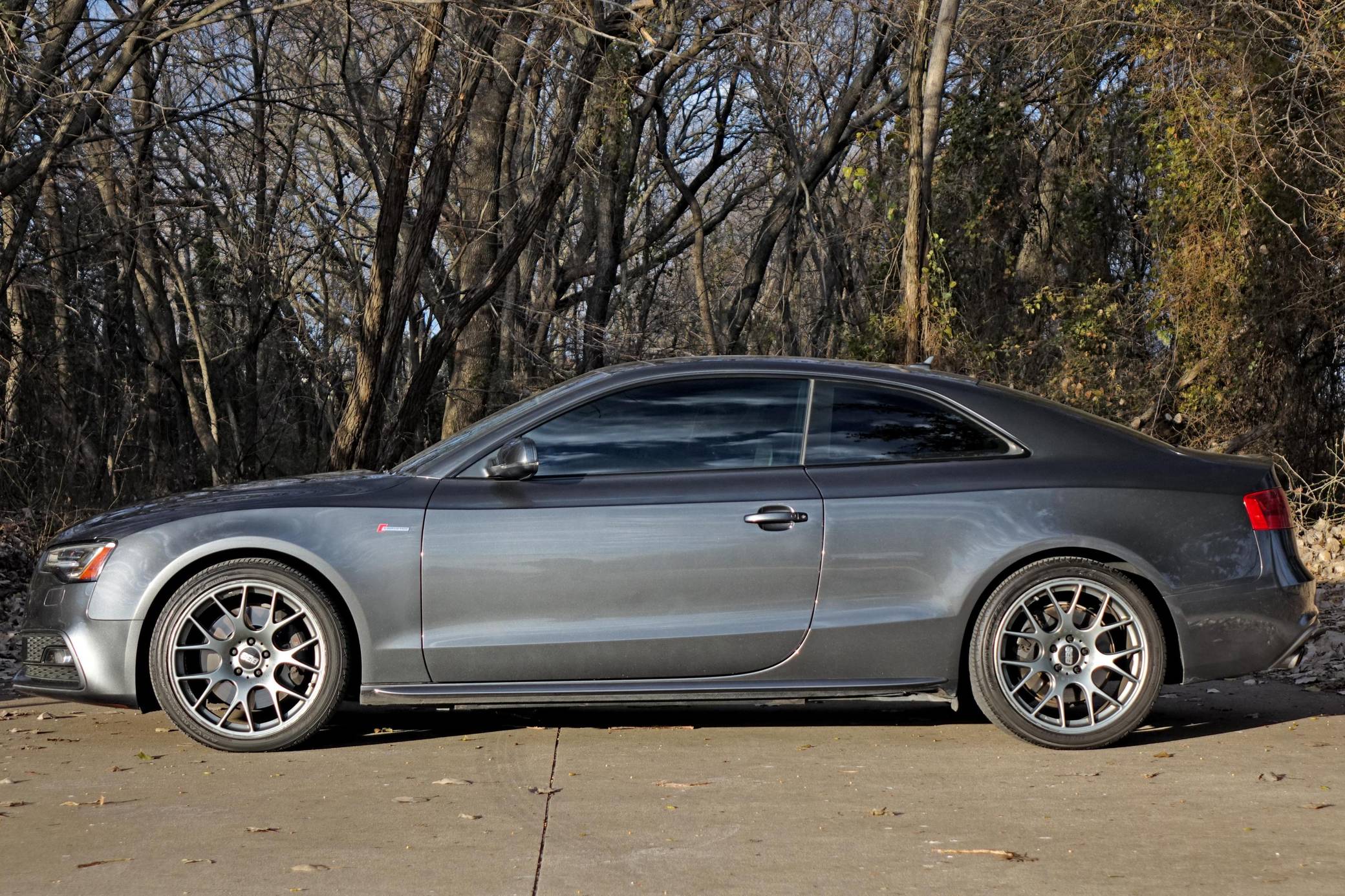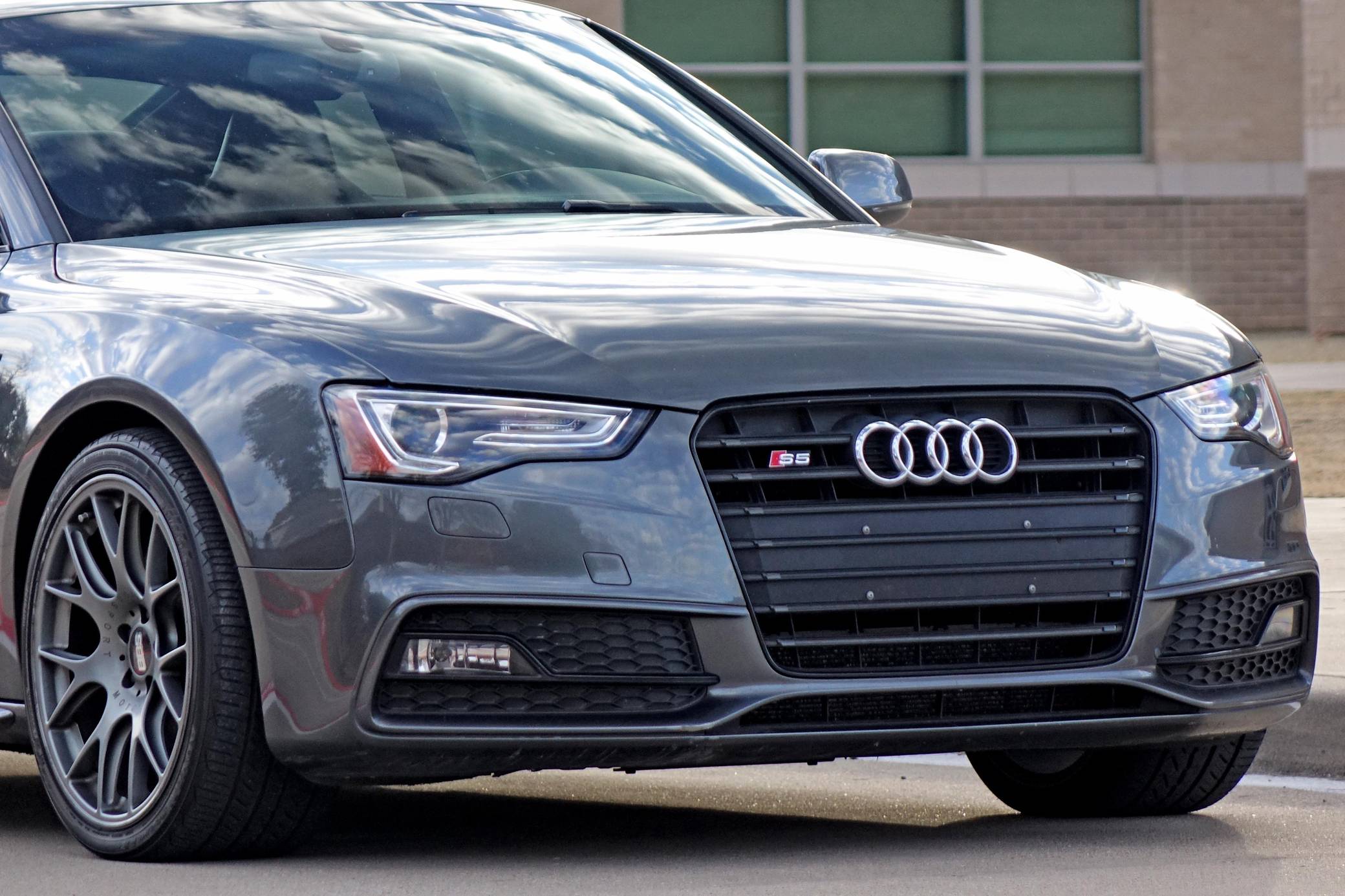 THIS… is a 2015 Audi S5 Coupe, finished in Daytona Gray Pearl Effect with a black interior. According to the build sheet provided in the gallery, factory equipment includes the Technology and Black Optic Packages, a power sunroof, Alcantara and leather upholstery, power-adjustable and heated front sports seats, Carbon Atlas inlays, and 3-zone automatic climate control. The only modifications reported by the seller are 19-inch BBS CH-R wheels, an aftermarket air intake system, and paint protection film applied to the exterior. Introduced in 2007, the "B8" A5 joined the TT and R8 as the third coupe offering from Audi, and the higher-performance S5 variant was released in coupe form at the same time. A mid-cycle refresh for the 2013 model year included a switch to the supercharged V6 that was used in the S5 Cabriolet since 2010, as well as styling revisions and an updated interior. Power comes from a 3. 0-liter supercharged V6, rated at 333 horsepower and 325 lb-ft of torque. Output is sent to all four wheels via a 7-speed automatic transmission and Audi's Quattro permanent all-wheel-drive system.