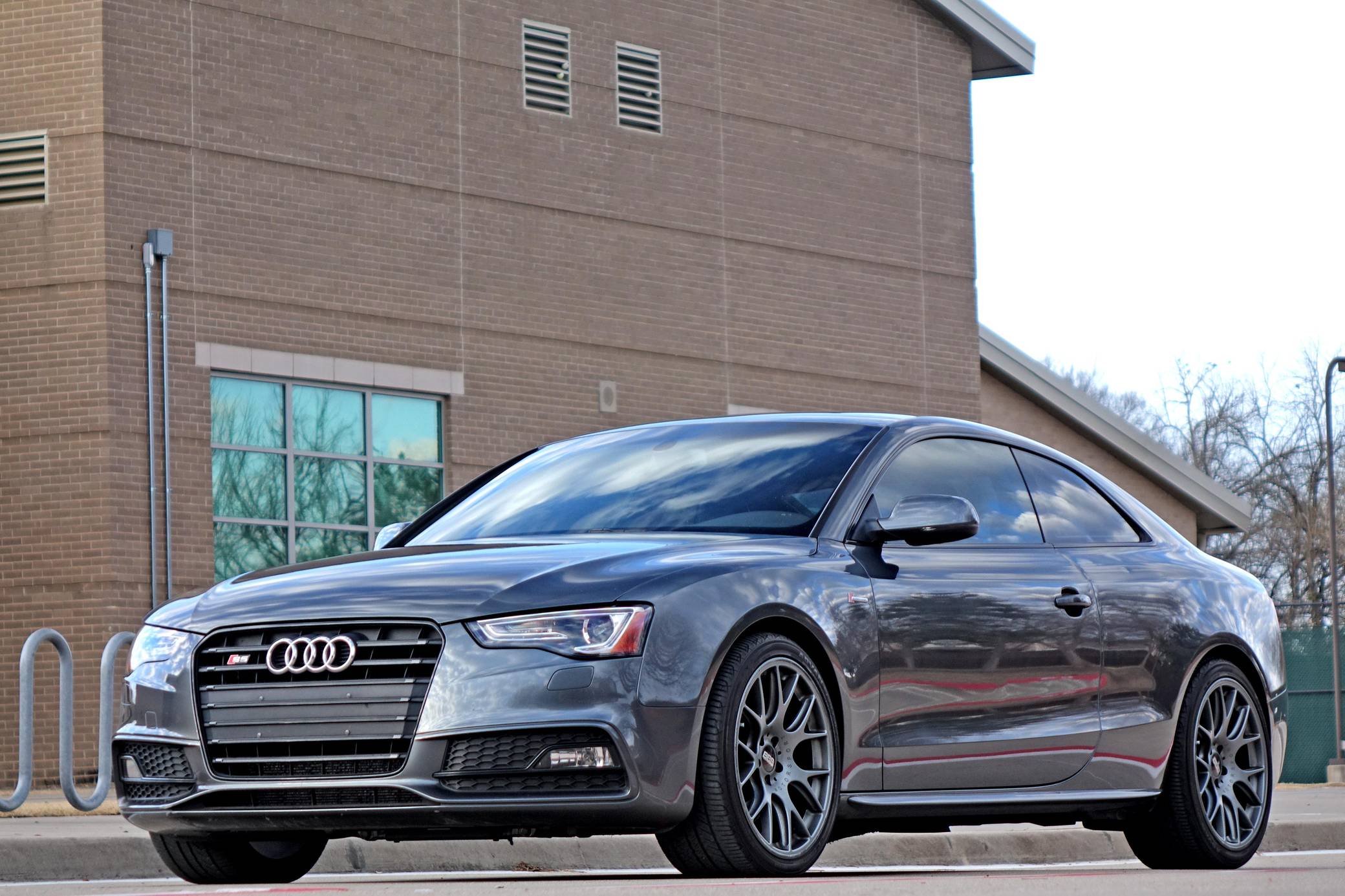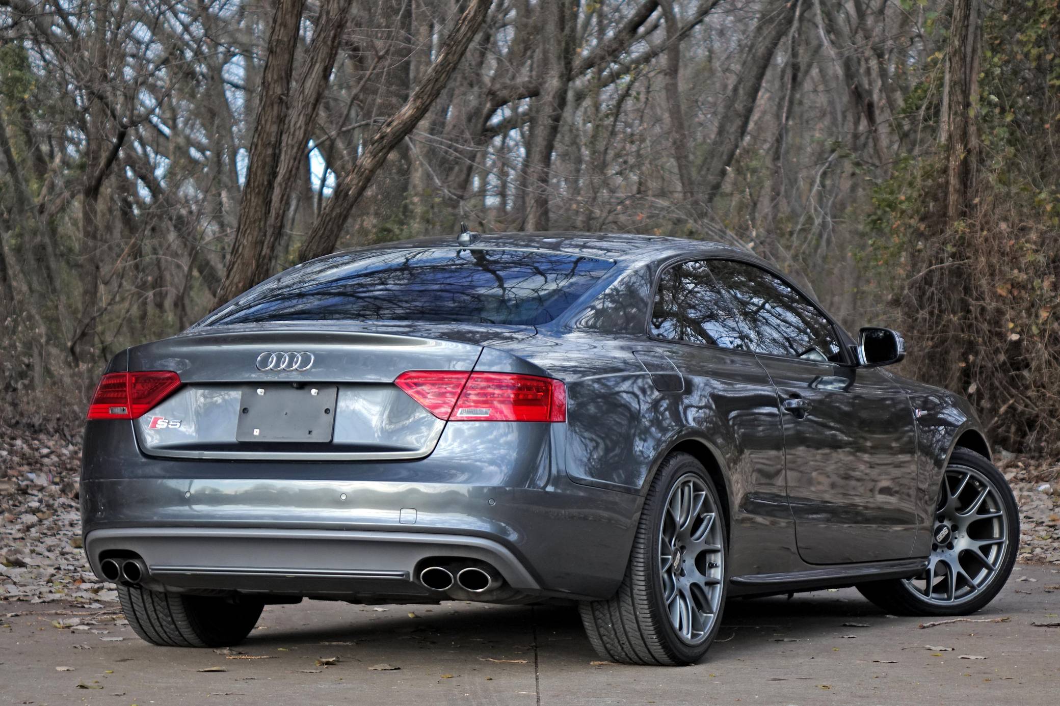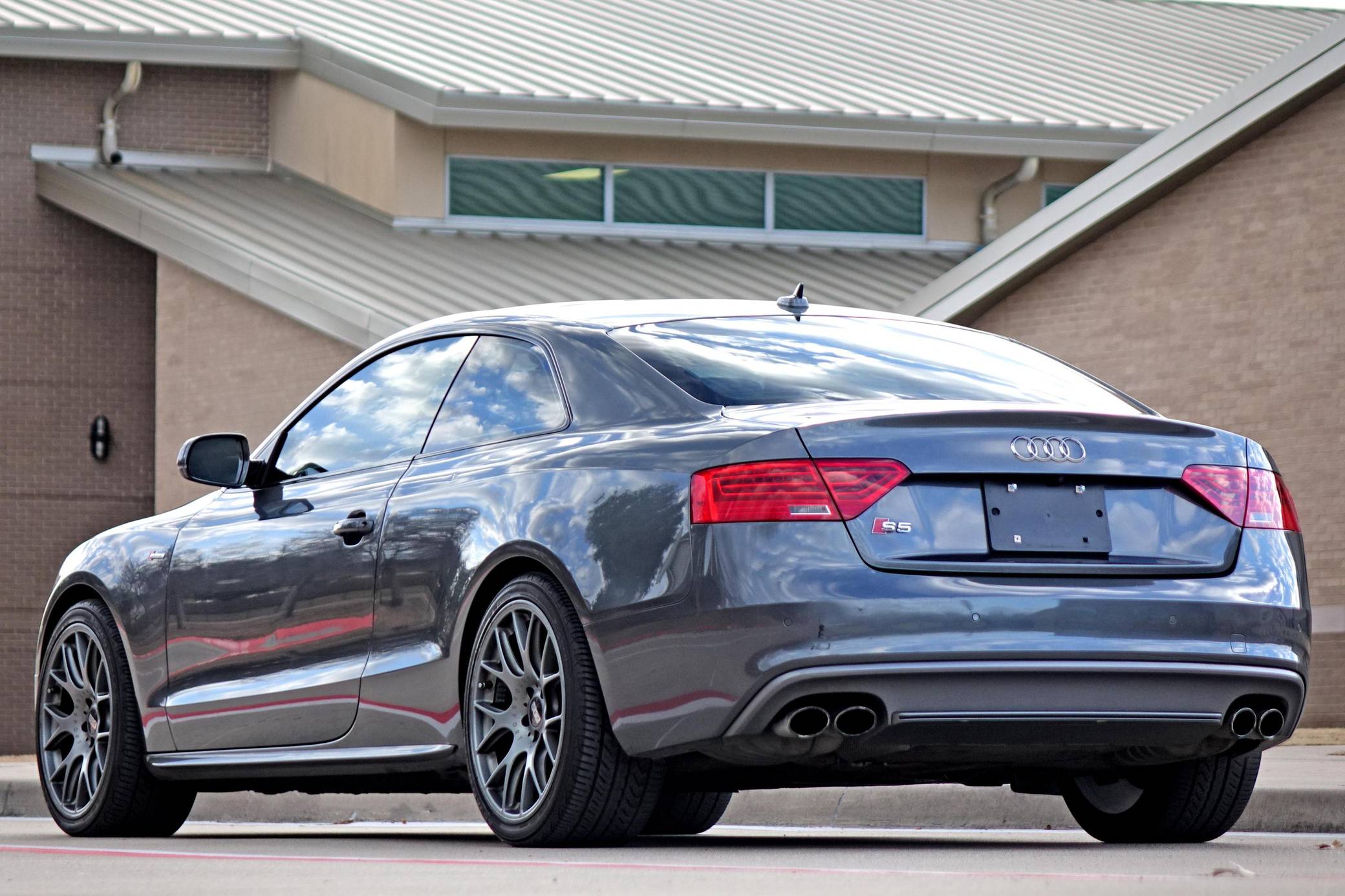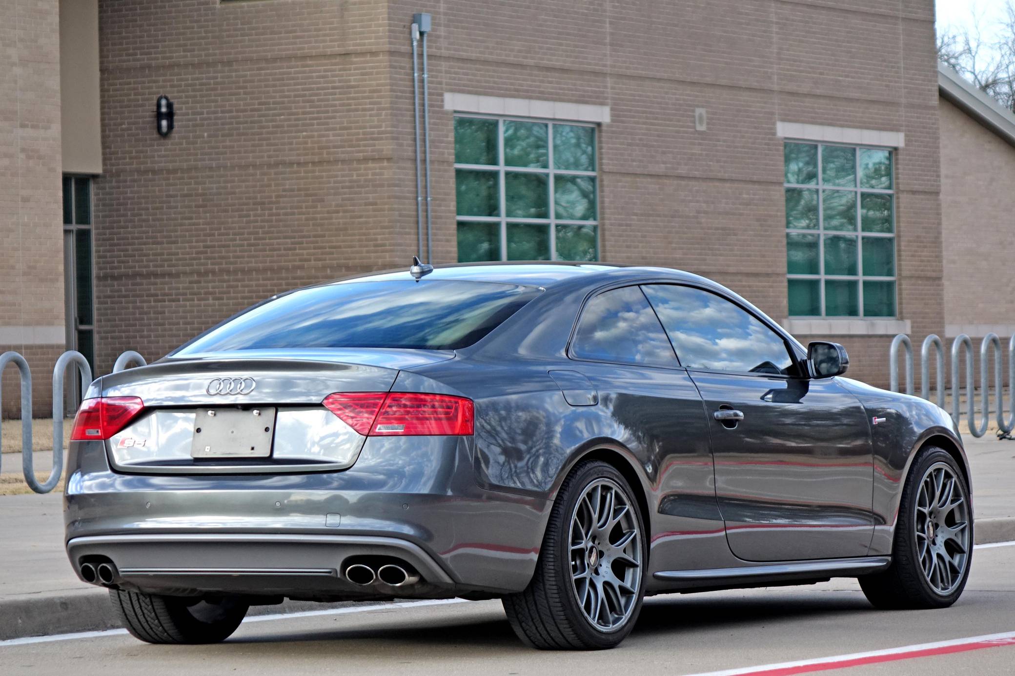 THIS… is a 2015 Audi S5 Coupe, finished in Daytona Gray Pearl Effect with a black interior. According to the build sheet provided in the gallery, factory equipment includes the Technology and Black Optic Packages, a power sunroof, Alcantara and leather upholstery, power-adjustable and heated front sports seats, Carbon Atlas inlays, and 3-zone automatic climate control. The only modifications reported by the seller are 19-inch BBS CH-R wheels, an aftermarket air intake system, and paint protection film applied to the exterior. Introduced in 2007, the "B8" A5 joined the TT and R8 as the third coupe offering from Audi, and the higher-performance S5 variant was released in coupe form at the same time. A mid-cycle refresh for the 2013 model year included a switch to the supercharged V6 that was used in the S5 Cabriolet since 2010, as well as styling revisions and an updated interior. Power comes from a 3. 0-liter supercharged V6, rated at 333 horsepower and 325 lb-ft of torque. Output is sent to all four wheels via a 7-speed automatic transmission and Audi's Quattro permanent all-wheel-drive system.