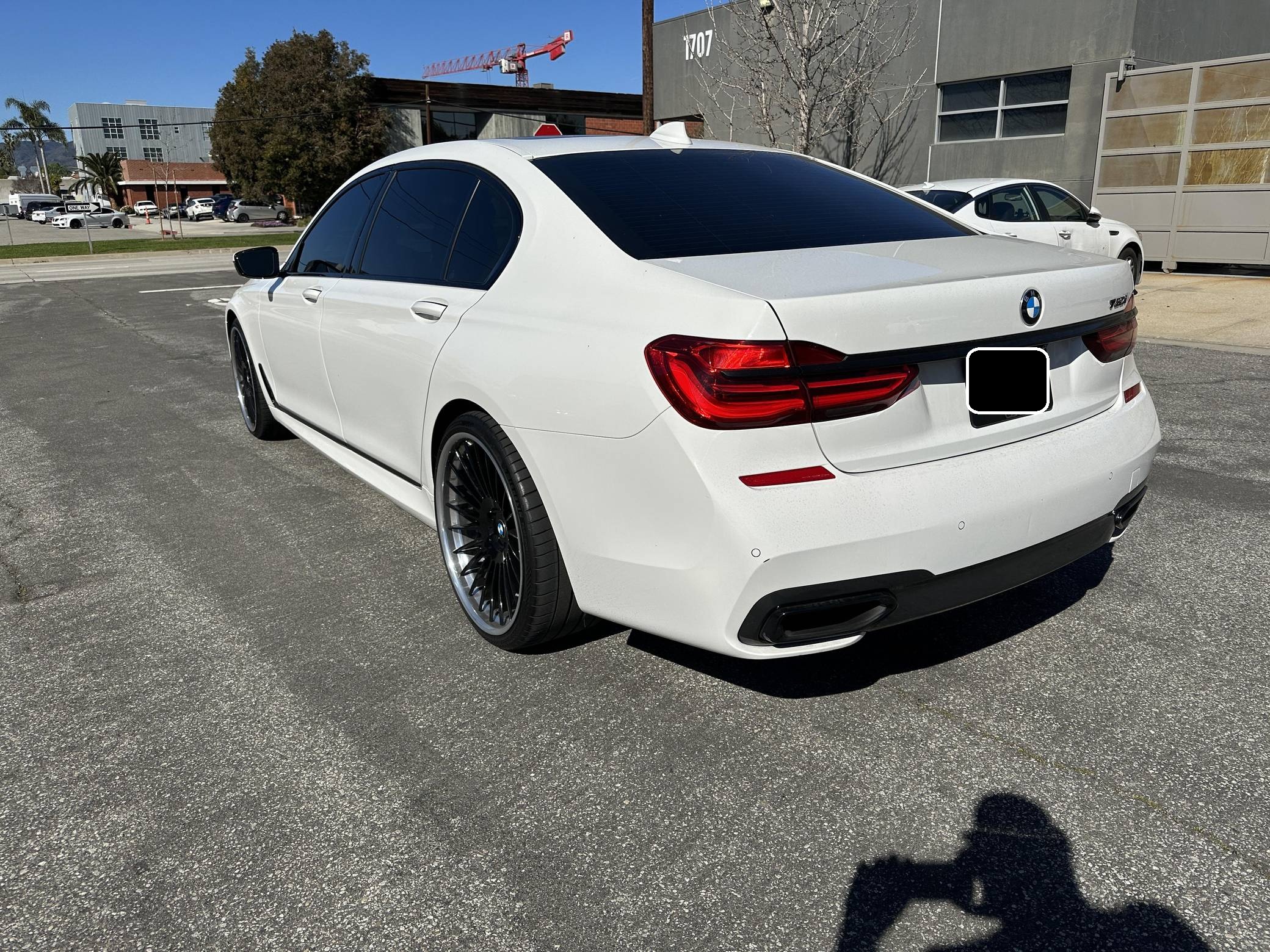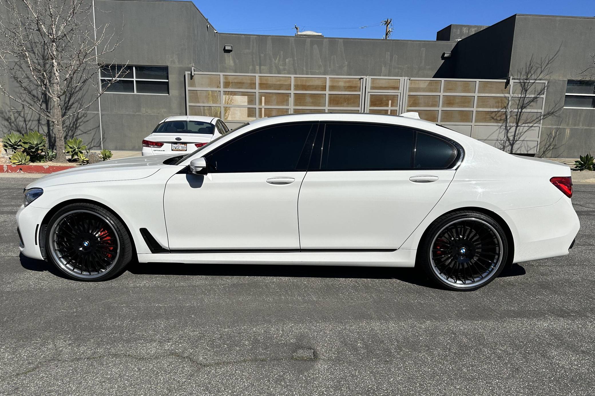 THIS. . . is a 2018 BMW 750i, finished in Alpine White with a Cognac interior. It also confirms that it's been registered in California from new. According to the build sheet provided in the gallery, factory equipment includes the M Sport, Driver Assistance Plus, and Executive packages, adaptive LED headlights, LED fog lights, Nappa leather upholstery, soft-close doors, a wireless device charger, a Bowers & Wilkins surround sound system, and a navigation system, among other features. Modifications reported by the seller include 22-inch RDBLA wheels, aftermarket lowering links, brake calipers painted red, front bumper reflectors tinted, exterior chrome trim wrapped black, window tint, and a rear 750i badge finished in black. BMW released the sixth-generation 7 Series for 2016 with a more chiseled exterior design and a much longer list of technology and luxury features; it was aimed directly at the Mercedes-Benz S-Class, after all. Designed for both drivers and chauffeurs, it weighed less than its predecessor thanks in part to structural elements made with carbon fiber. BMW only sent the long-wheelbase "G12" model to America. Power comes from a 4. 4-liter twin-turbocharged V8, rated at 445 horsepower and 480 lb-ft of torque. Called "N63" internally, it spins the rear wheels via an 8-speed automatic transmission.